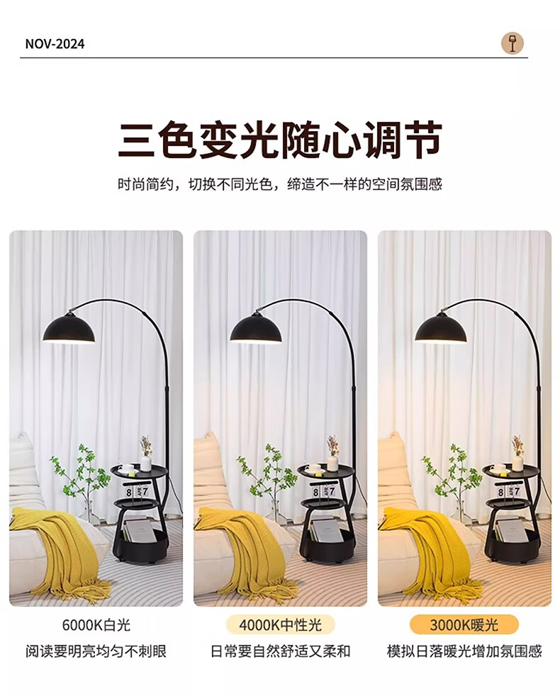Gujia's new fishing lamp floor lamp living room sofa next to the French art modern shelf table lamp integrated regular model - iron tabletop - three-color dimming, domestic brand, official authentic product, ten years warranty