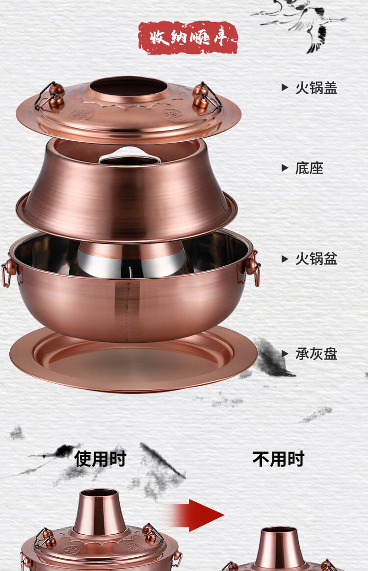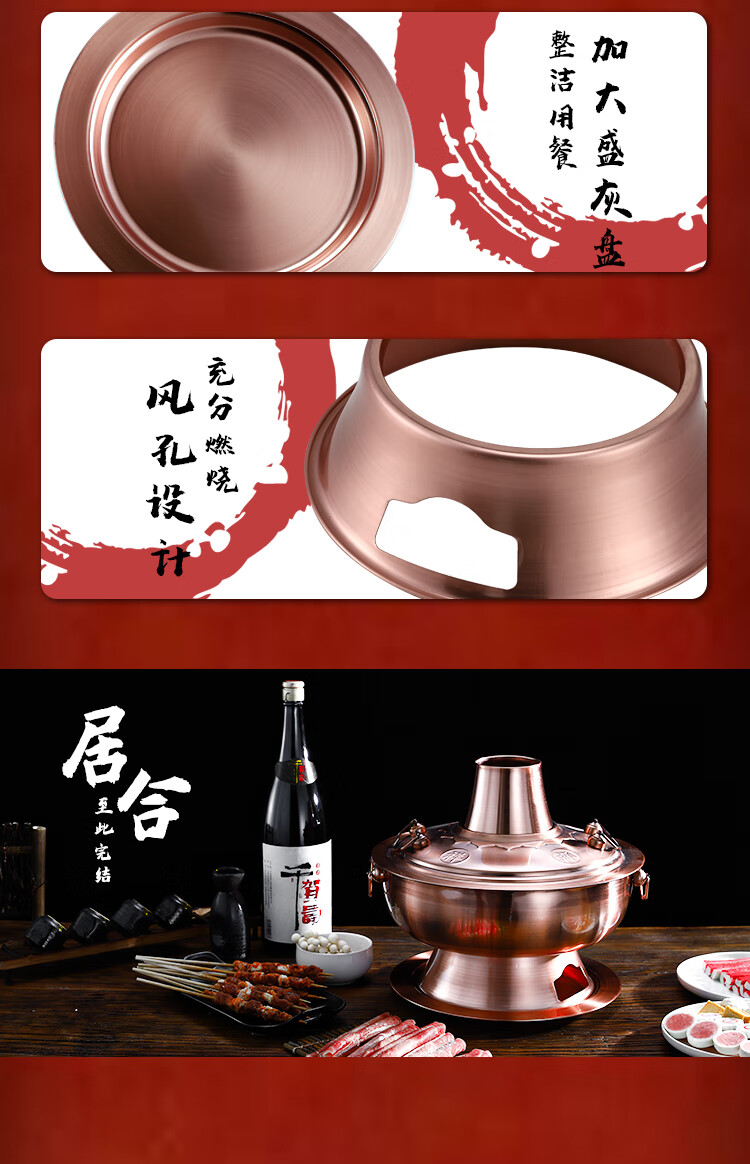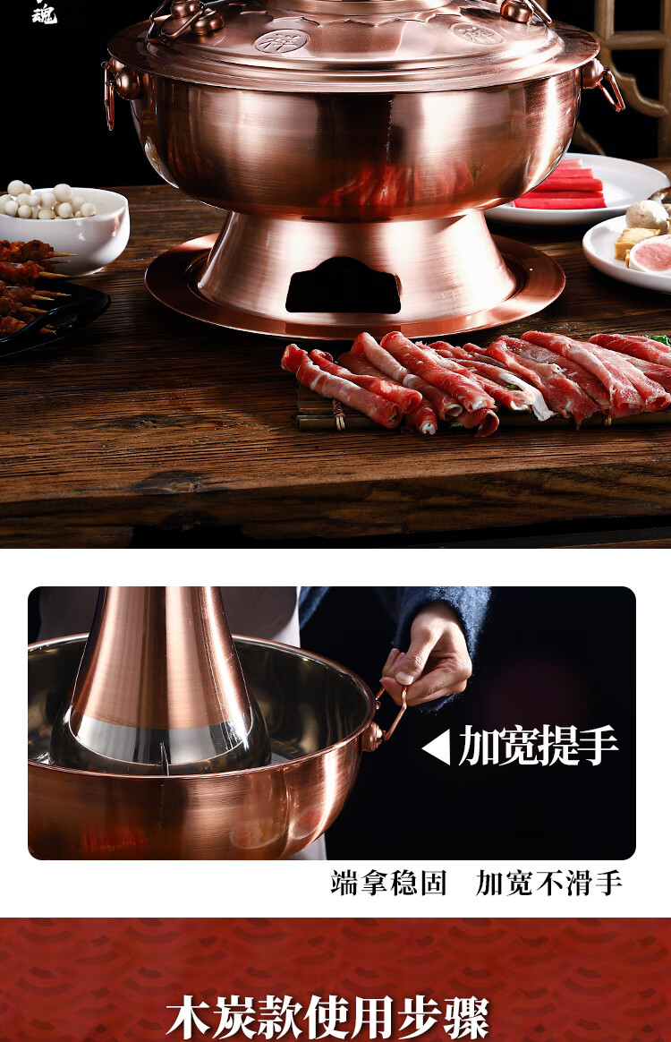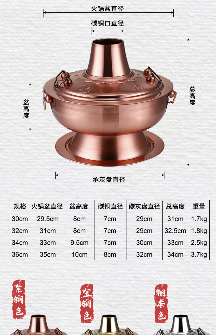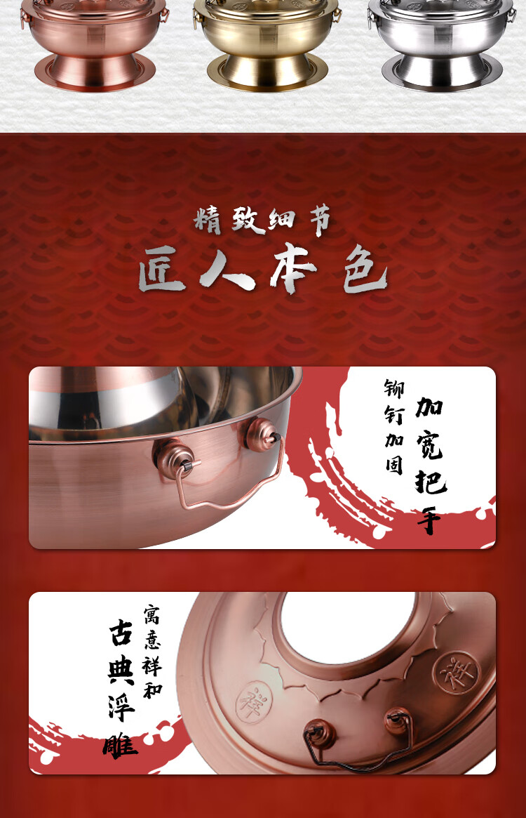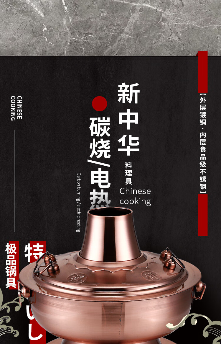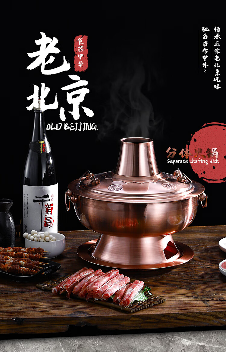 Old Beijing hot pot mandarin duck pot imitation copper household charcoal brushed mutton old-fashioned copper pot thickened stainless steel hot pot copper color 34cm