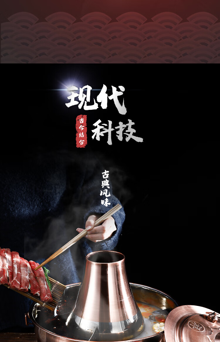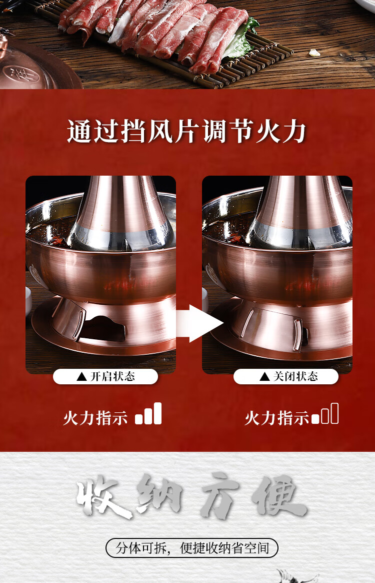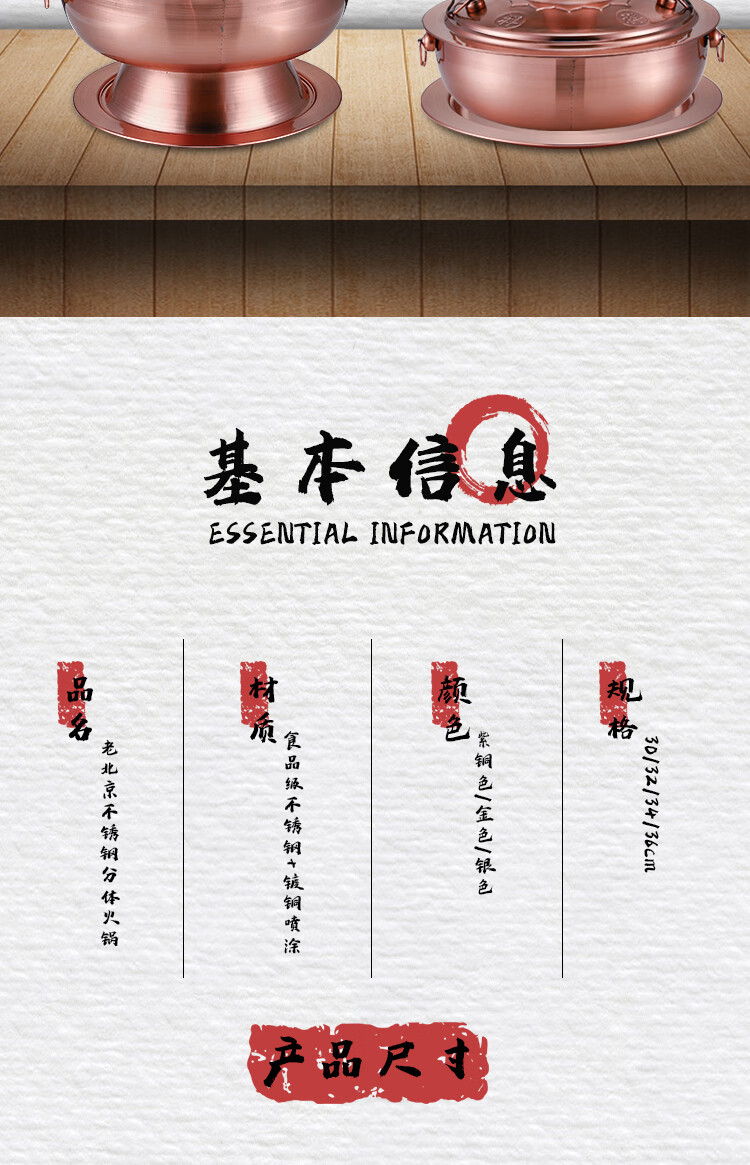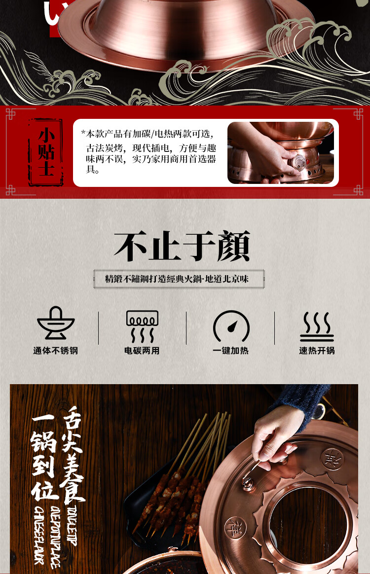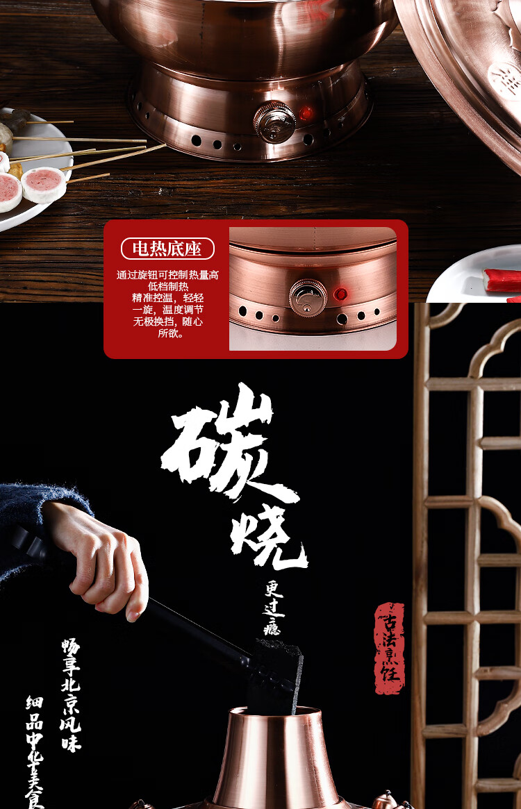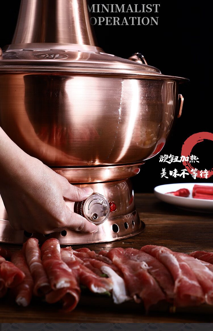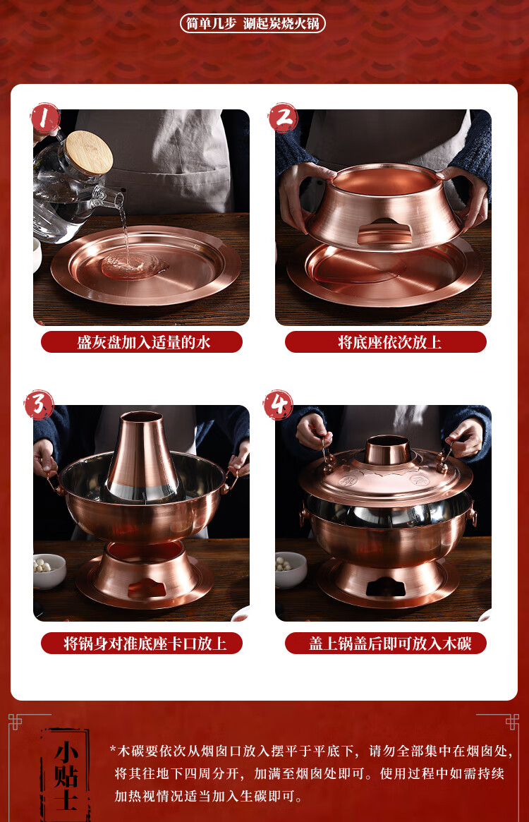Old Beijing hot pot mandarin duck pot imitation copper household charcoal brushed mutton old-fashioned copper pot thickened stainless steel hot pot copper color 34cm