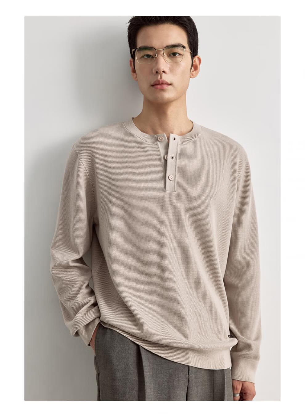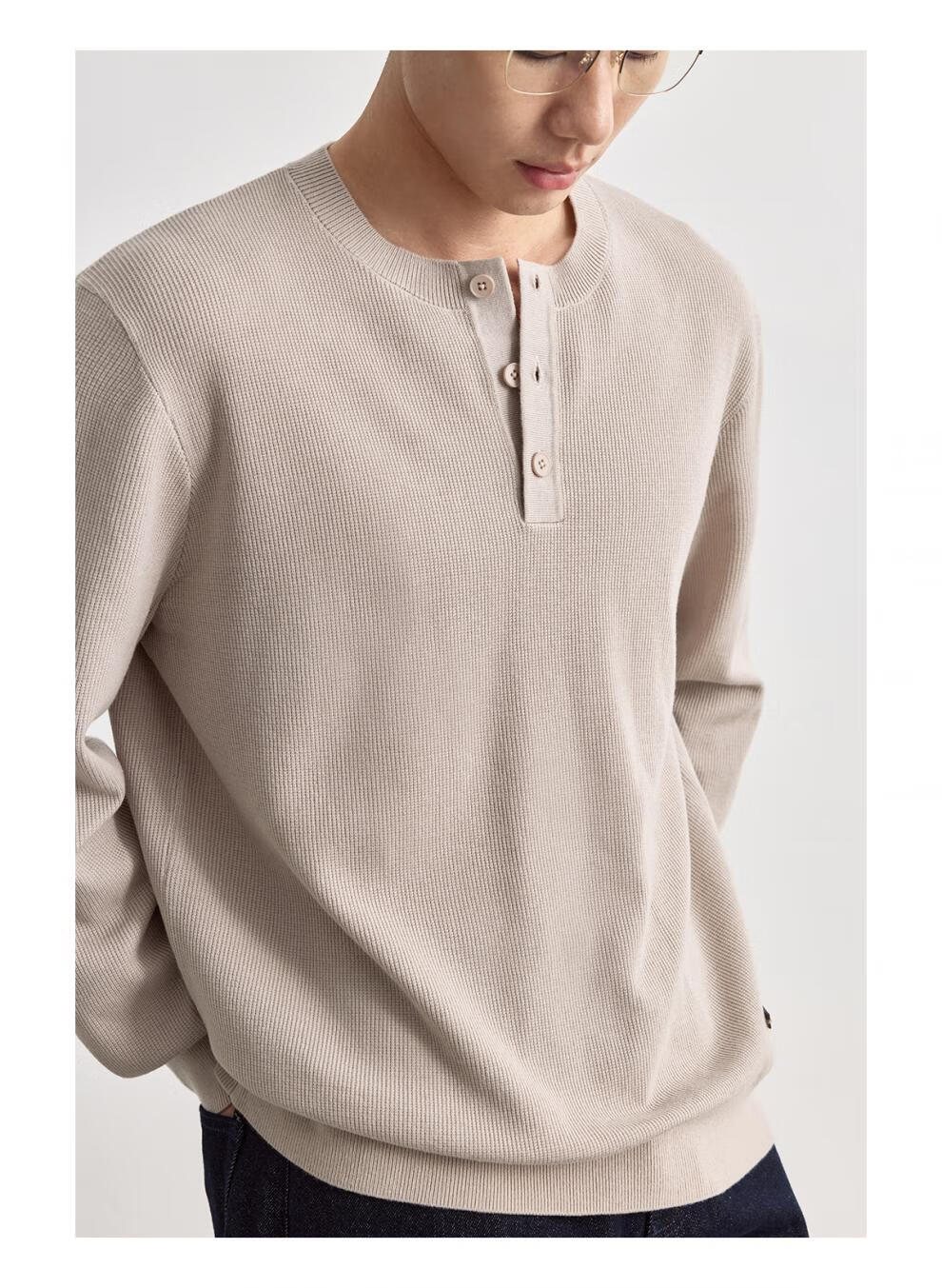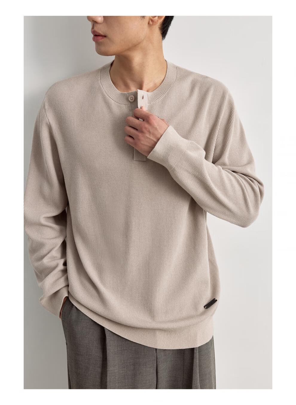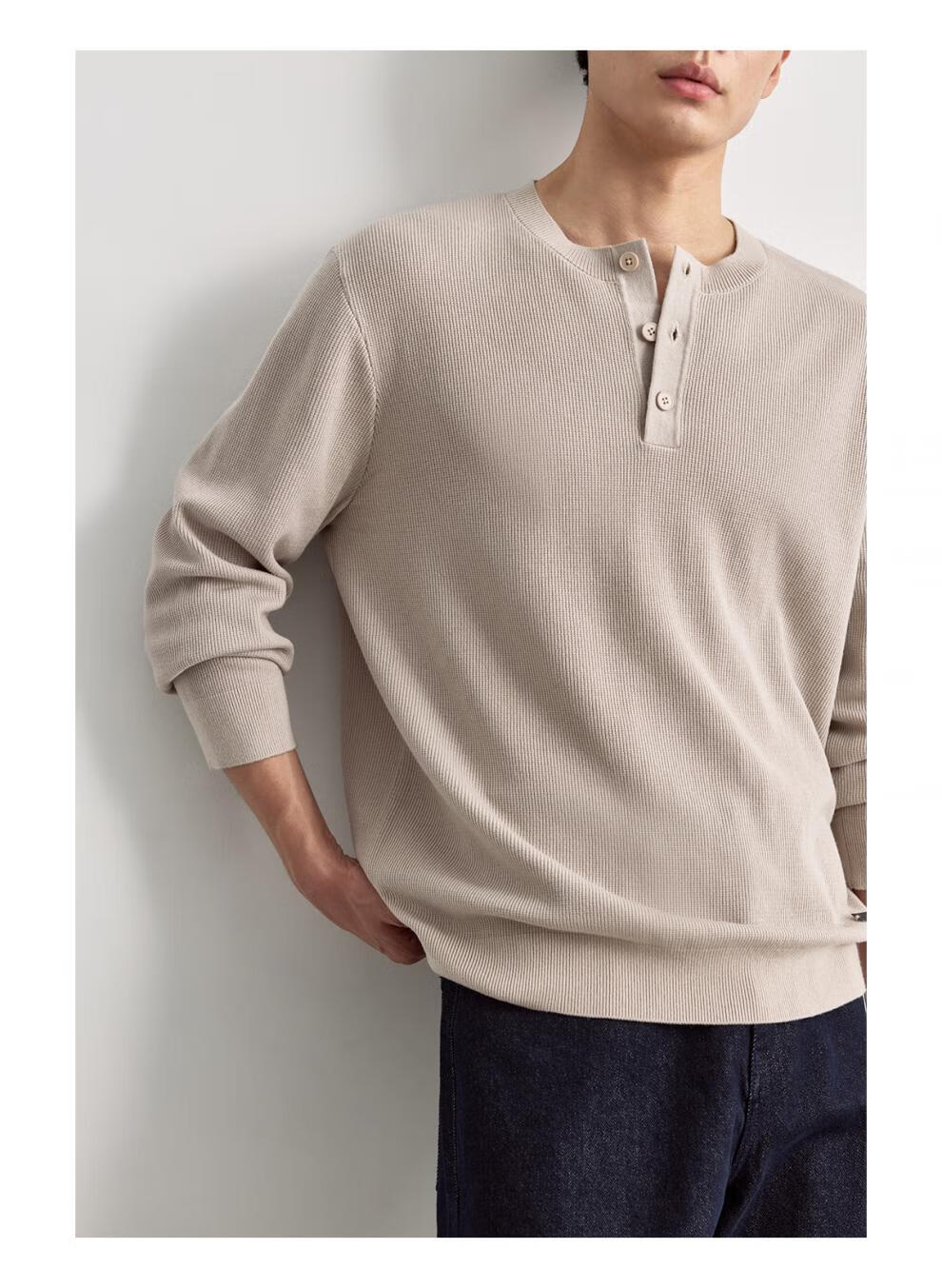 OSENSOSNES wool double-ply yarn waffle knitted half-open henley collar cardigan knitted sweater for men warm apricot color in stock M 170_92A_