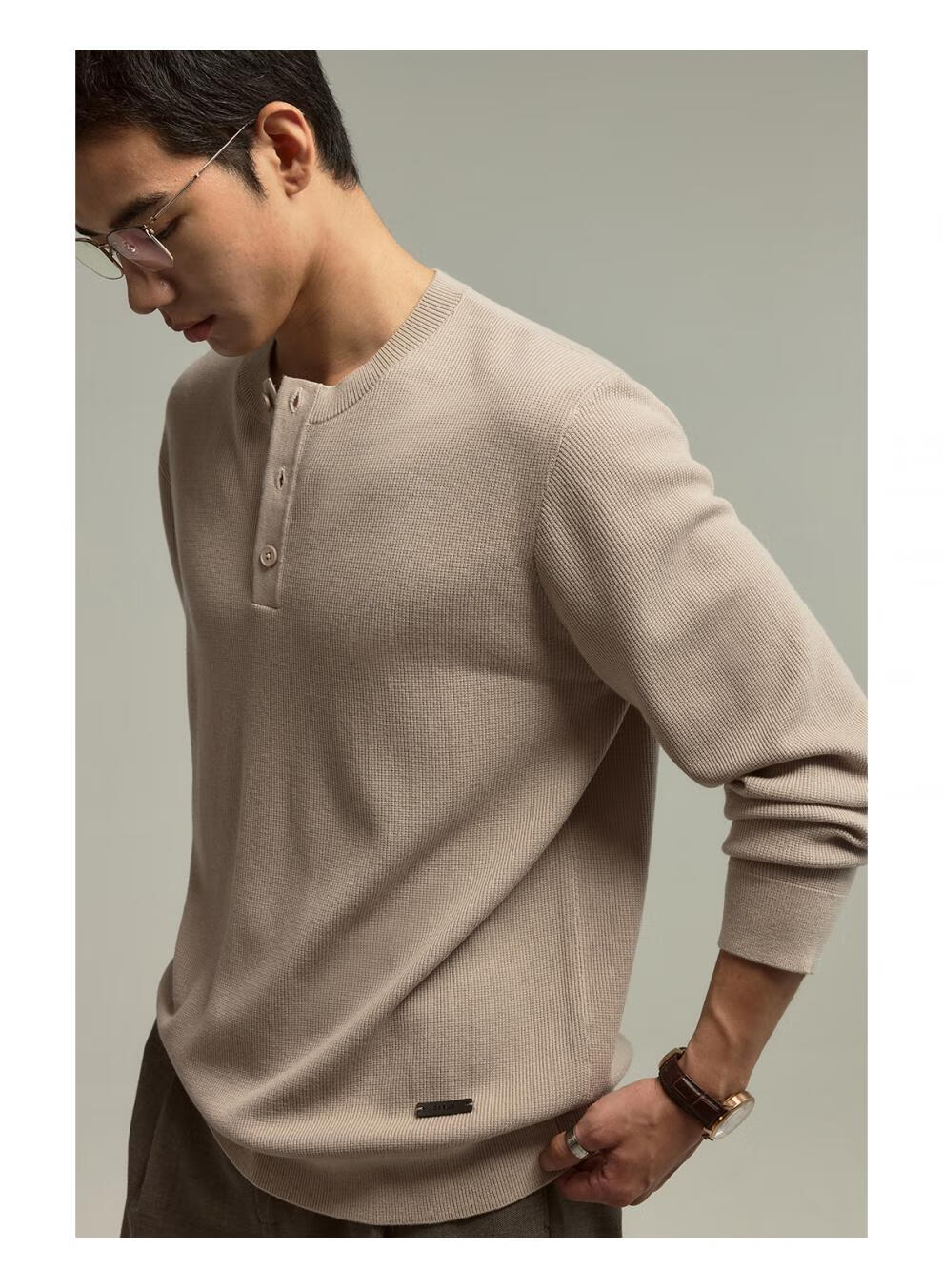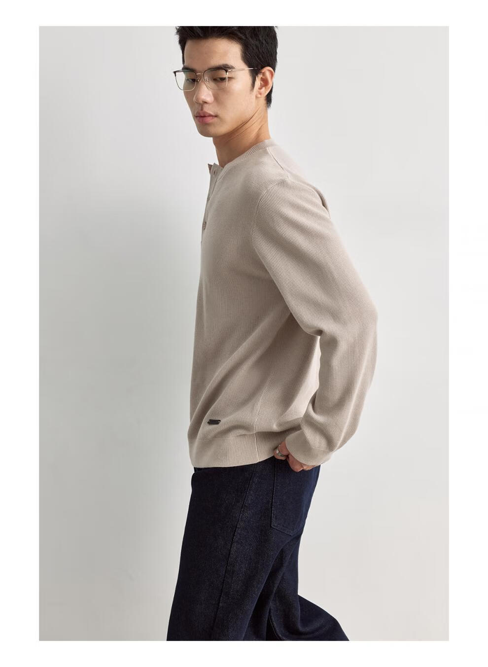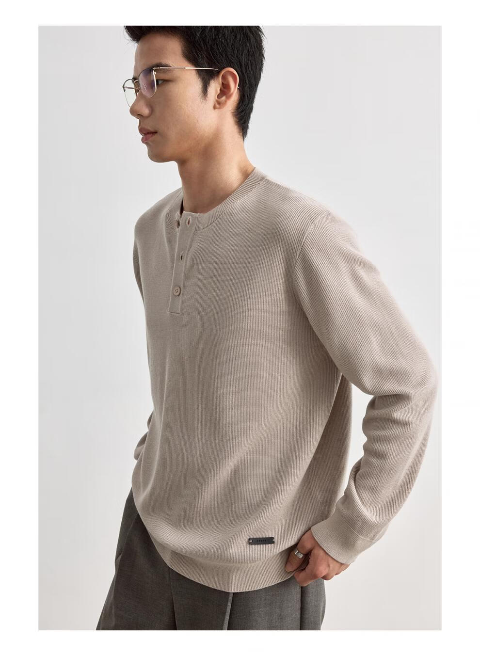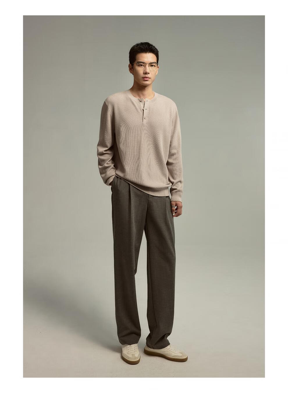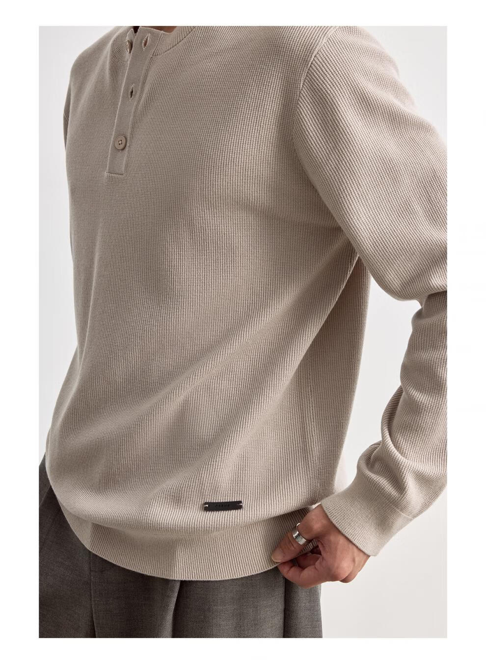 OSENSOSNES wool double-ply yarn waffle knitted half-open henley collar cardigan knitted sweater for men warm apricot color in stock M 170_92A_