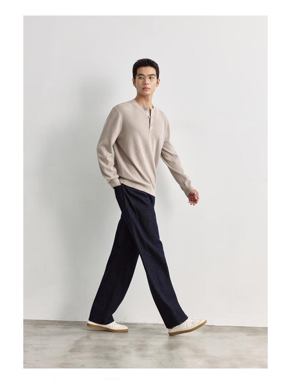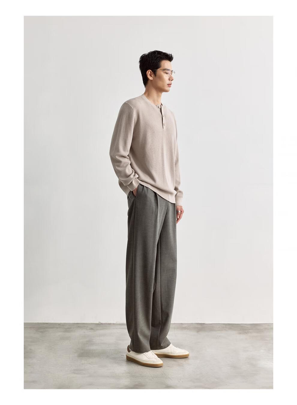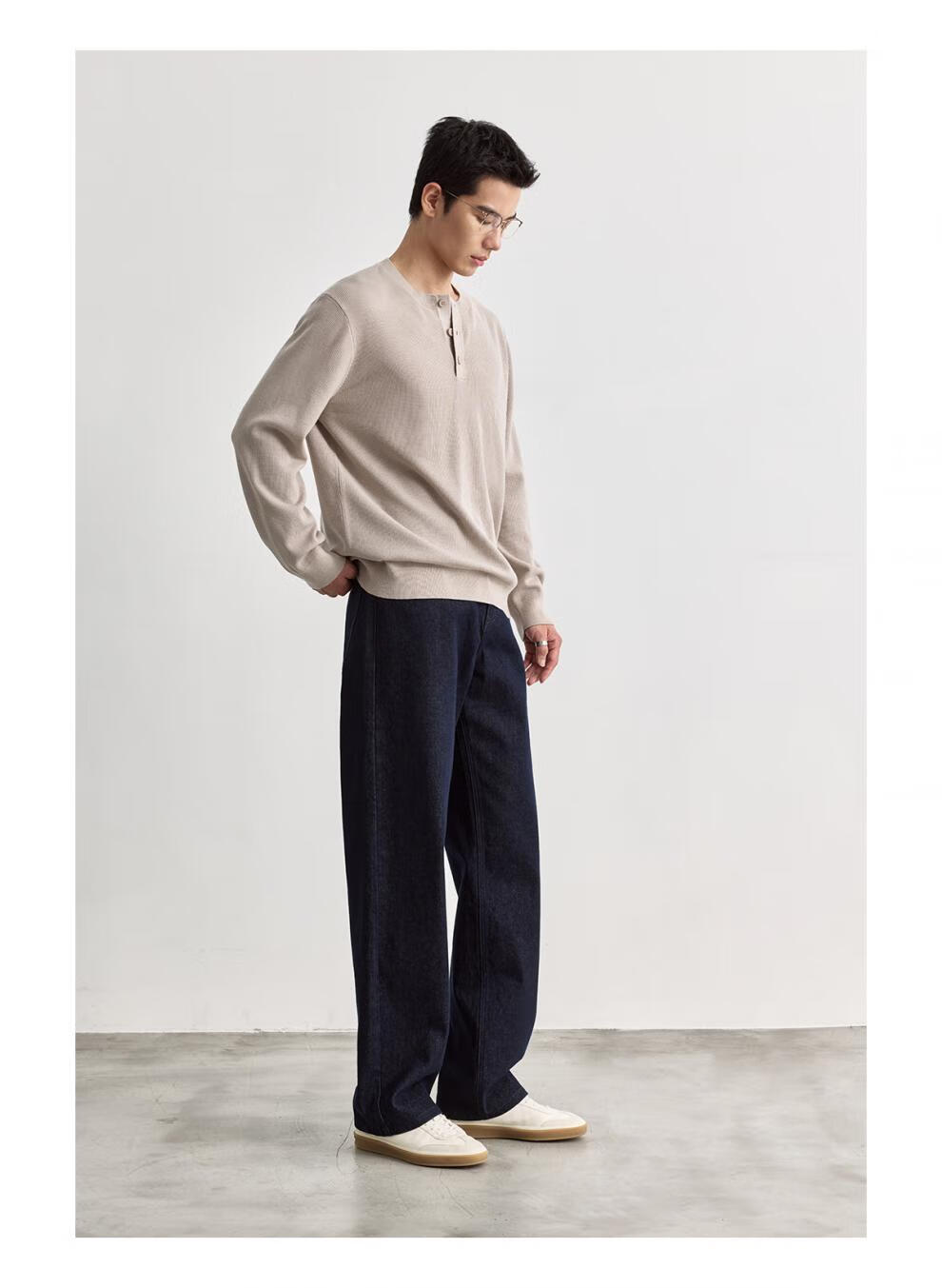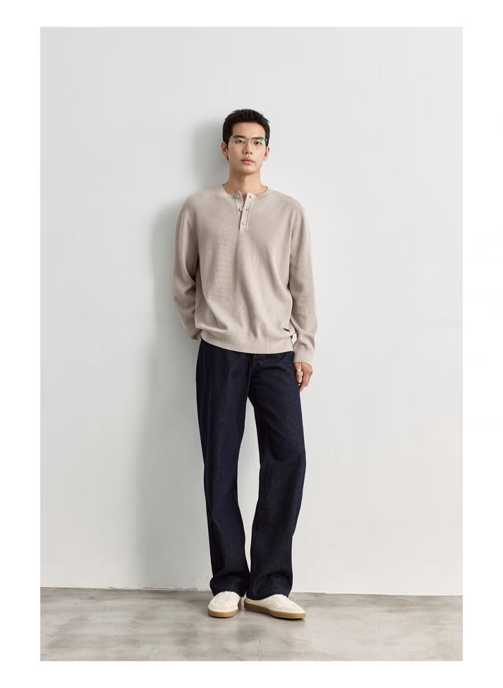 OSENSOSNES wool double-ply yarn waffle knitted half-open henley collar cardigan knitted sweater for men warm apricot color in stock M 170_92A_