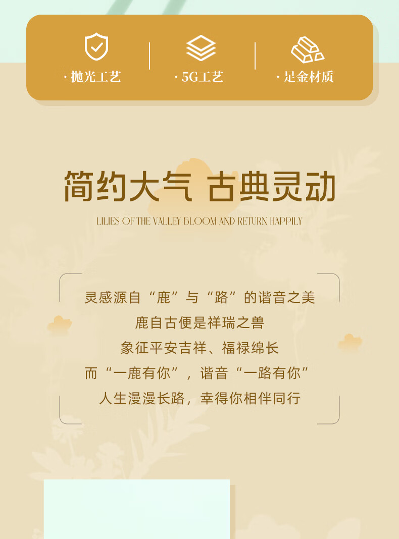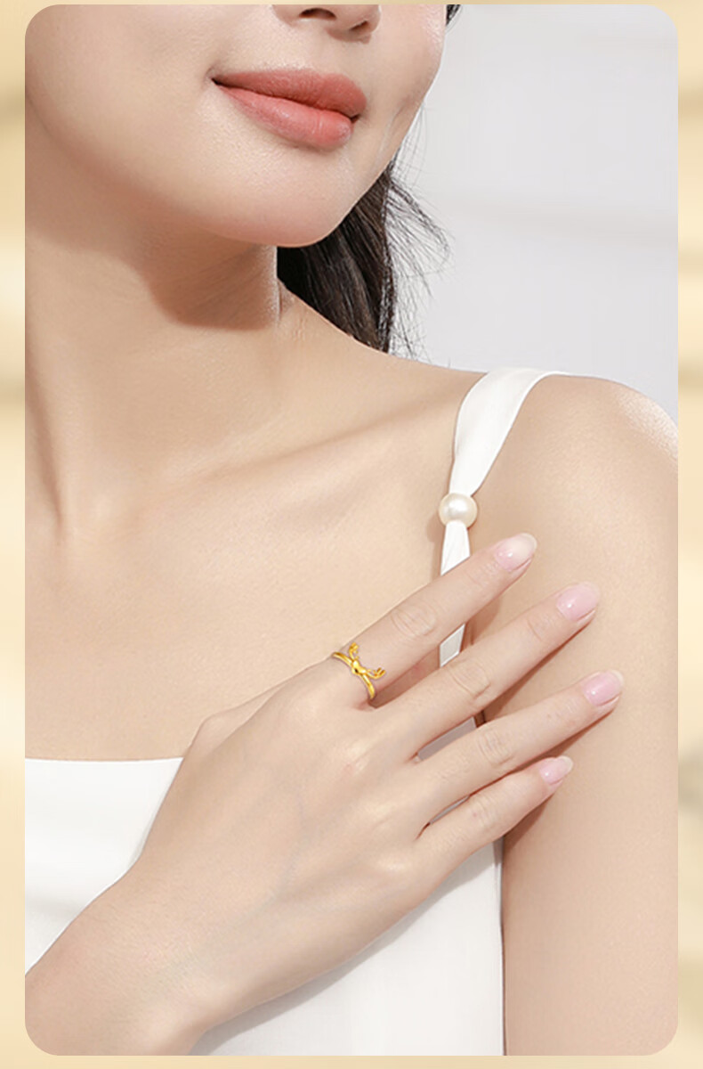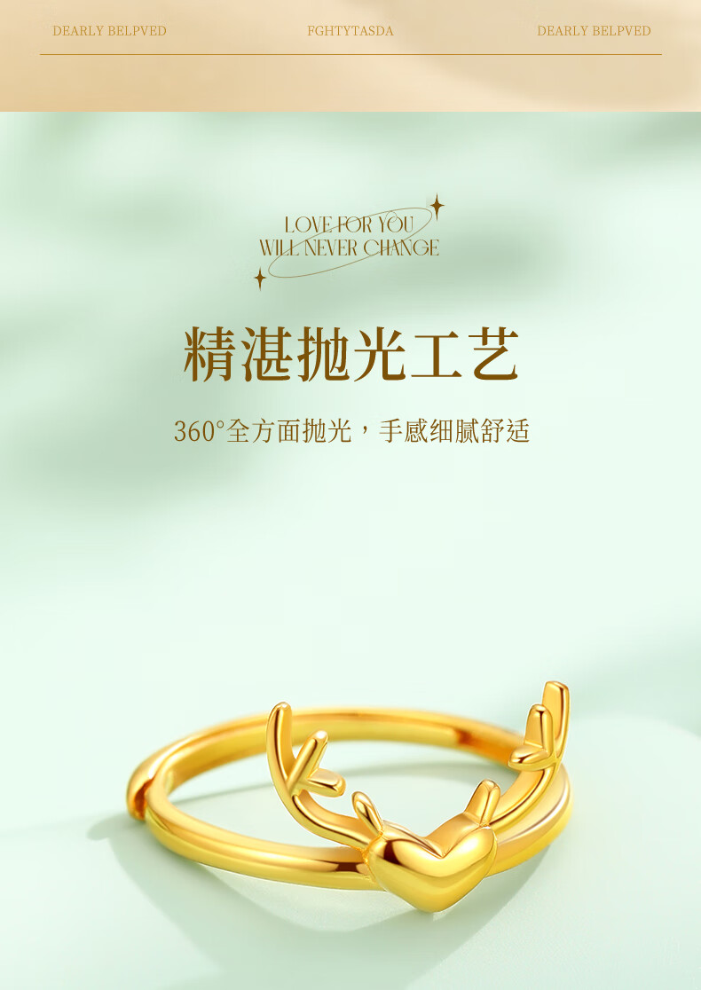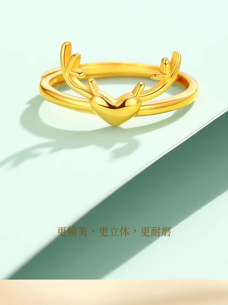 CHINA GOLD Yilu You You Gold Ring Female Deer Antler Pure Gold Open Ring Christmas Eve Christmas Gift for Girlfriend and Wife Gold Weight Approximately 2.2g Comes with Rose Gift Box