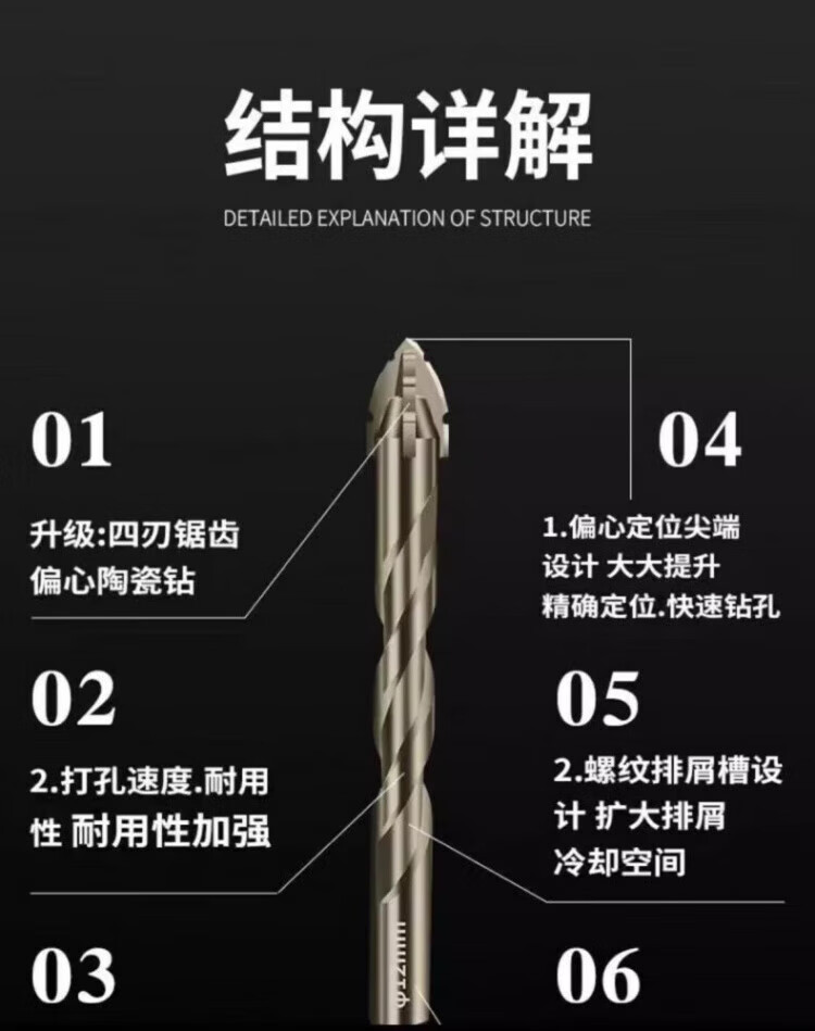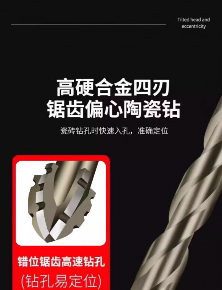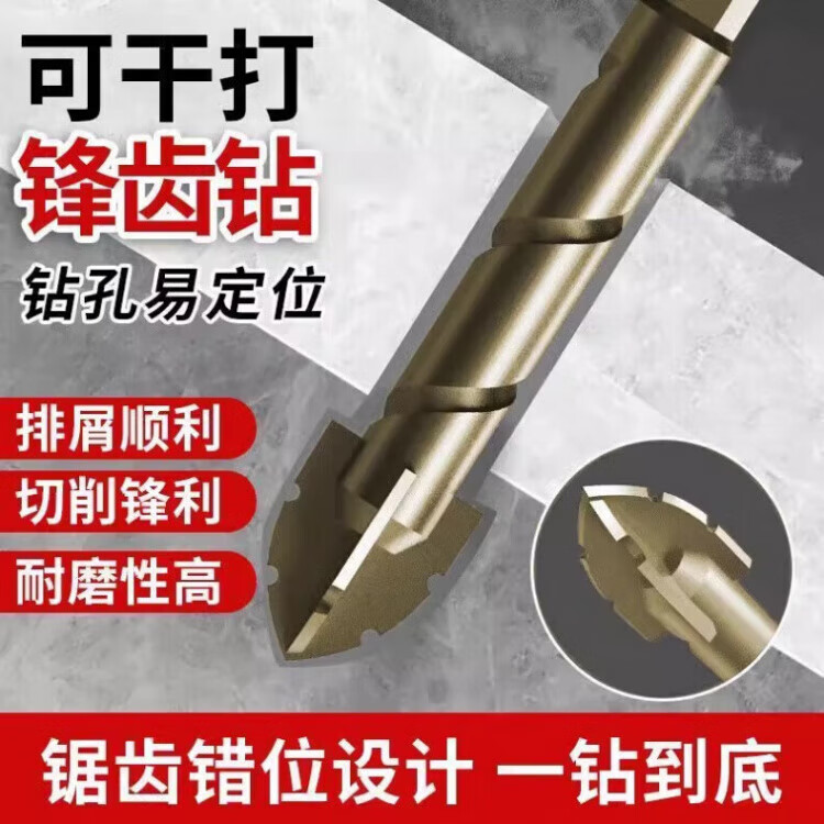 Skingcond Germany upgraded four-edged serrated eccentric drill bit tile concrete drilling bit tungsten steel high hardness dry drilling bit 6+8+10+12, a total of four pieces, lifetime damage guarantee