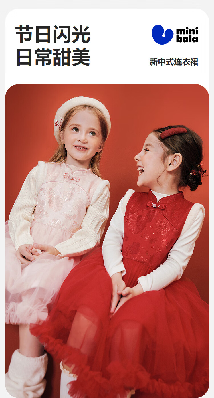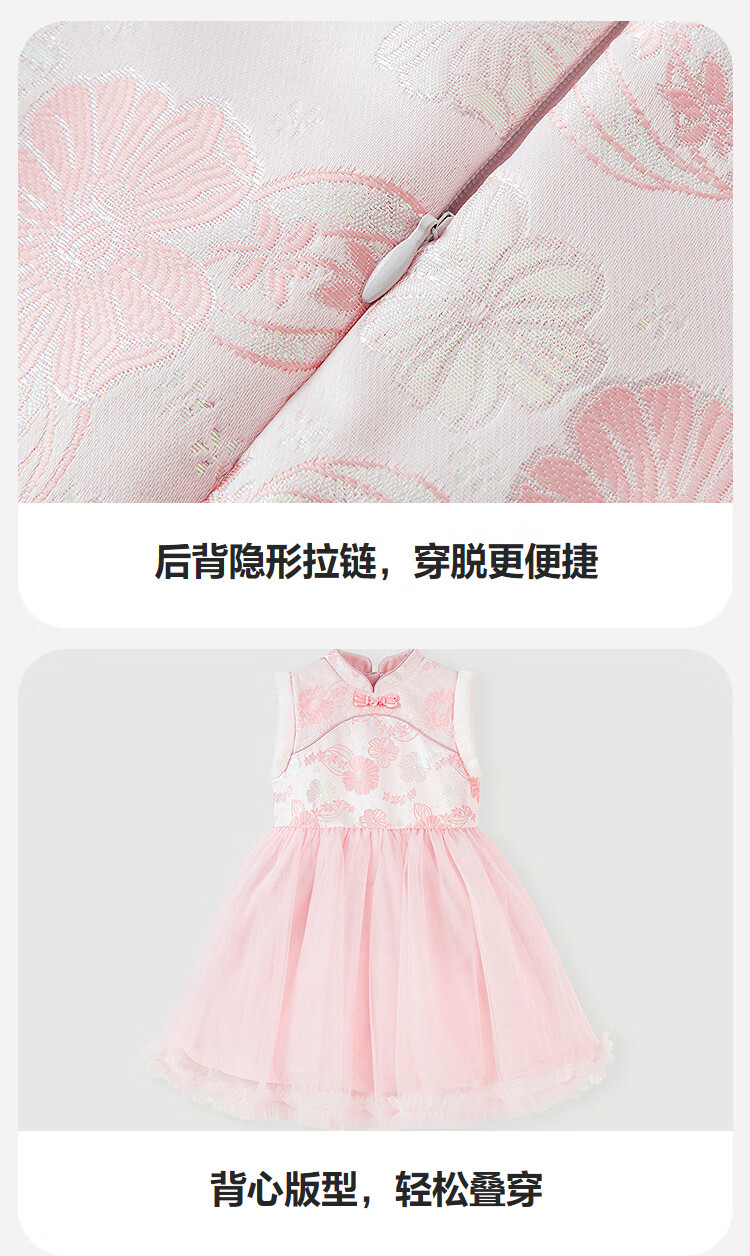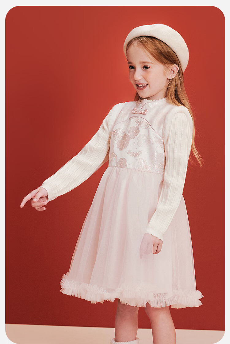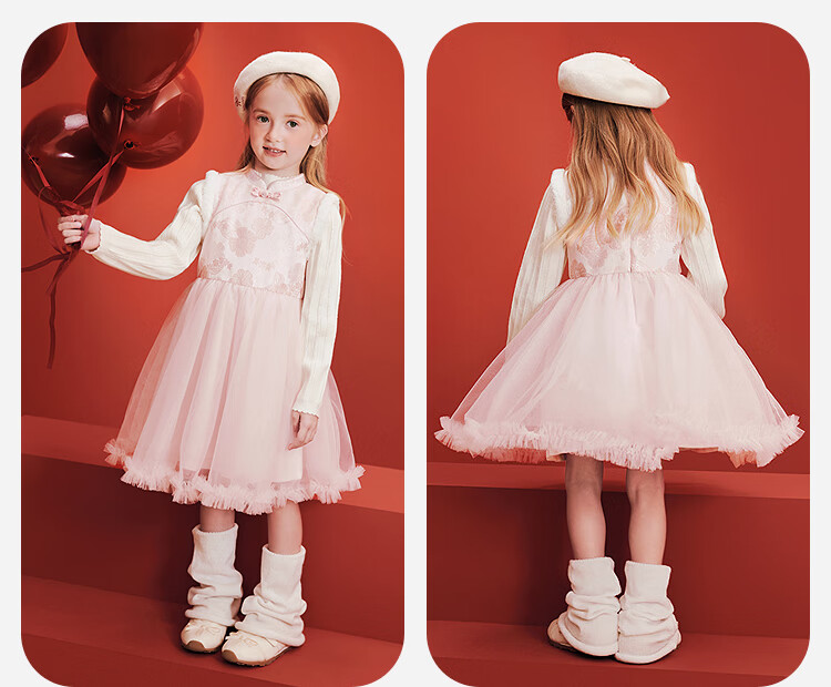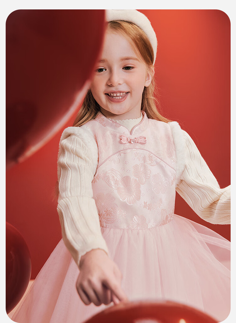 Mini Bala Girls Skirt Children's New Chinese Style Stand Collar Splicing Mesh Dress New Year's Eve Wear 2026 Spring New Year Pink 60045 120