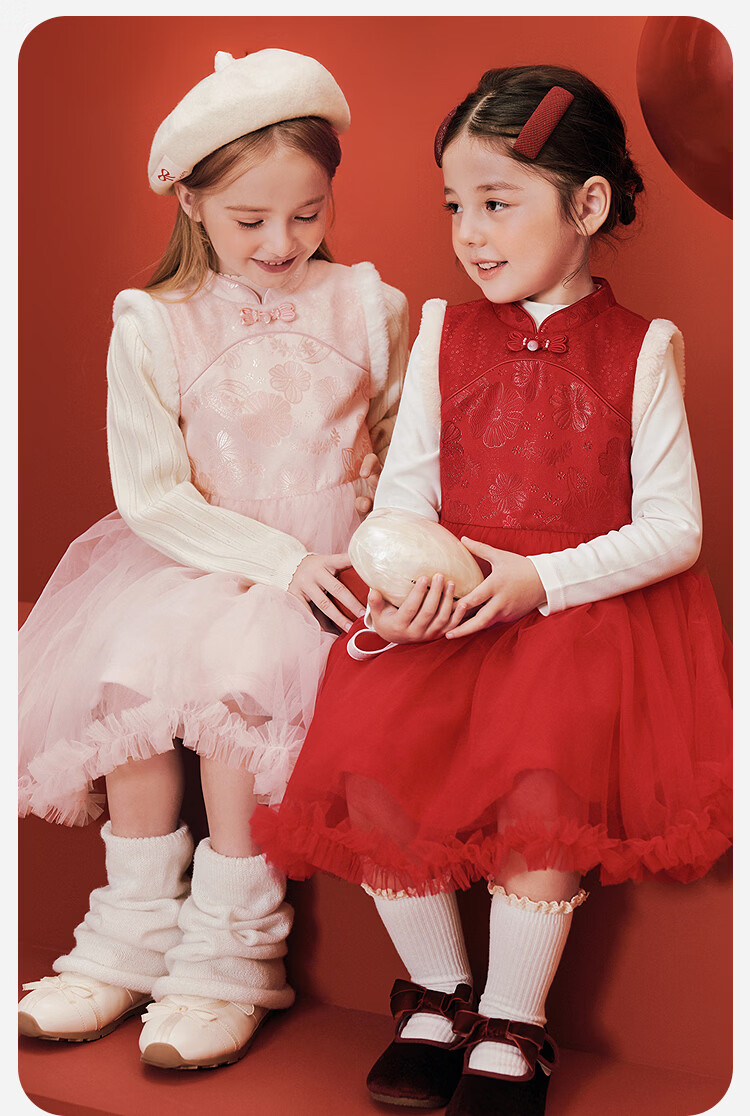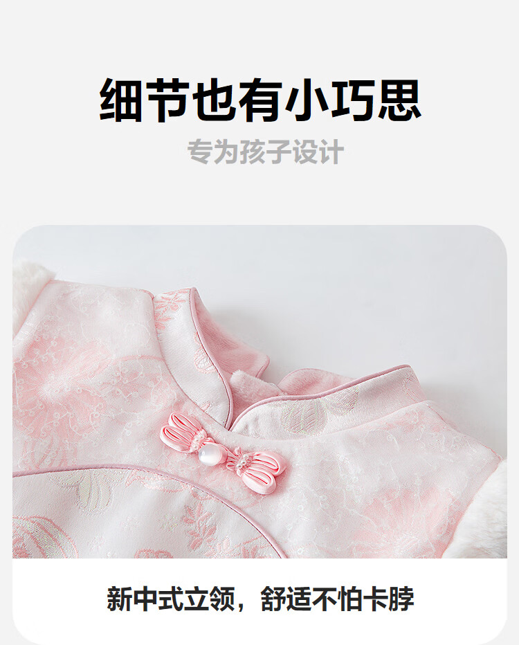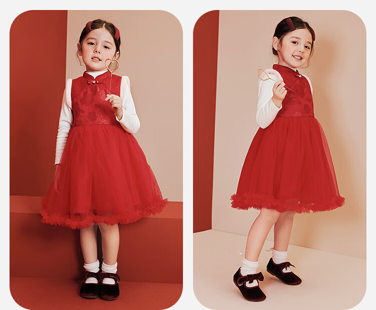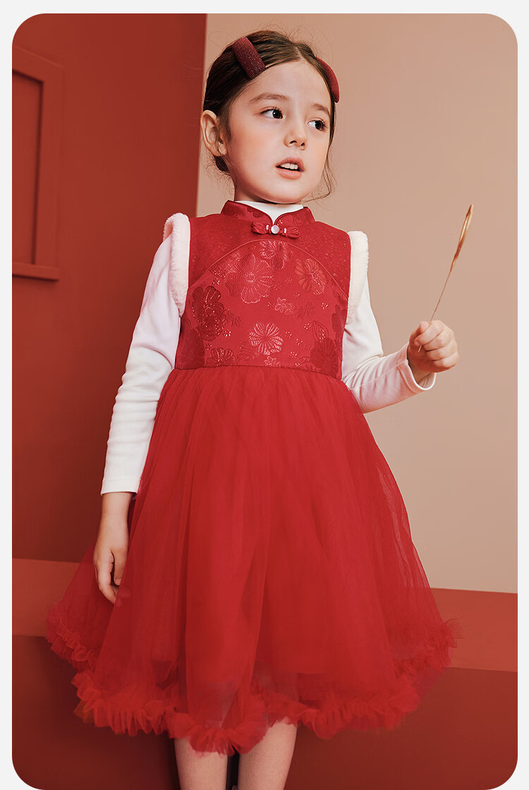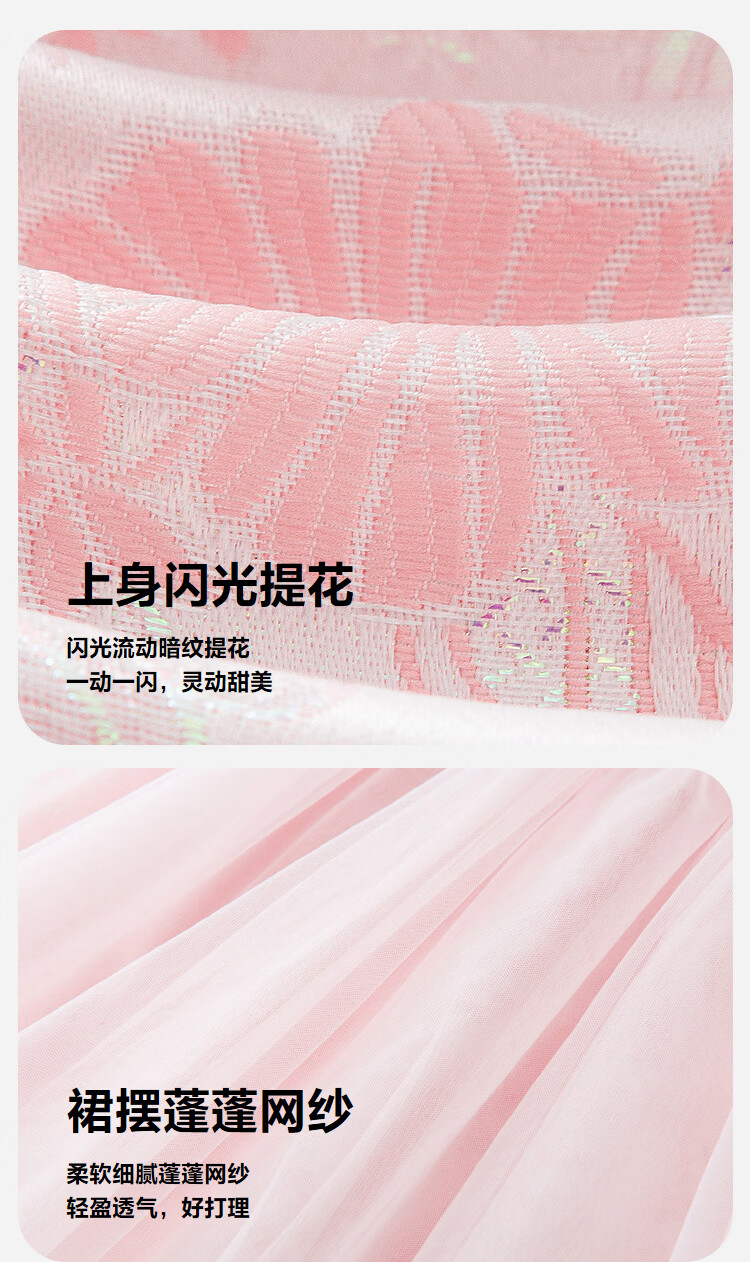 Mini Bala Girls Skirt Children's New Chinese Style Stand Collar Splicing Mesh Dress New Year's Eve Wear 2026 Spring New Year Pink 60045 120