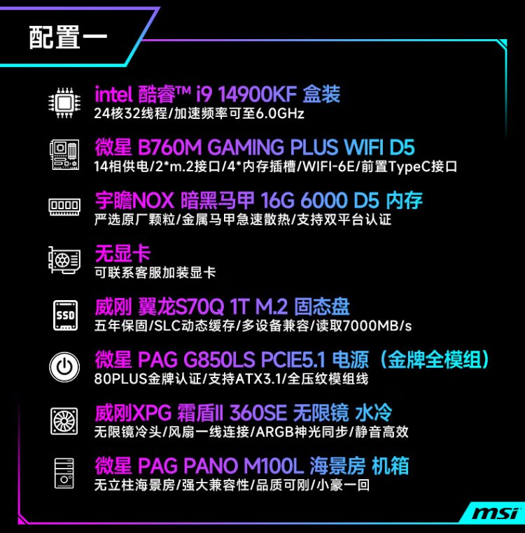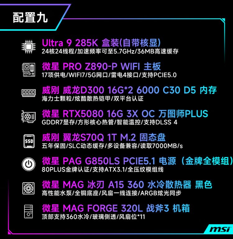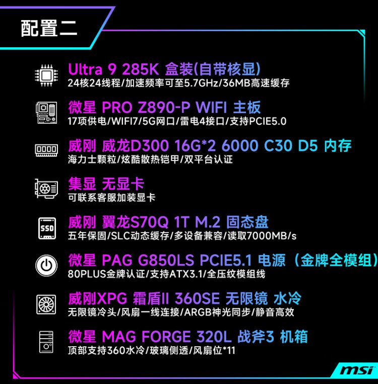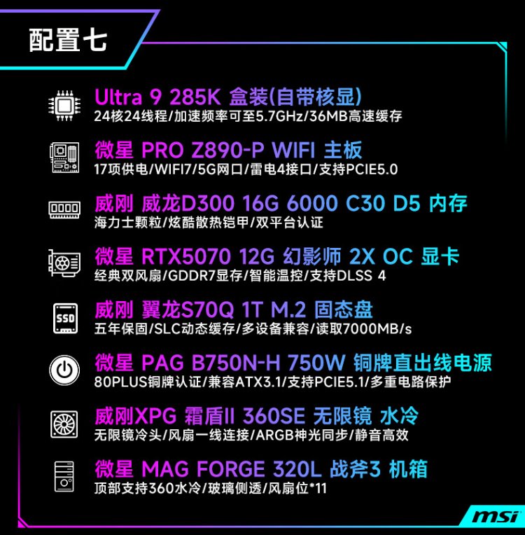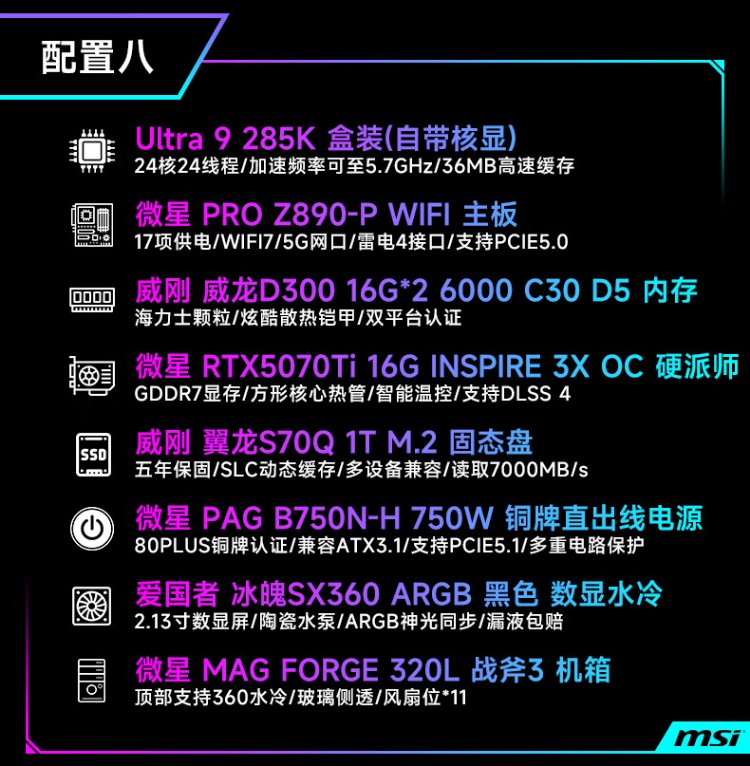 MSI Ultra 9 285K/i9 14900KF/5070Ti/5080 assembled computer complete machine design rendering game e-sports host DIY assembly machine sea view room configuration two 285K丨32G丨1T丨core display without card