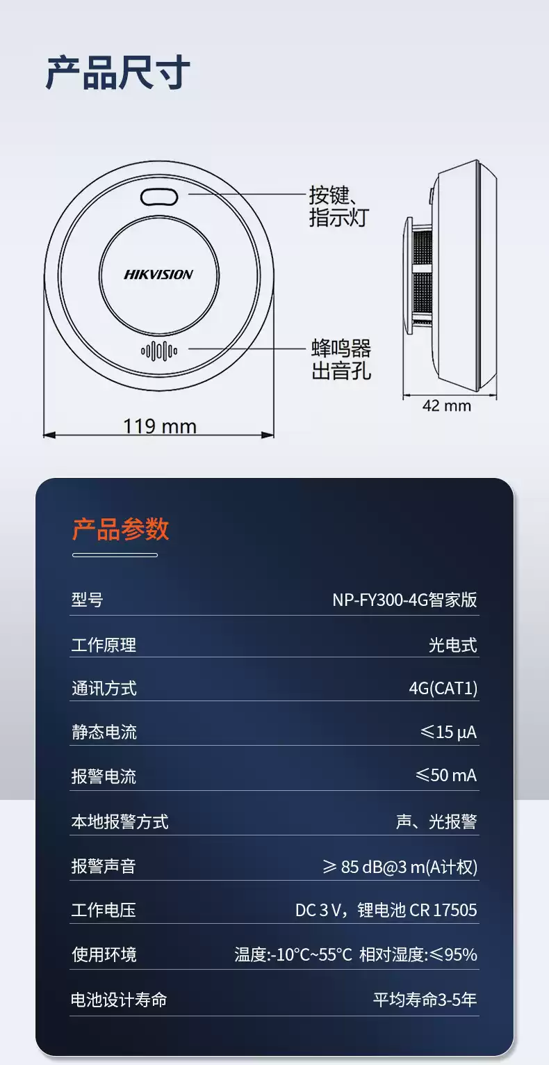 Hikvision smoke alarm wireless WIFI fire detection linkage mobile phone indoor household smoke sensor carbon monoxide version gas alarm