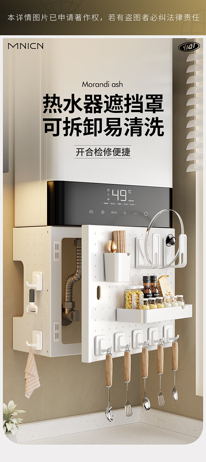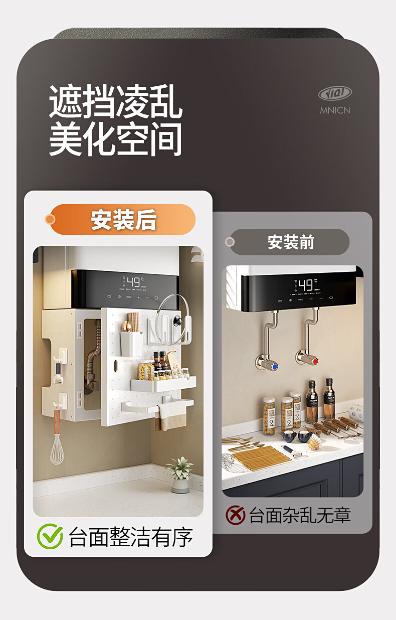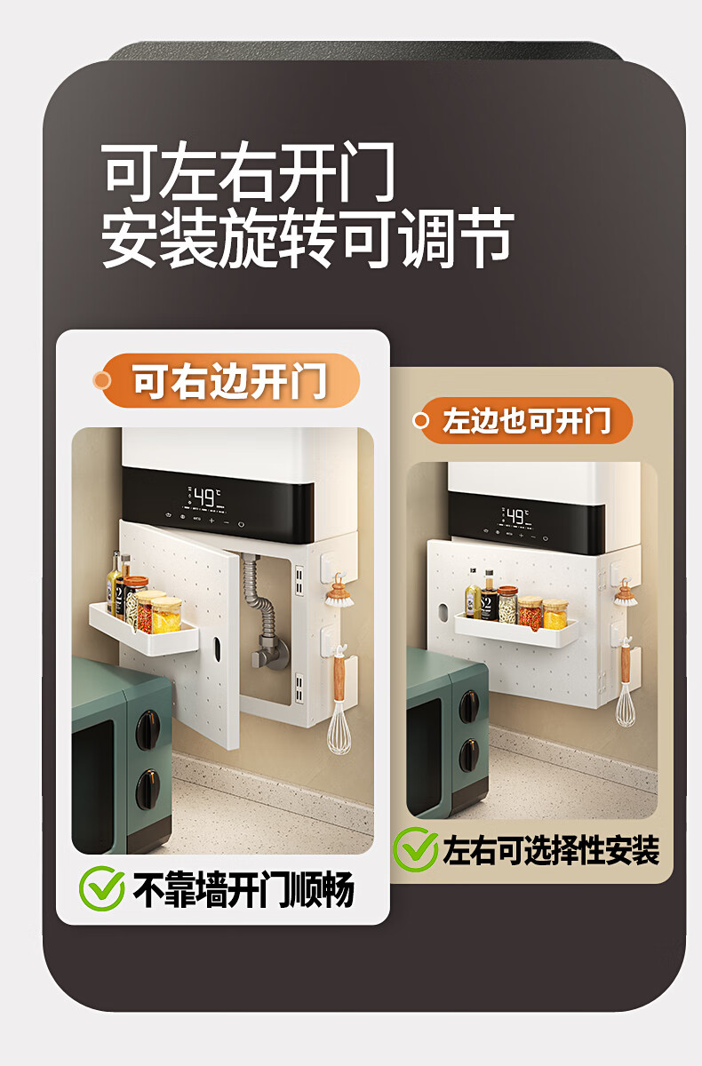 MNICN kitchen perforated plate storage rack wall-mounted magnetic pipe concealing decorative cover hook gas water heater shield cover can open the door hole style shield free hook 6 width 38 height 40 depth 17