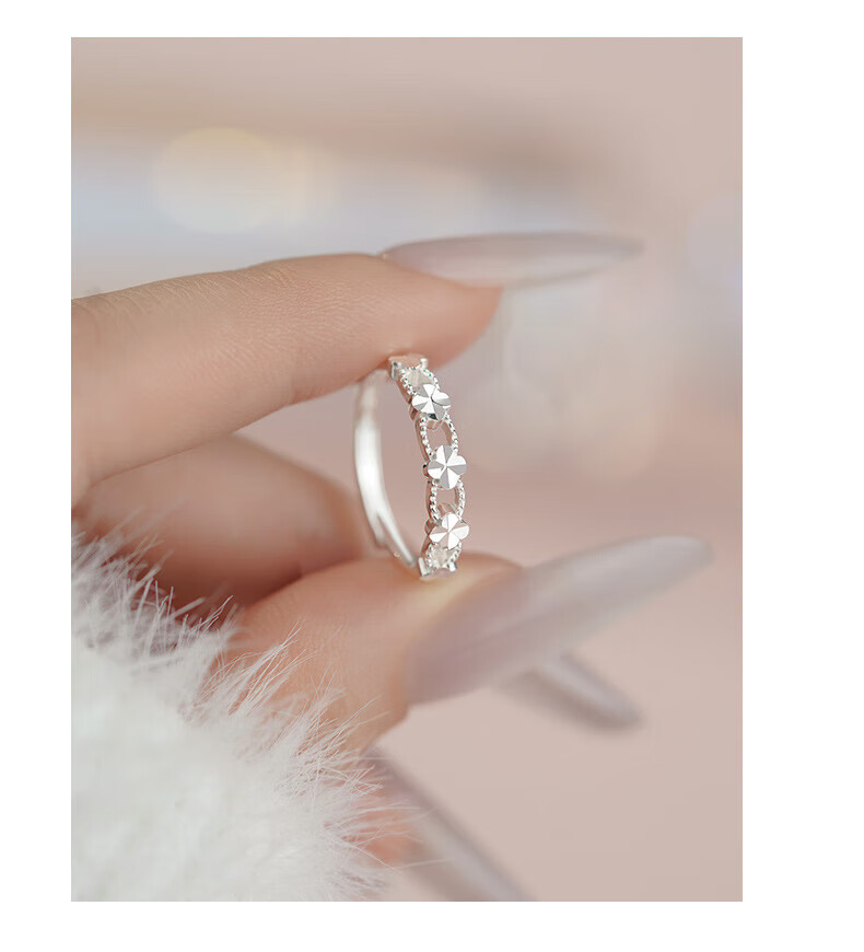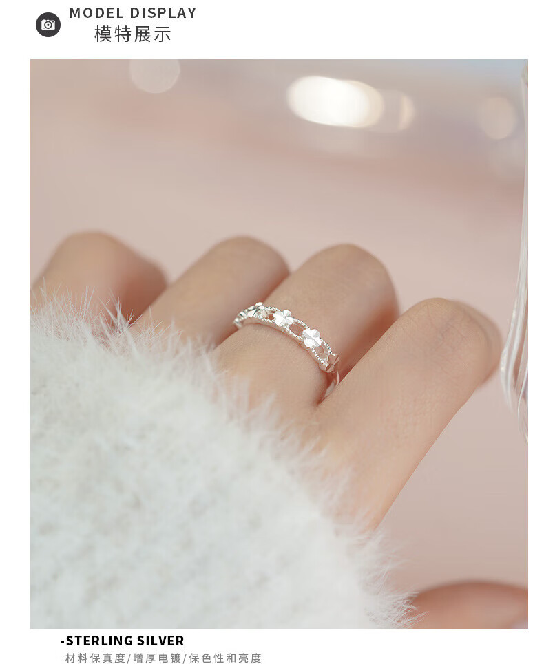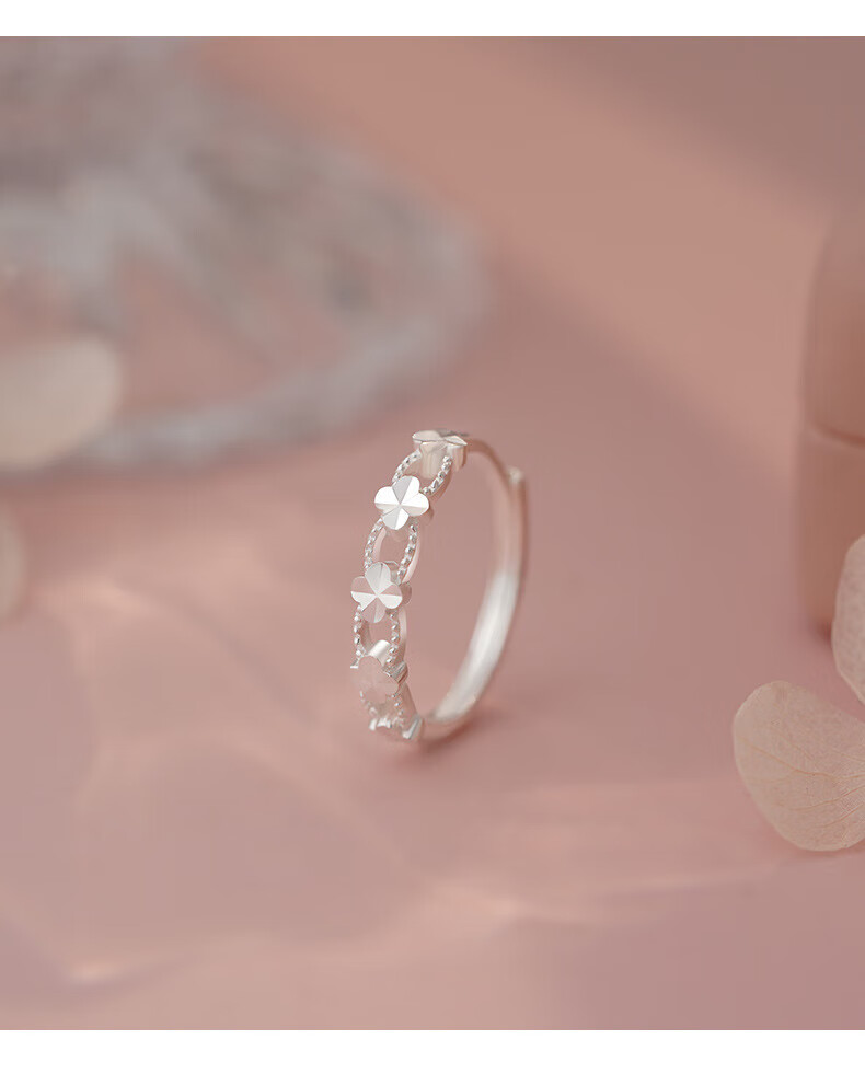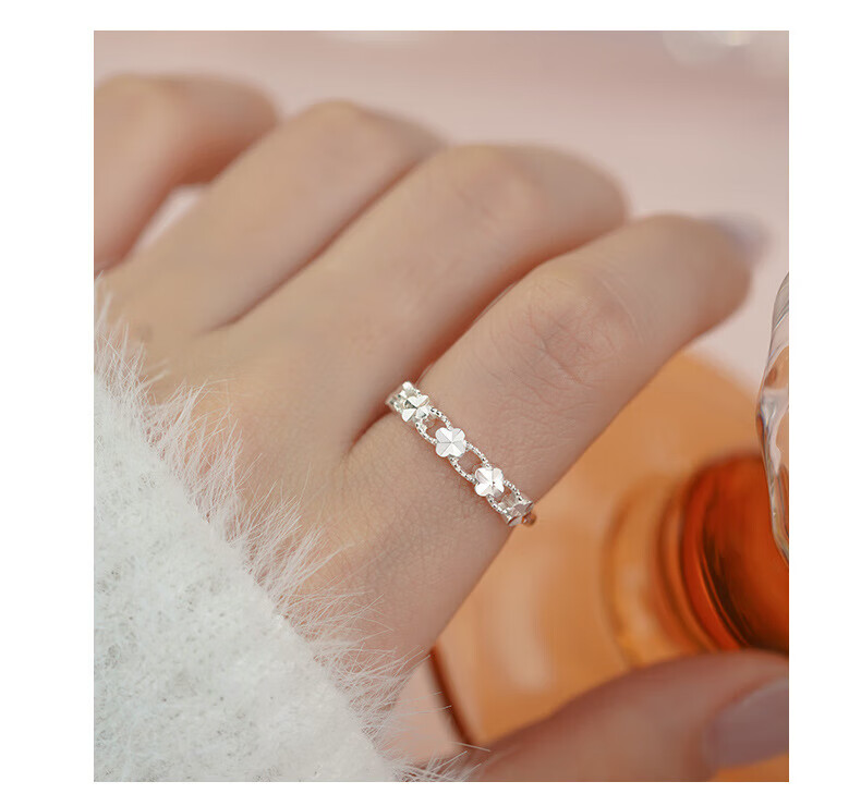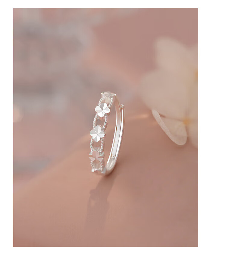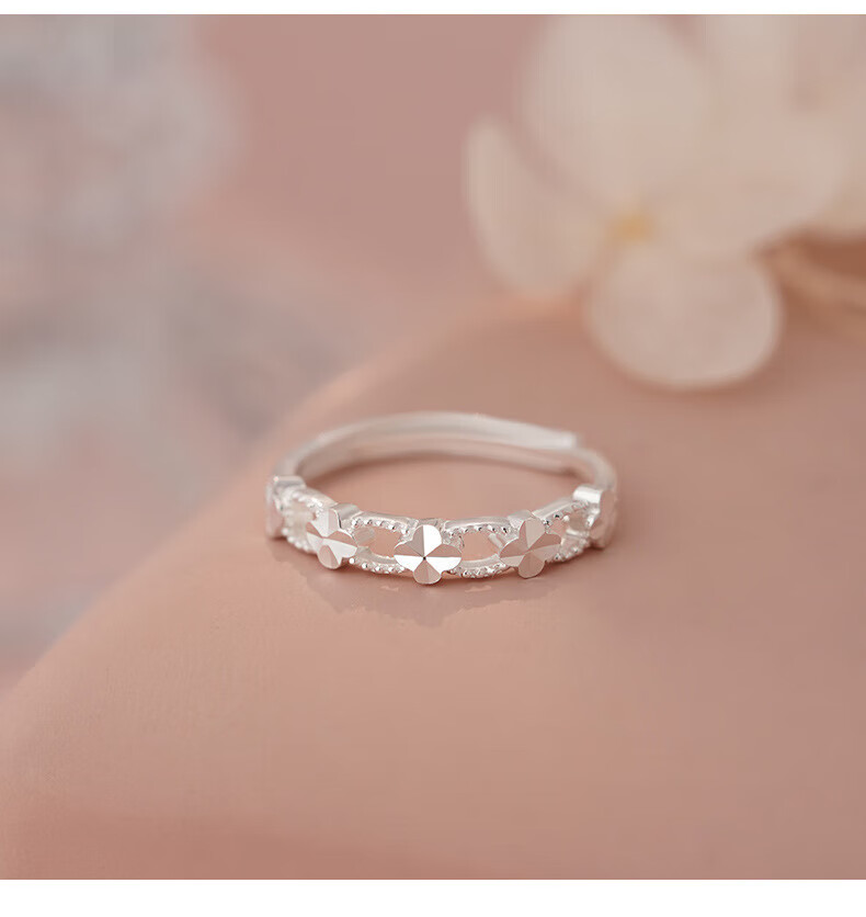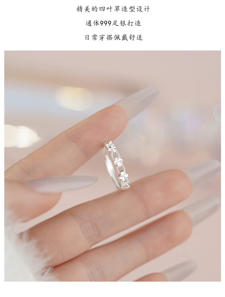 Baoqing Yinlou silver ring pure silver 999 four-leaf clover hollow ring gift sterling silver jewelry for girlfriend and wife birthday gift pure silver four-leaf clover hollow ring about 1.48g