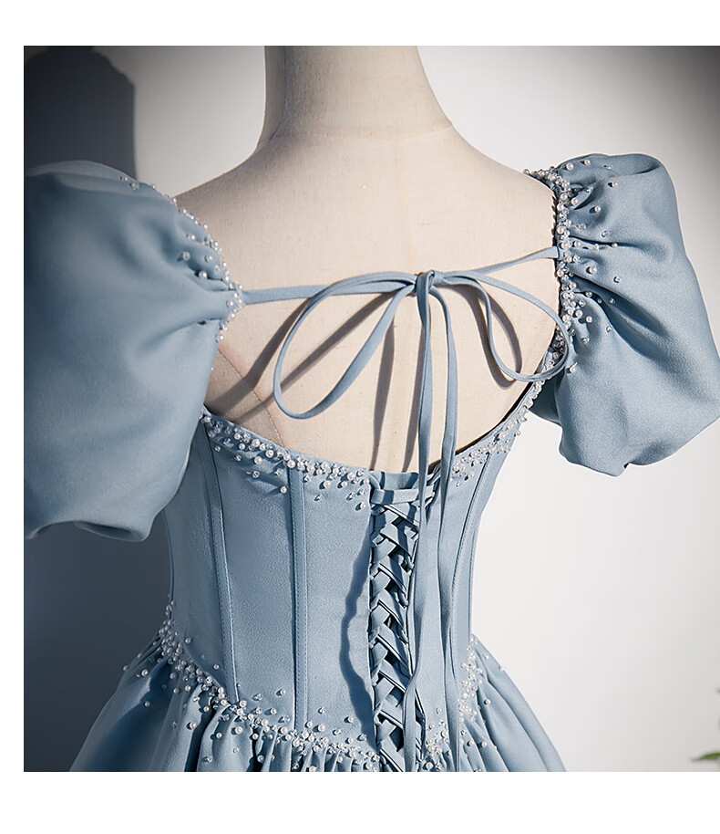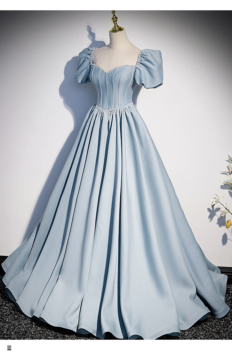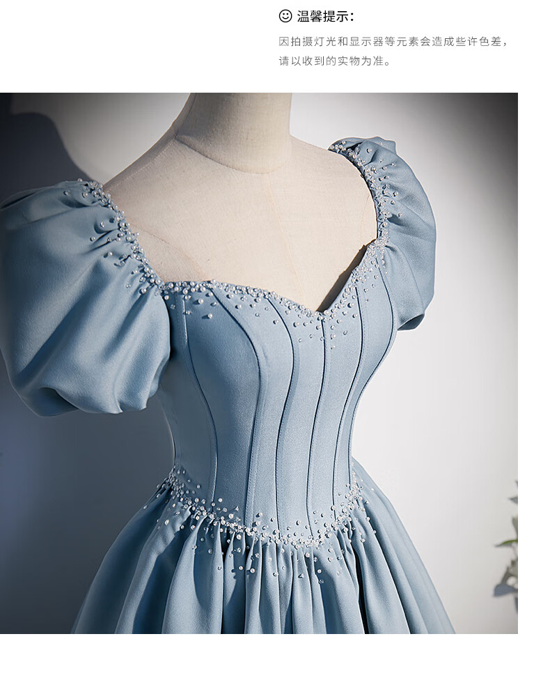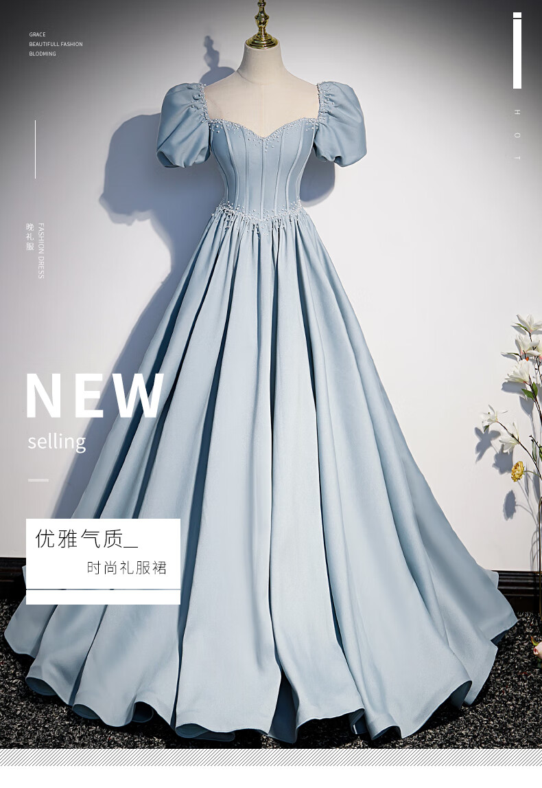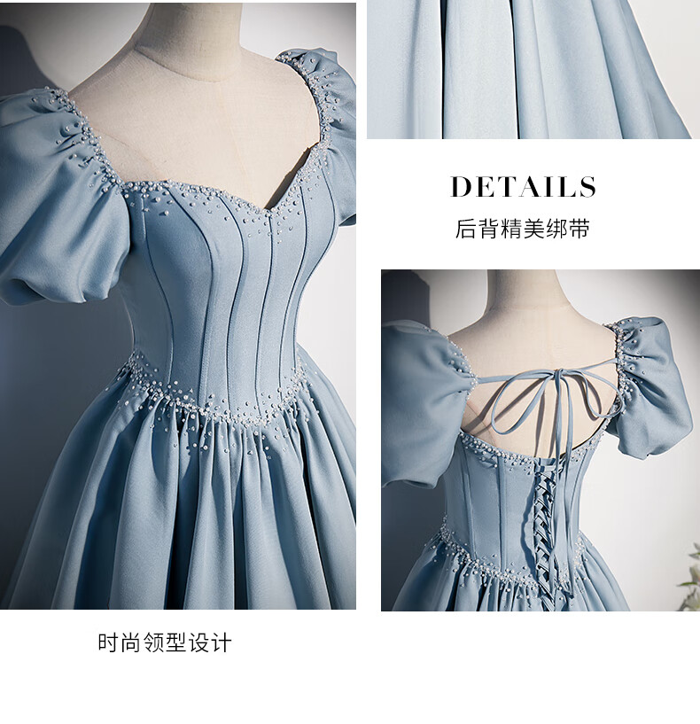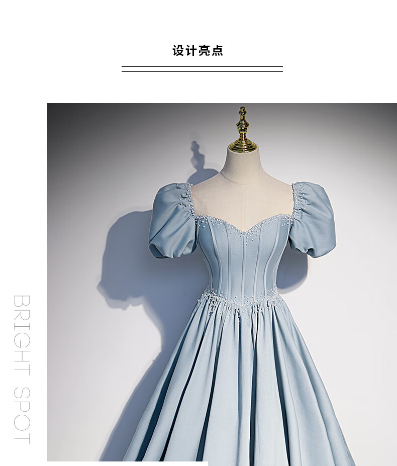 French Princess Evening Dress for Women Light Luxury Niche Satin Adult Ceremony Vocal Art Test Solo Blue XS