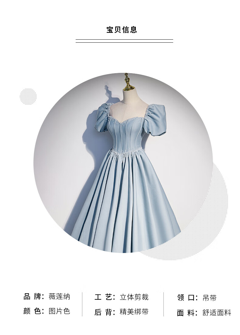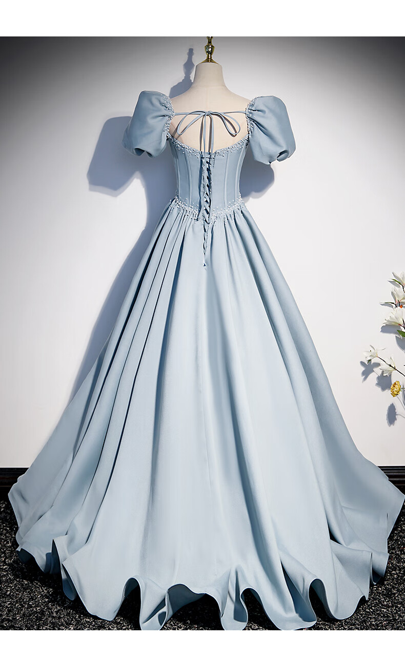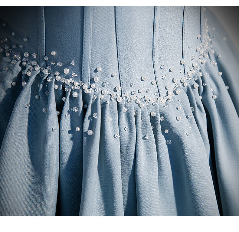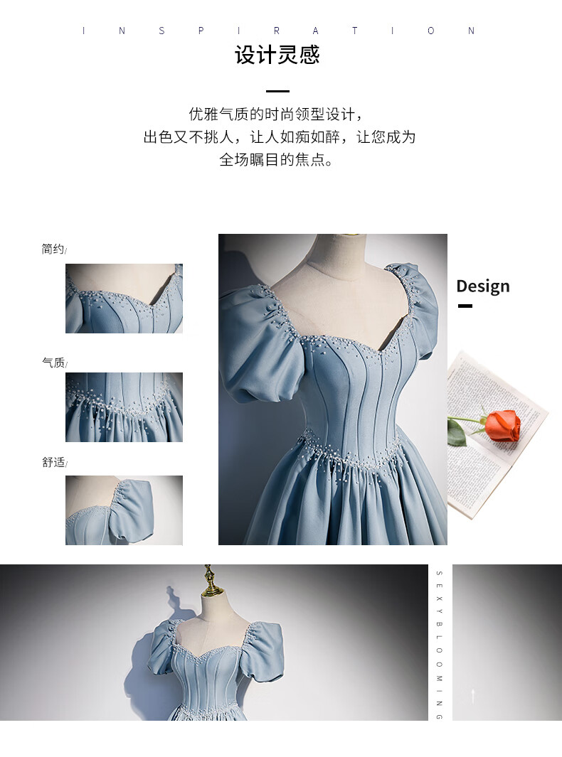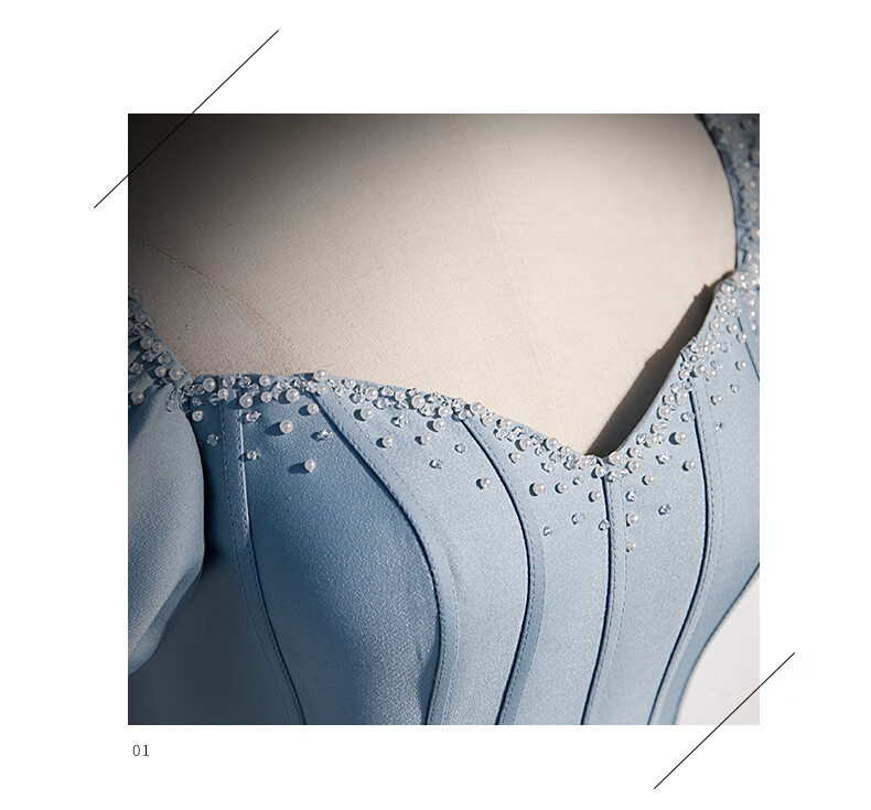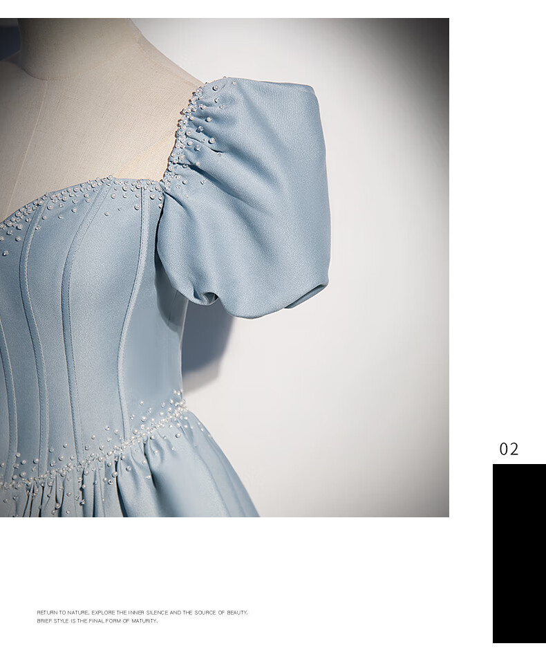 French Princess Evening Dress for Women Light Luxury Niche Satin Adult Ceremony Vocal Art Test Solo Blue XS