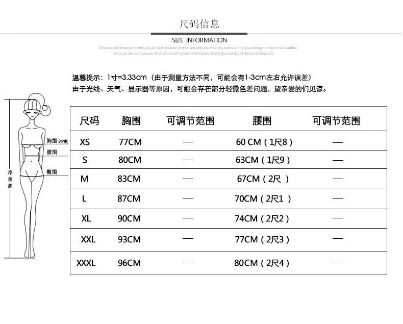 China (cm) 160-165/84-86 165-170 / 88-90 167-172 / 92-96 168-173 / 98-102 170-176 / 106-110
