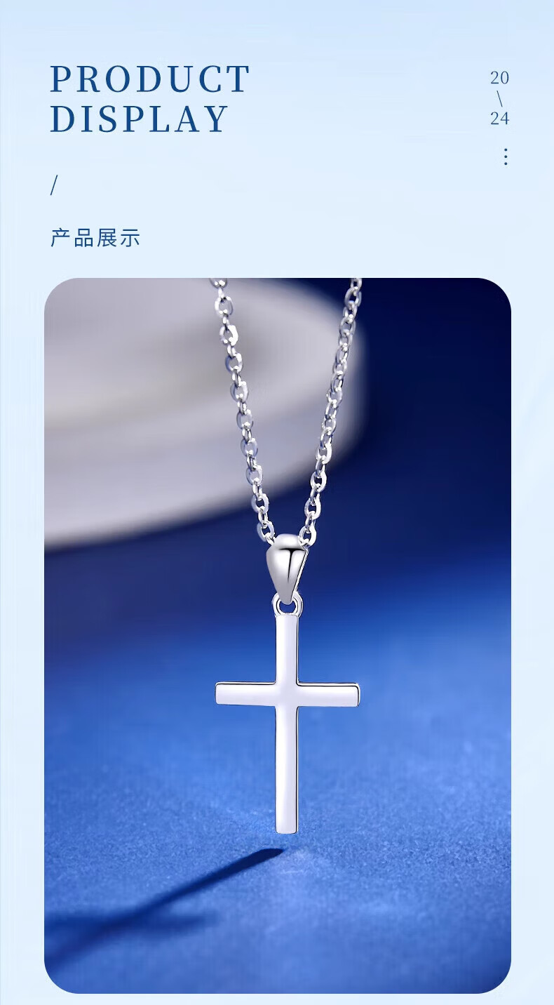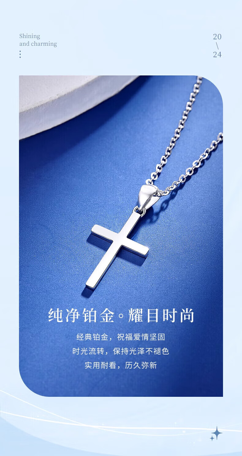 Lao Fengxiang PT950 platinum pendant cross necklace for men and women platinum fashion pendant Valentine's Day birthday gift for girlfriend Platinum cross pendant about 1.8g free silver chain + brand gift box