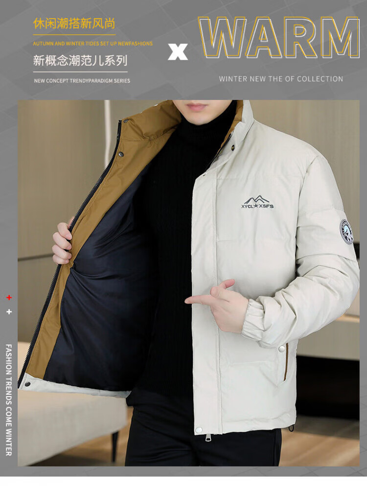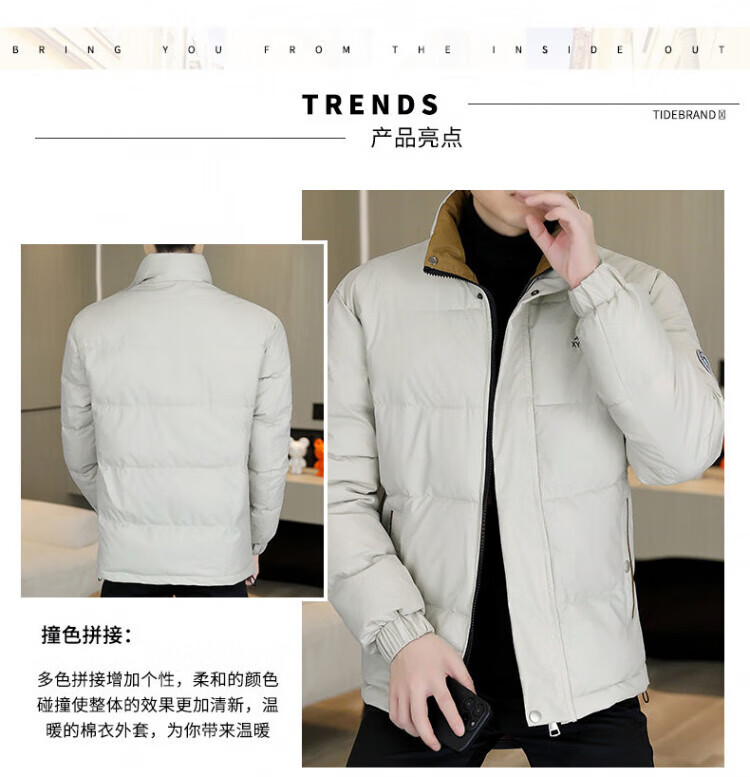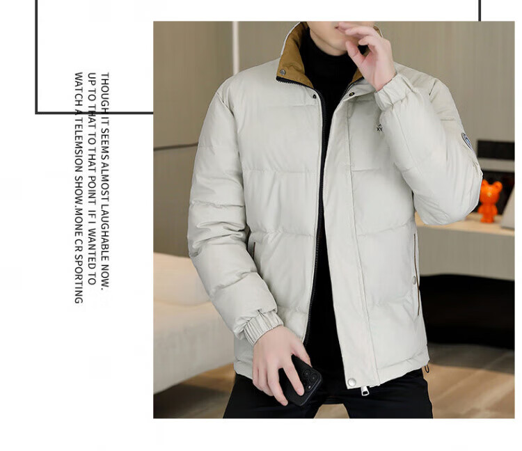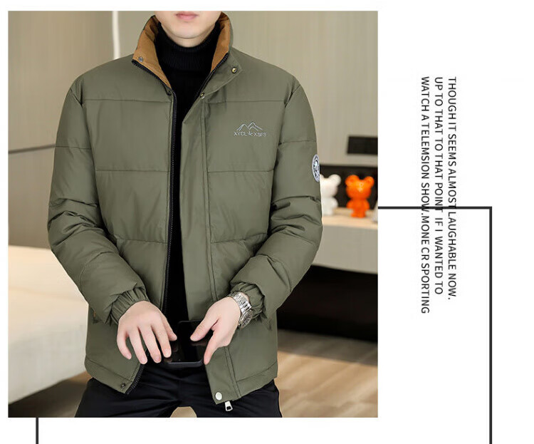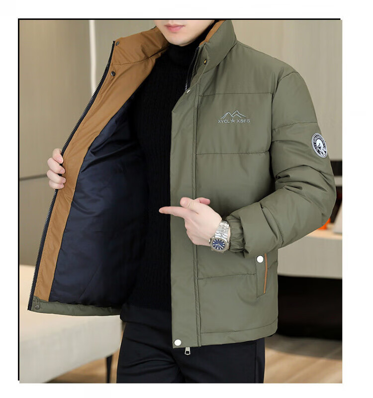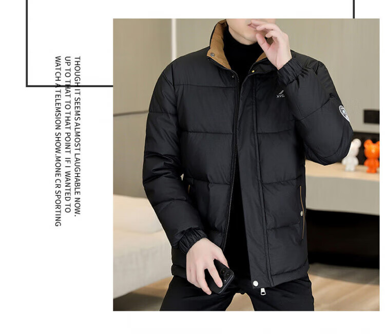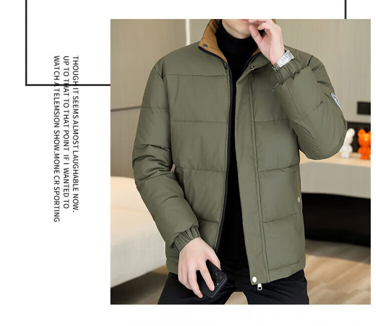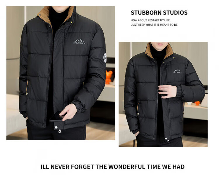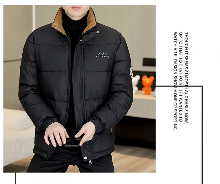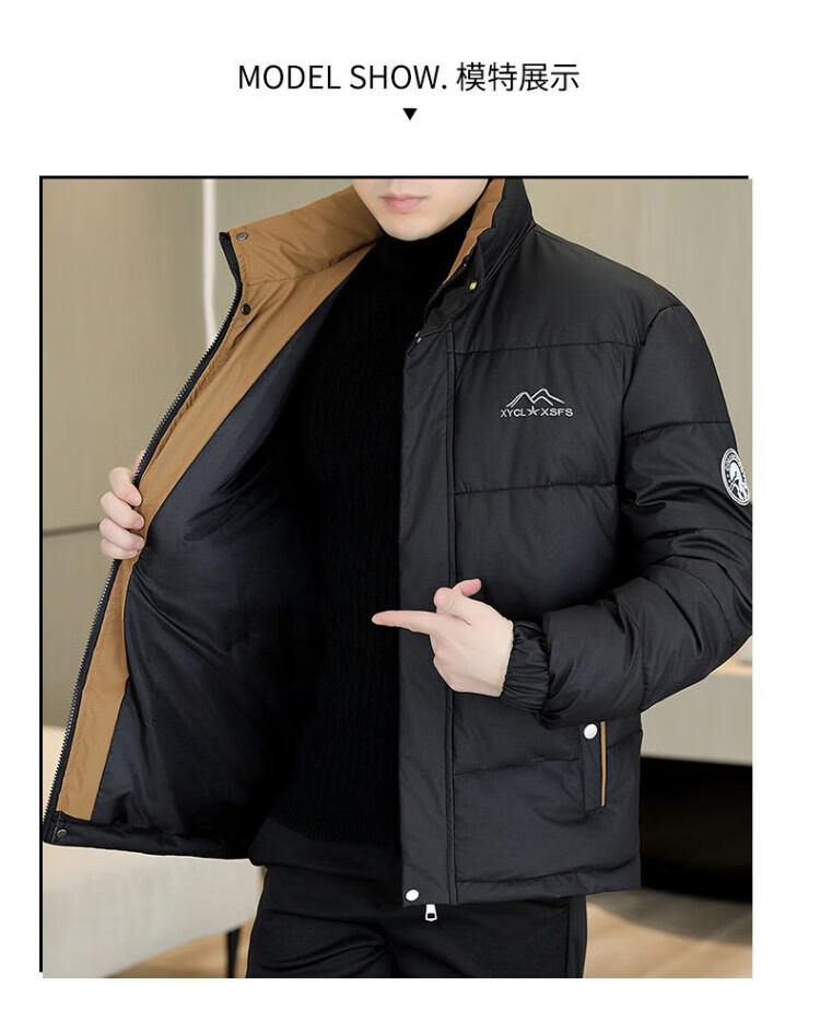 ROMON Cotton Jacket Men's Jacket 2025 Autumn and Winter Short Thick Slim Cotton Jacket Korean Style Trendy Handsome Warm Stand Collar Cotton Jacket Black XL