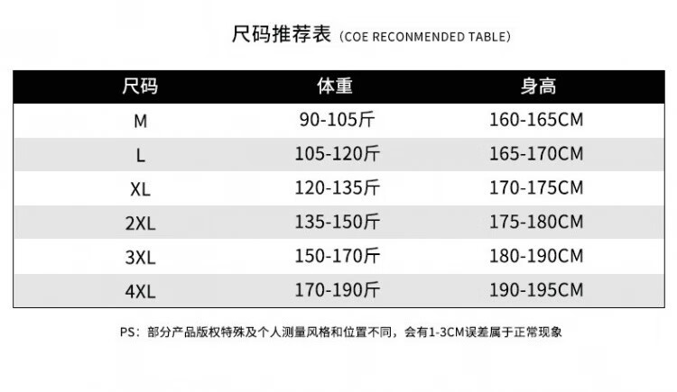 China (cm) 165 / 88-90 170 / 96-98 175 / 108-110 180 / 118-122 185 / 126-130