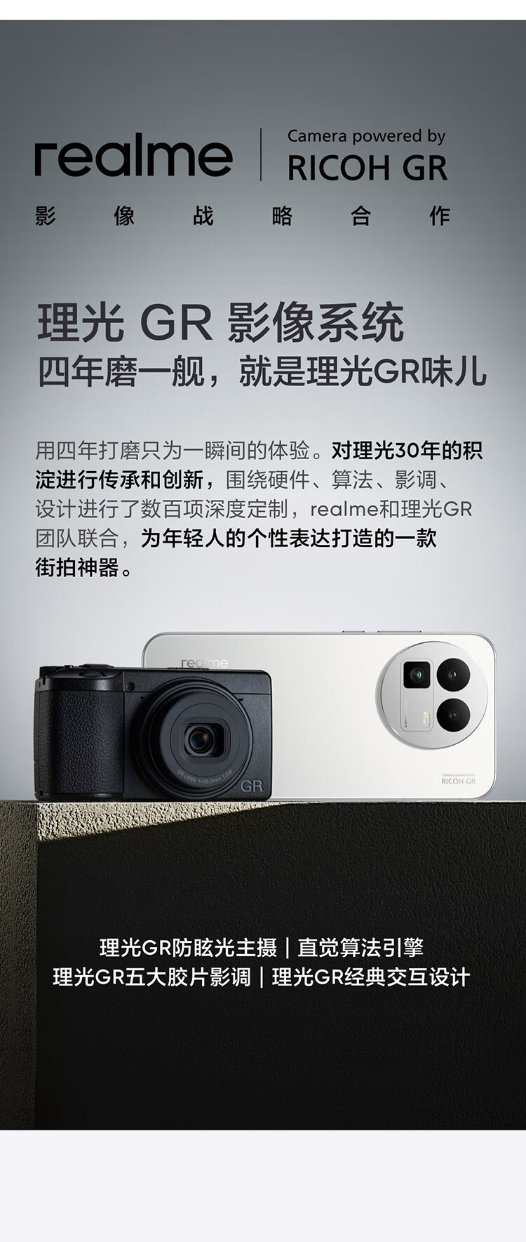 Realme new product realme GT8 Snapdragon 8 Extreme Edition Ricoh GR imaging system 50 million periscope telephoto camera AI smart camera e-sports gaming phone Navitas 12GB+256GB