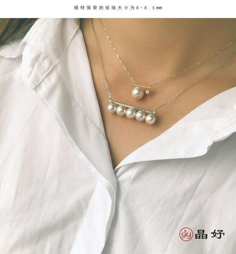 HEBAICHUANG akoya pearl necklace gold balance beam series seawater pearl clavicle chain 18K gold 7 points 58mm