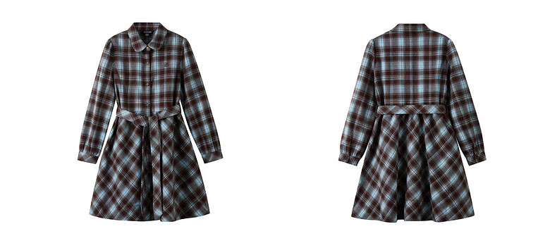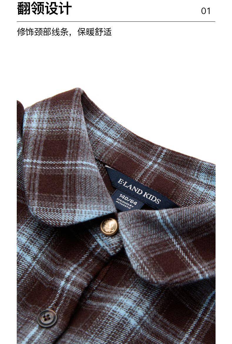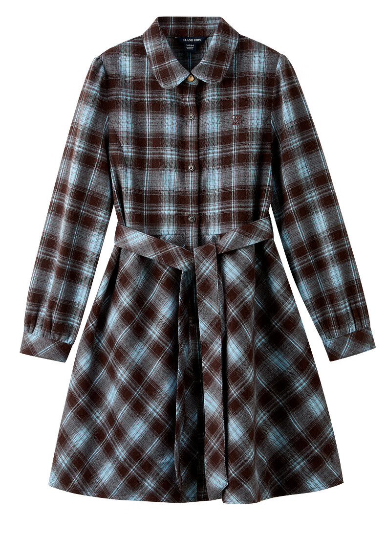 E LAND KIDS children's clothing girls dress season new college style pattern lapel shirt dress Brown brown/85 120