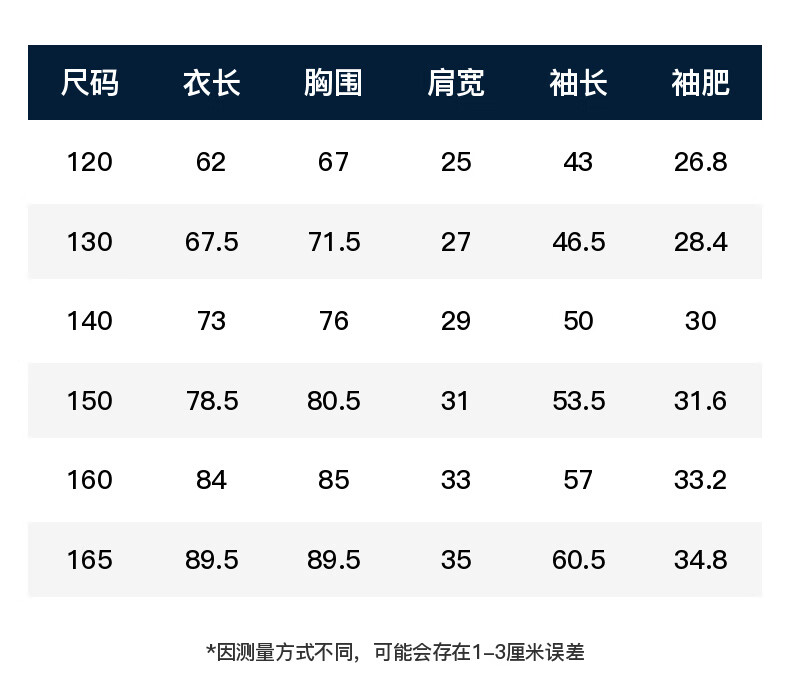 China (cm) 165 / 88-90 170 / 96-98 175 / 108-110 180 / 118-122 185 / 126-130