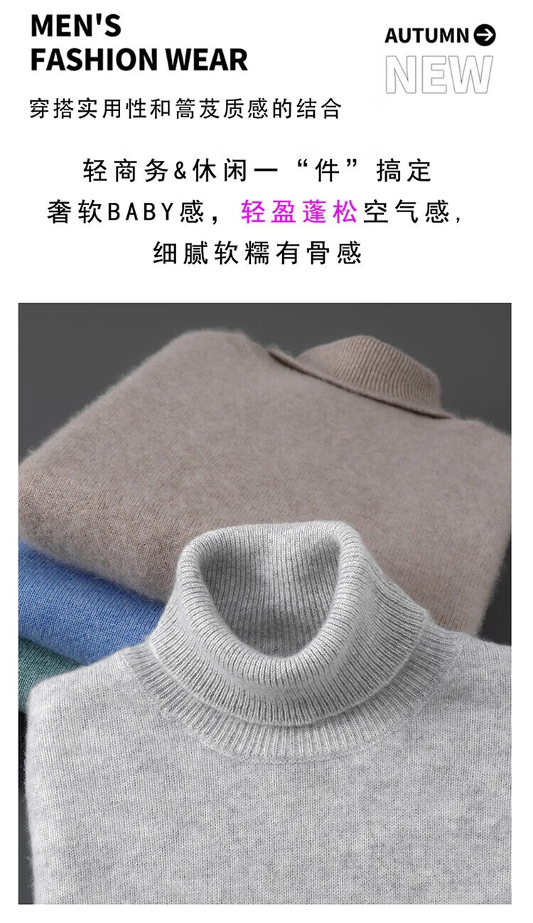 ROMON 2025 Autumn and Winter New Turtleneck Thickened Cardigan Men's Fashionable Warm Pullover Knitted Bottoming Loose Sweater Light Gray L Recommended 140-160Jin Jin equals 0.5 kg