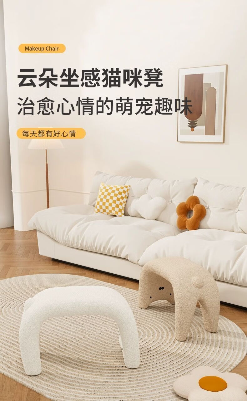 Shitingge high-end quality sofa side stool kitten stool Internet celebrity dressing chair liquid cat makeup stool entrance porch stool Nuojiji white 42cm (upgraded removable and washable)