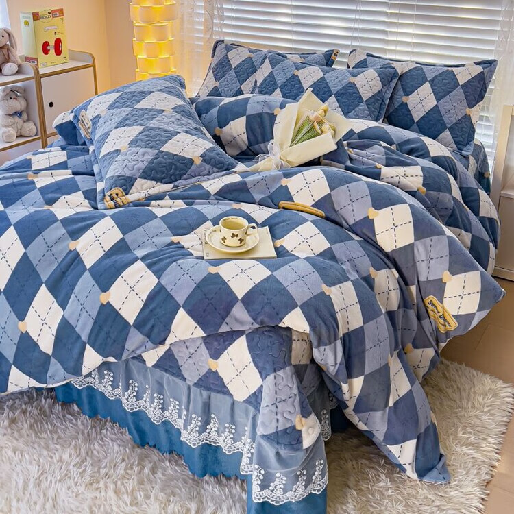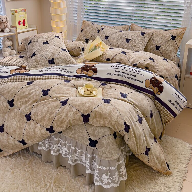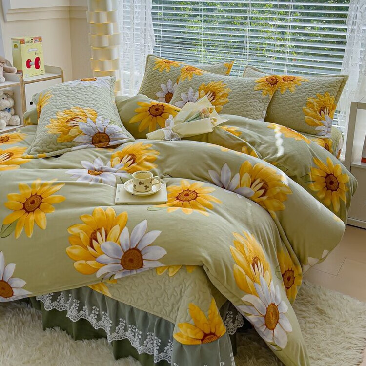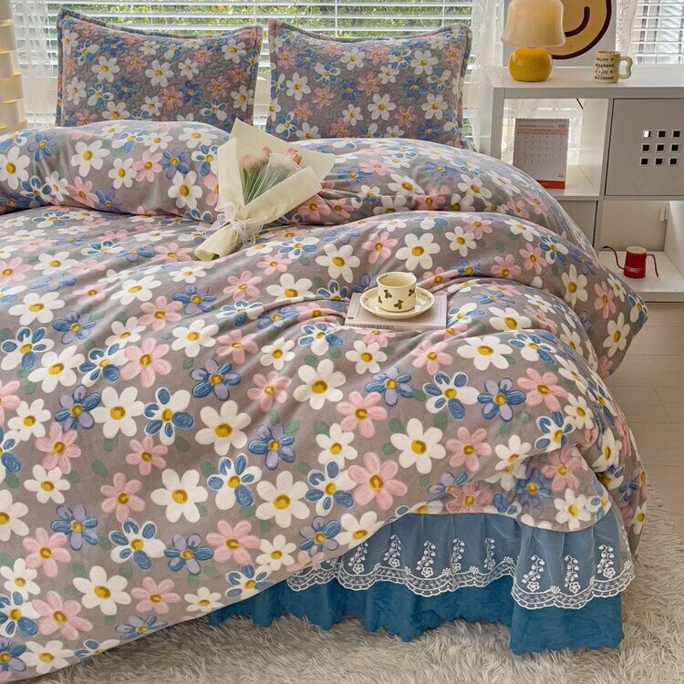 Shantou Lincunji Hilton Icelandic Velvet Milk Velvet Bed Cover Four-piece Set High-end High-end Thickened Winter Double-sided Velvet Quilted Bed Flower Season Story Anti-static Thickened Milk Velvet Single Bed Cover 250*260cm