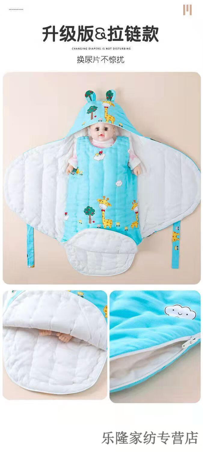 Mingxiang Premium Newborn Pure Cotton Thickened Anti-Kick Butterfly Bag Quilt Sleeping Bag Blue Tiger Treasure Winter Thick S Size (Newborn)