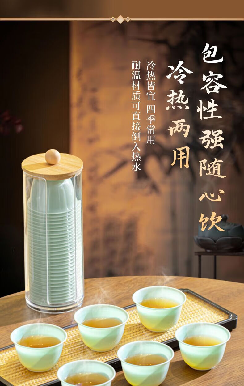Jidaocook high-end imitation jade disposable kung fu tea cup home office reception guest cup thickened and high temperature resistant tea cup jade tea cup 2 packs of 100 thickened and anti-scalding