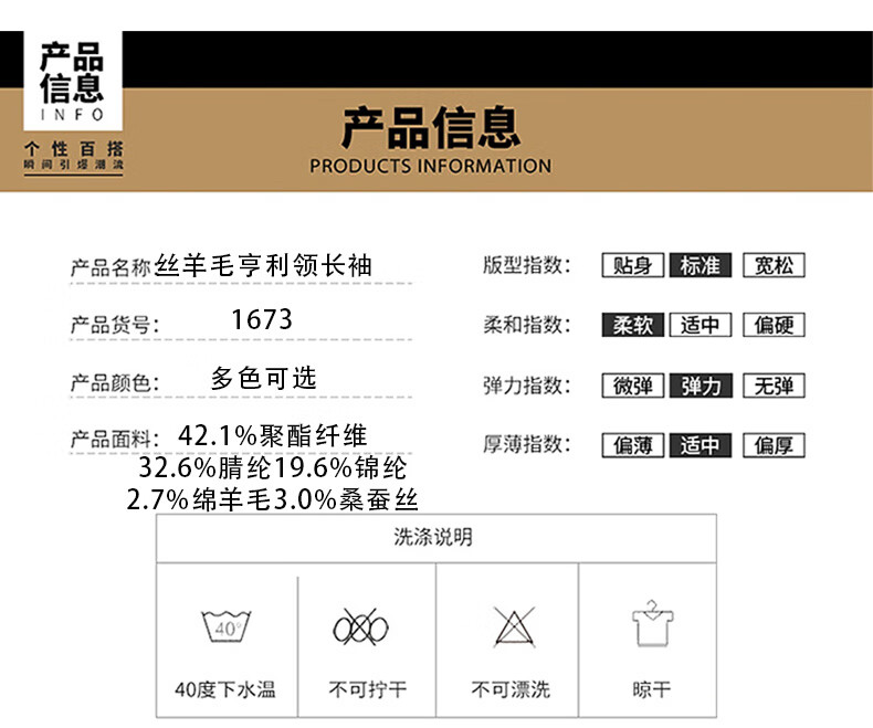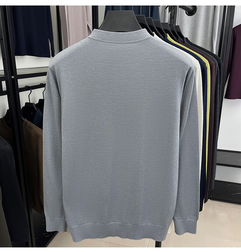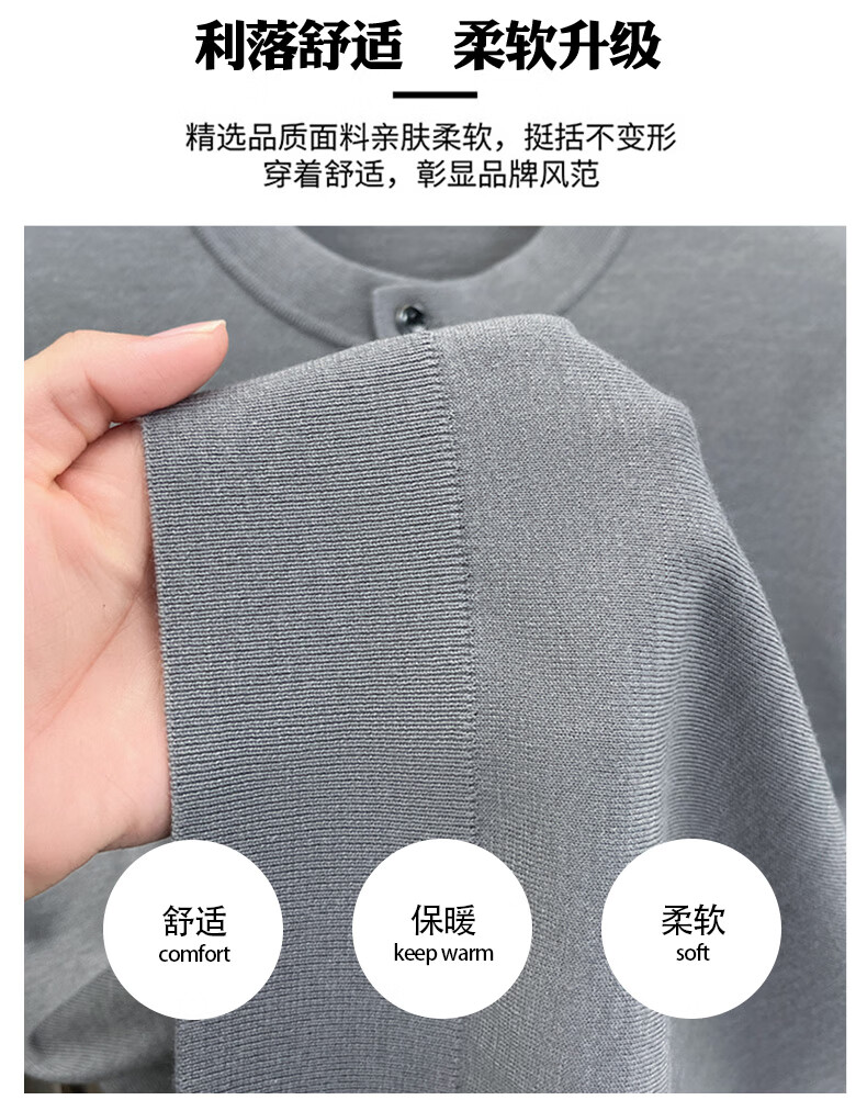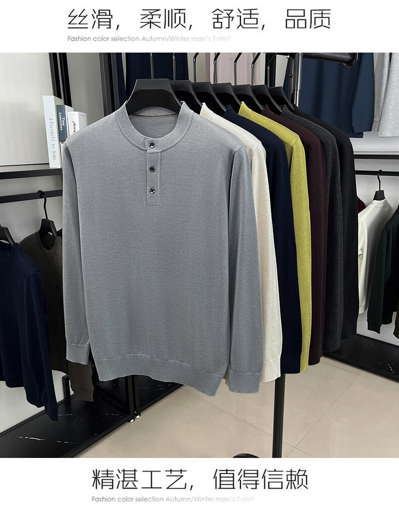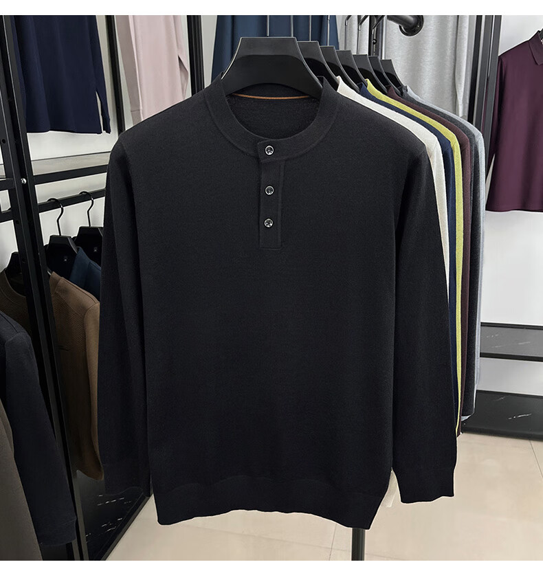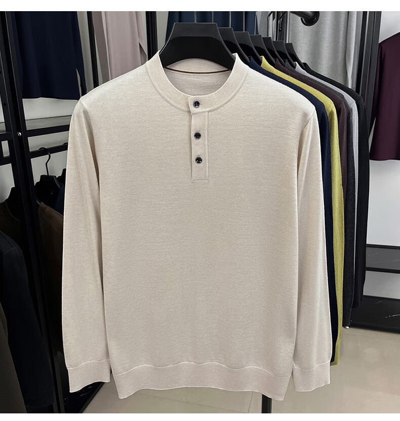 ROMON high-end men's Henry collar button-down sweater with wool long-sleeved bottoming shirt solid color versatile sweater spring and autumn Pearl Apricot M