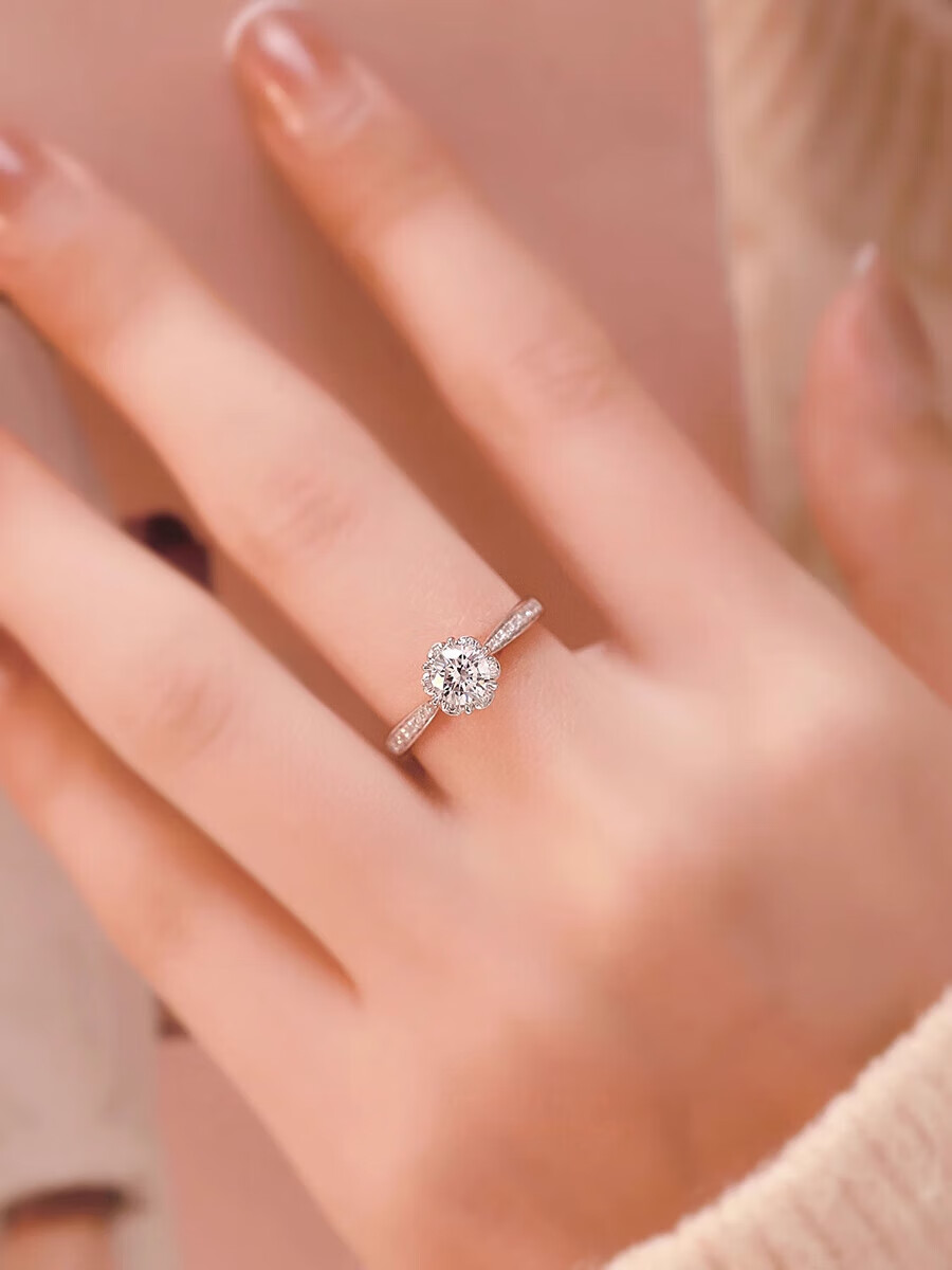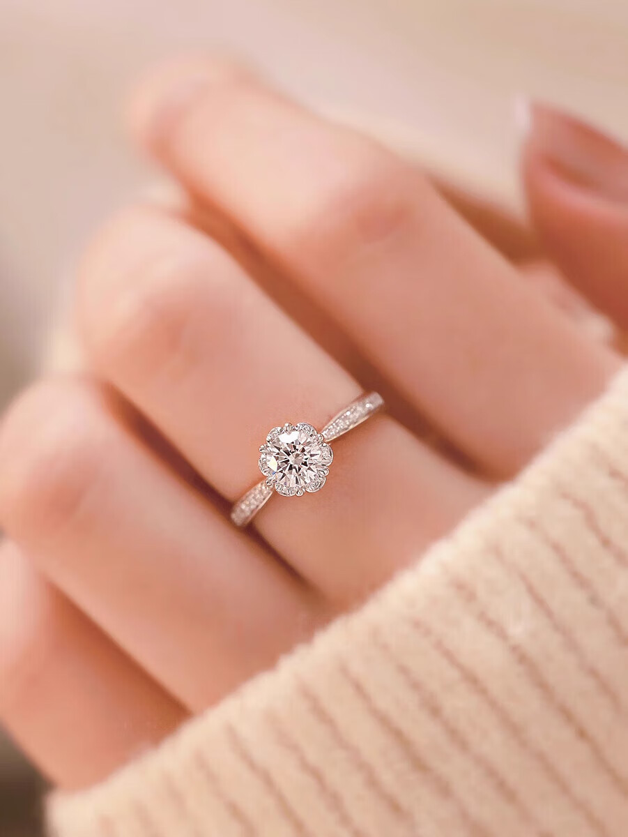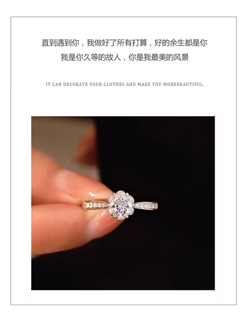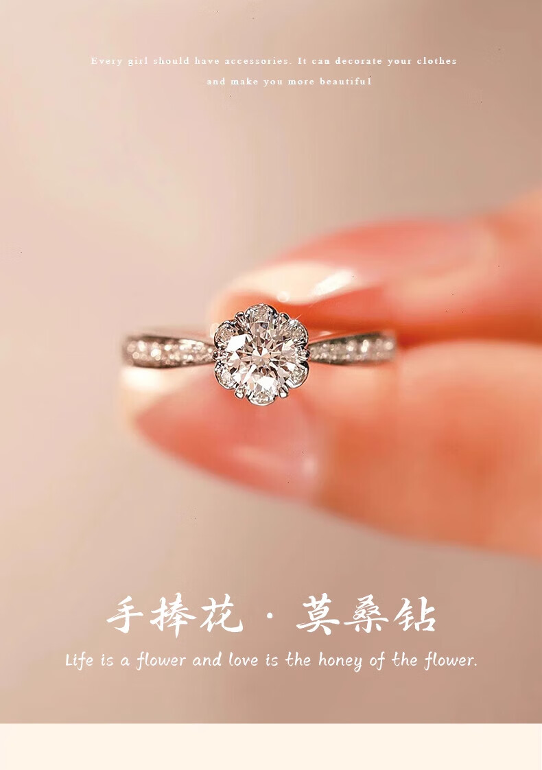 MZMZ platinum ring for women pt950 platinum engagement fashion diamond ring Valentine's Day birthday gift for girlfriend and wife when/next day delivery - light luxury hand-held flower live mouth diamond ring - 60 points