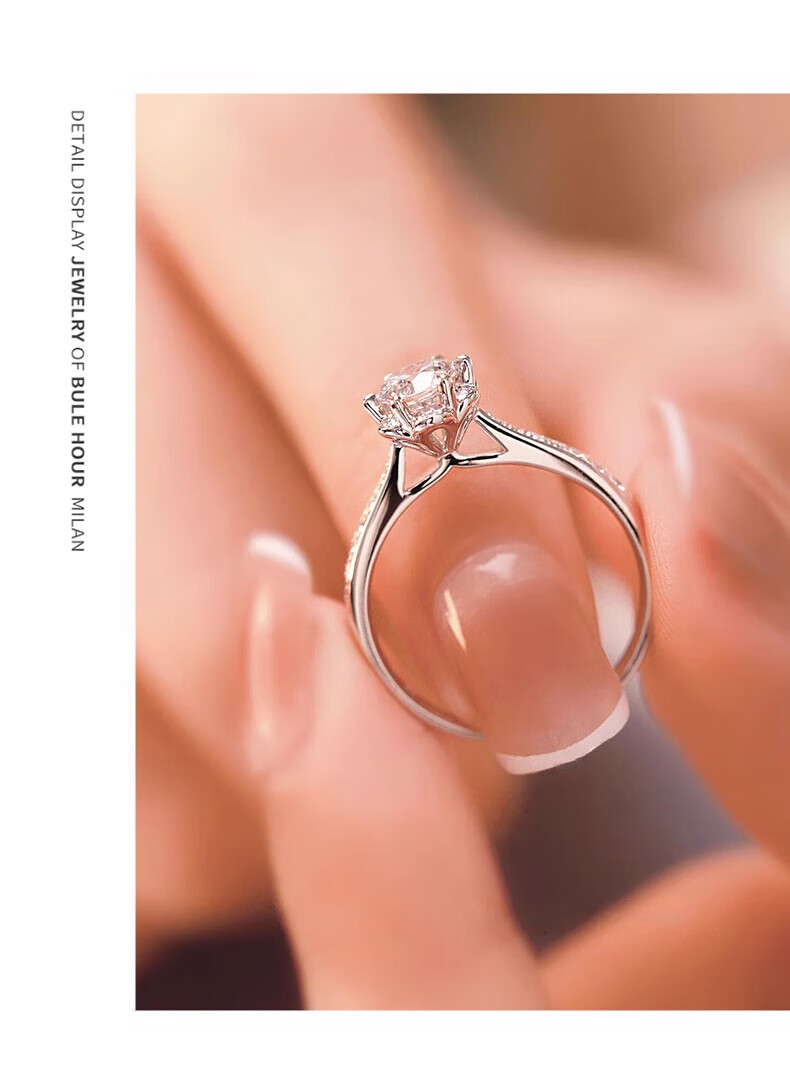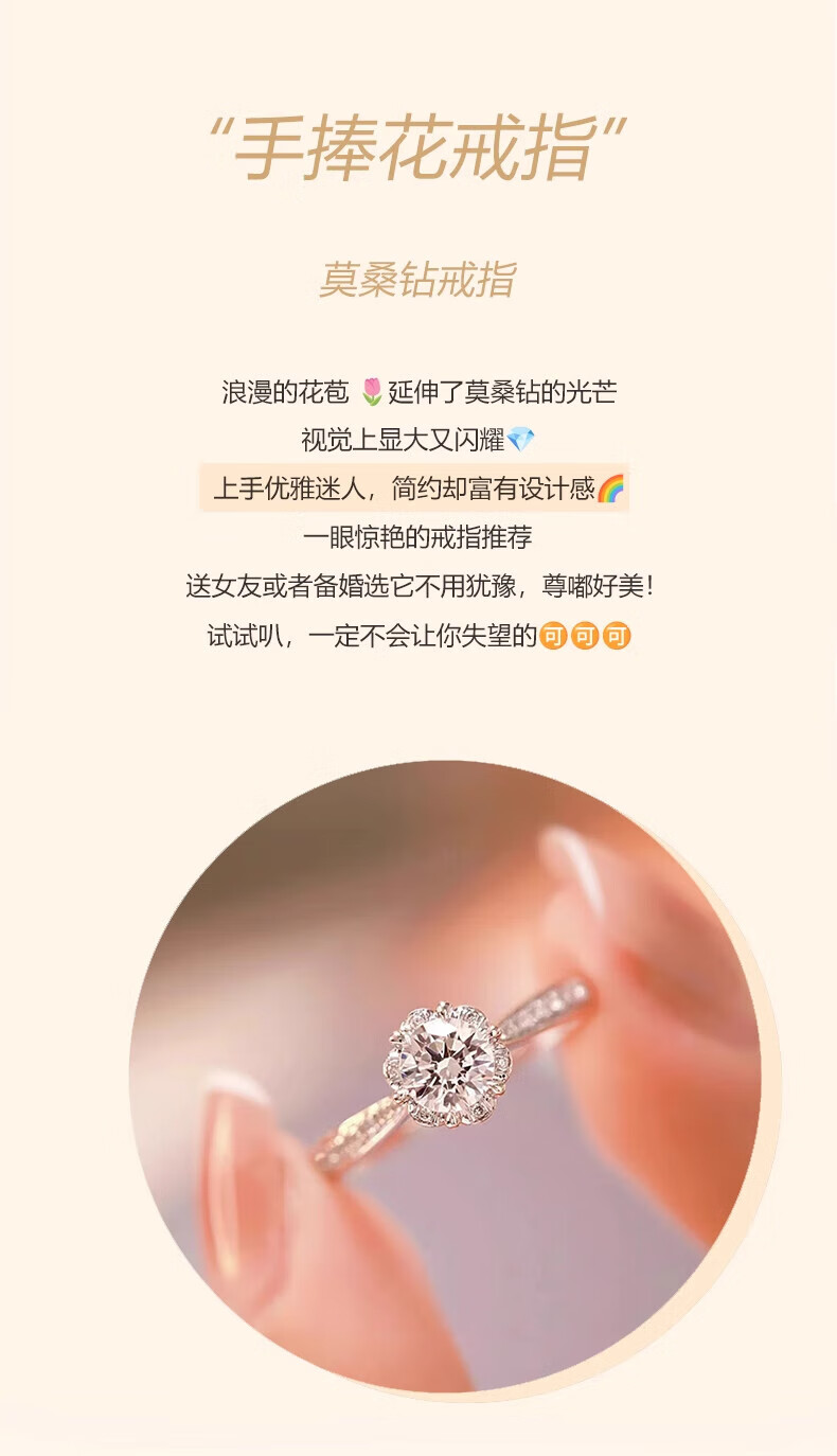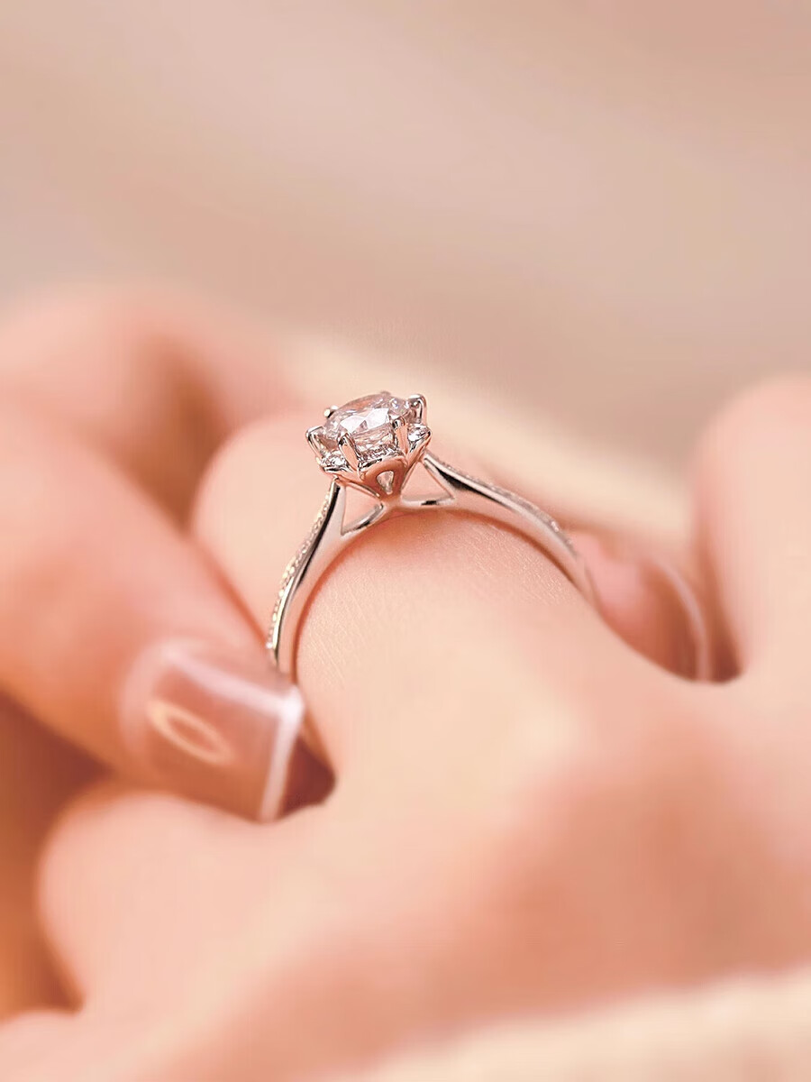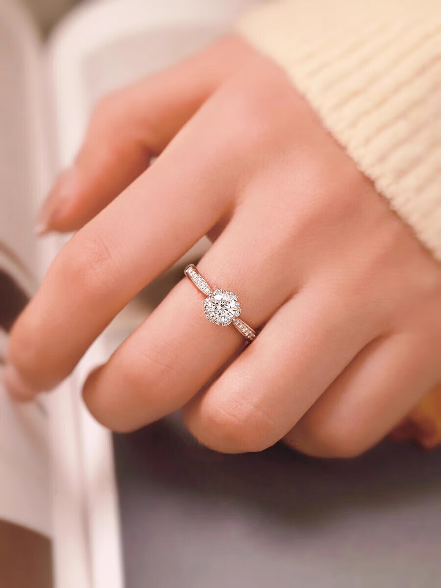 MZMZ platinum ring for women pt950 platinum engagement fashion diamond ring Valentine's Day birthday gift for girlfriend and wife when/next day delivery - light luxury hand-held flower live mouth diamond ring - 60 points