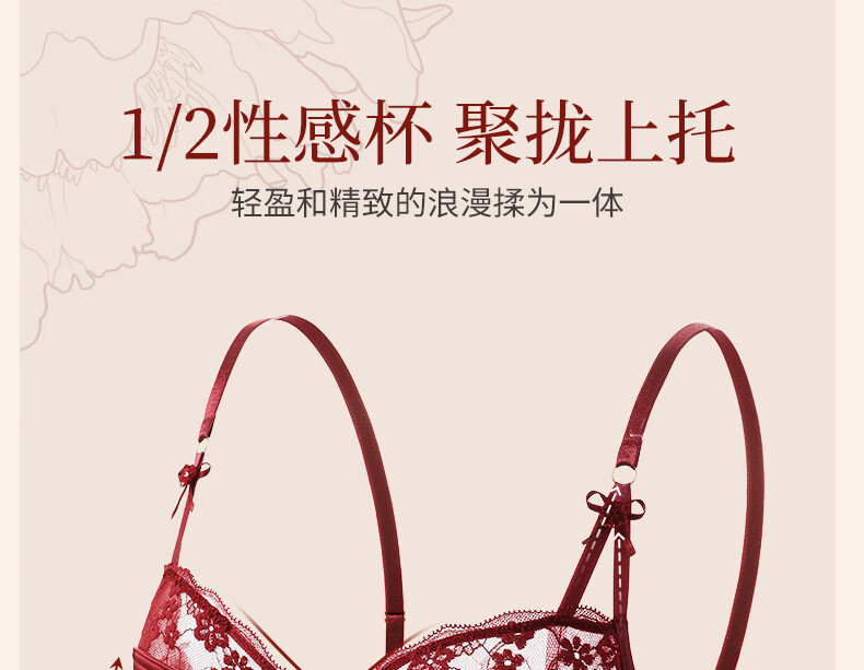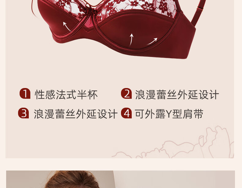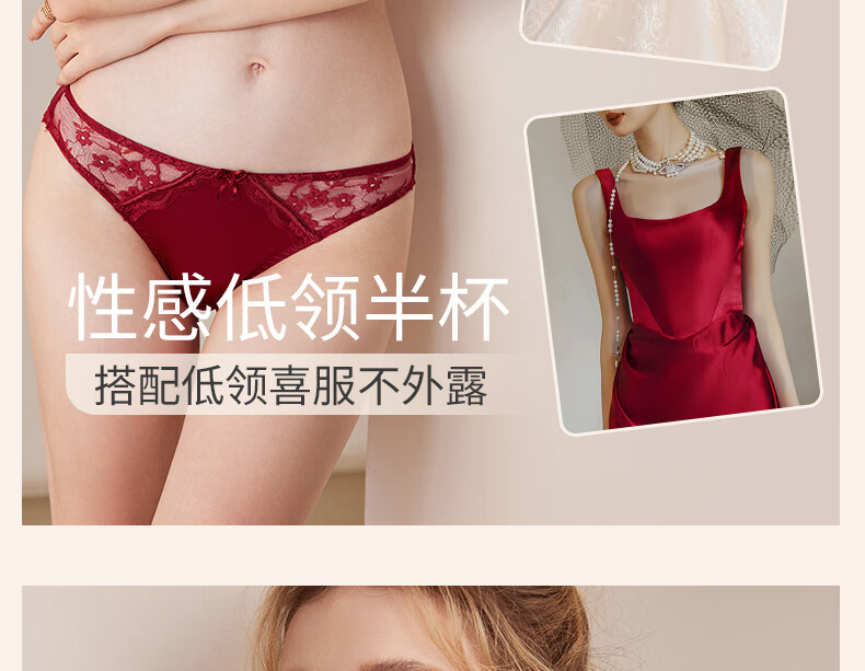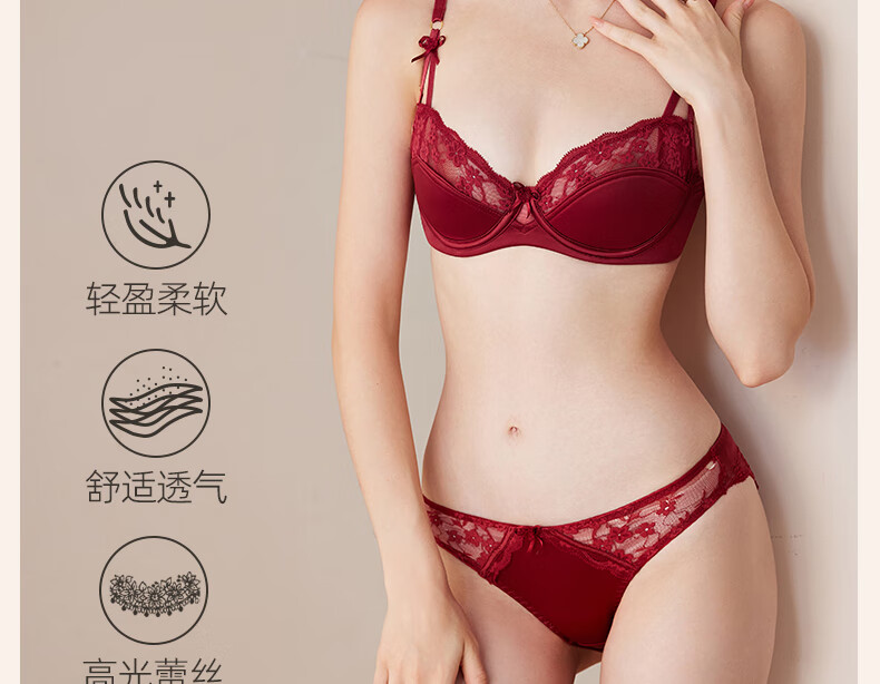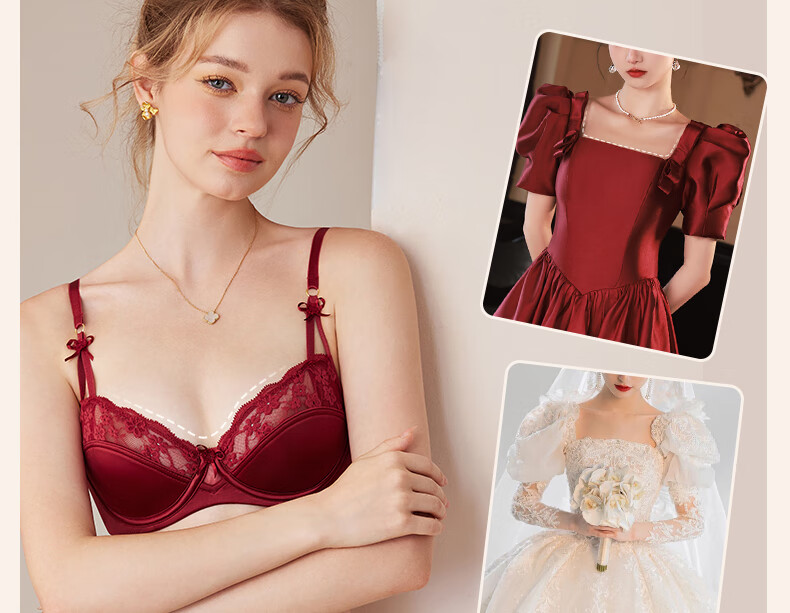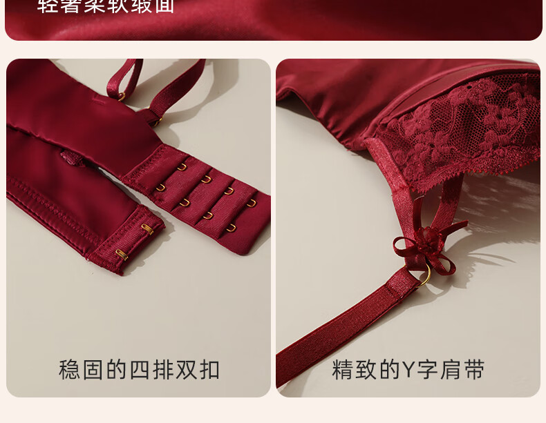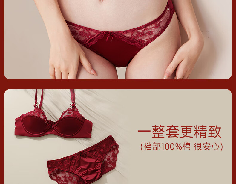 MAGIOPY light luxury high-end red underwear for women in their natal year, lace sexy big breasts and small bra set for wedding bride, burgundy suit, Yueji gives her 70B