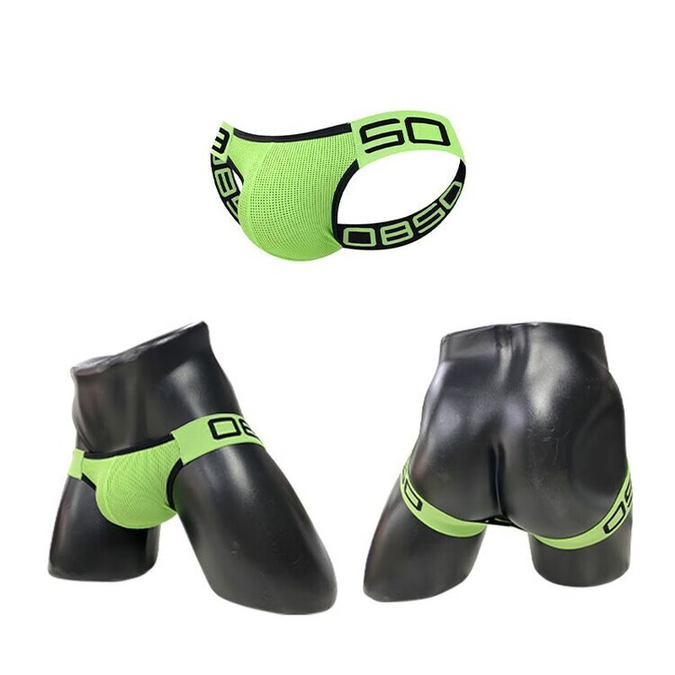 Shantou Lincun beltless thong pure desire men's double thong underwear sexy butt lifting mesh hole breathable design green 1 piece M