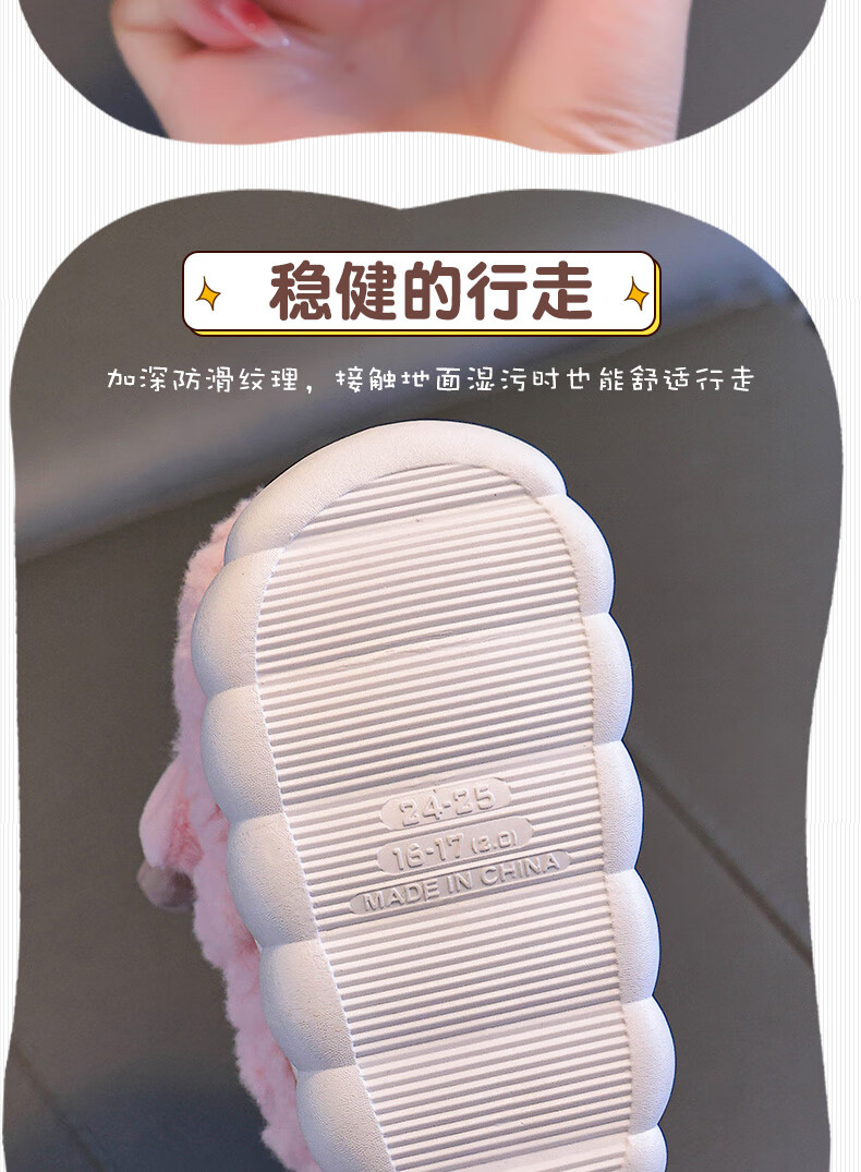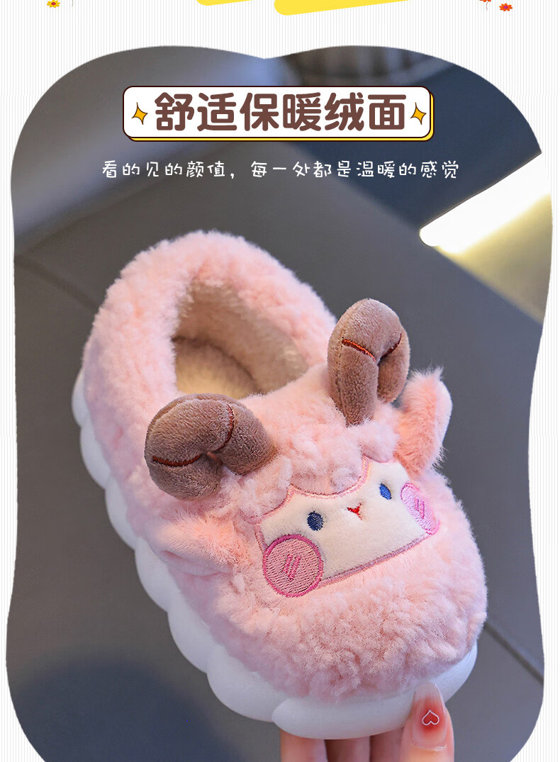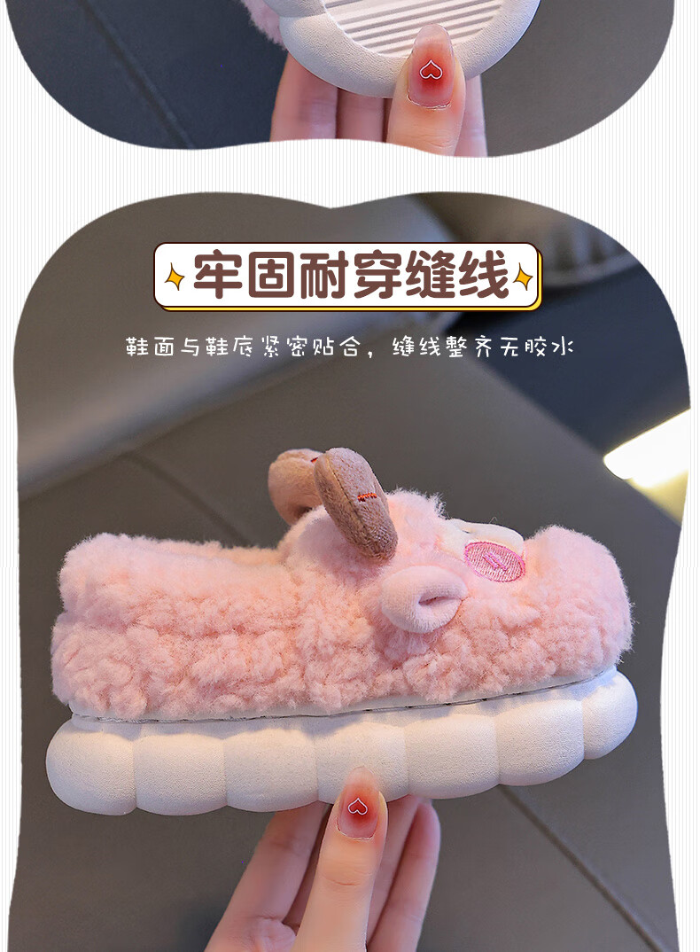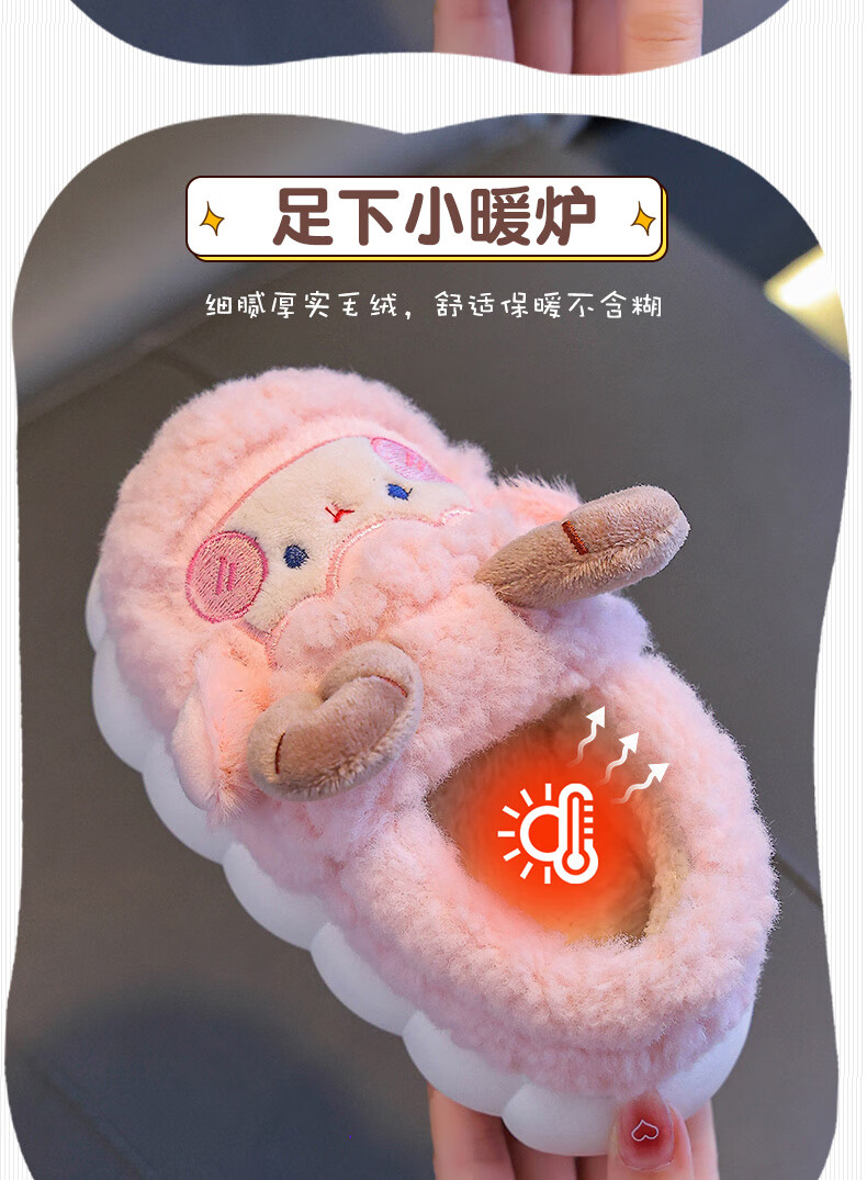 Bangboshi heel cotton slippers for girls and boys in autumn and winter cute cartoon indoor home plush warm cotton slippers pink (heel included) 30/31 size (inner length 18CM suitable for feet 17CM)