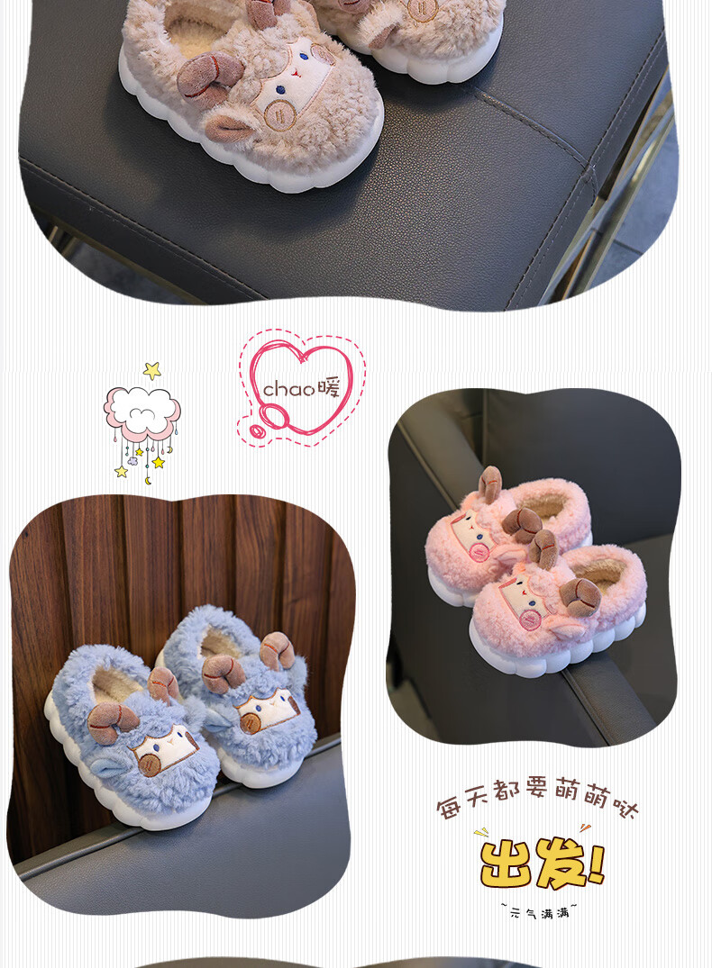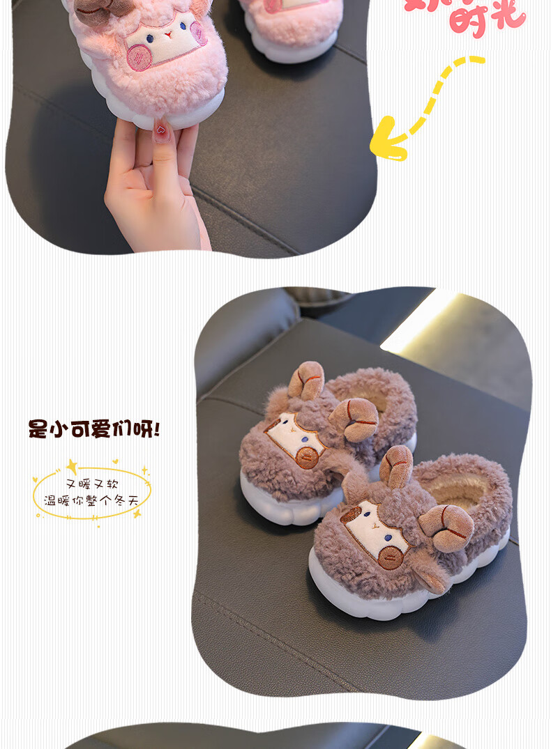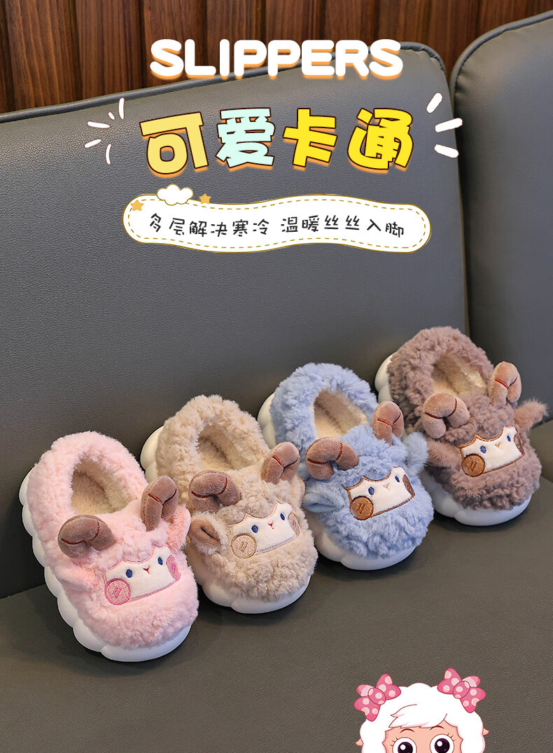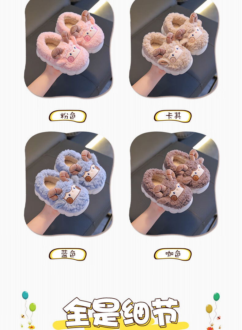 Bangboshi heel cotton slippers for girls and boys in autumn and winter cute cartoon indoor home plush warm cotton slippers pink (heel included) 30/31 size (inner length 18CM suitable for feet 17CM)