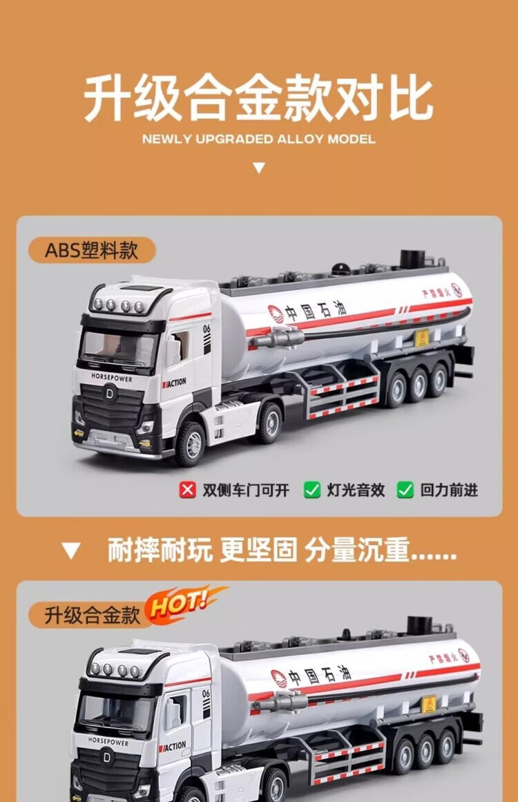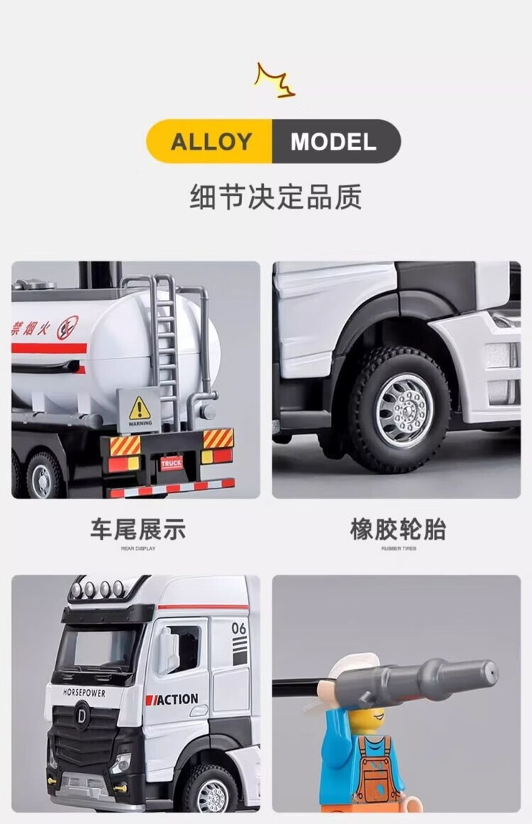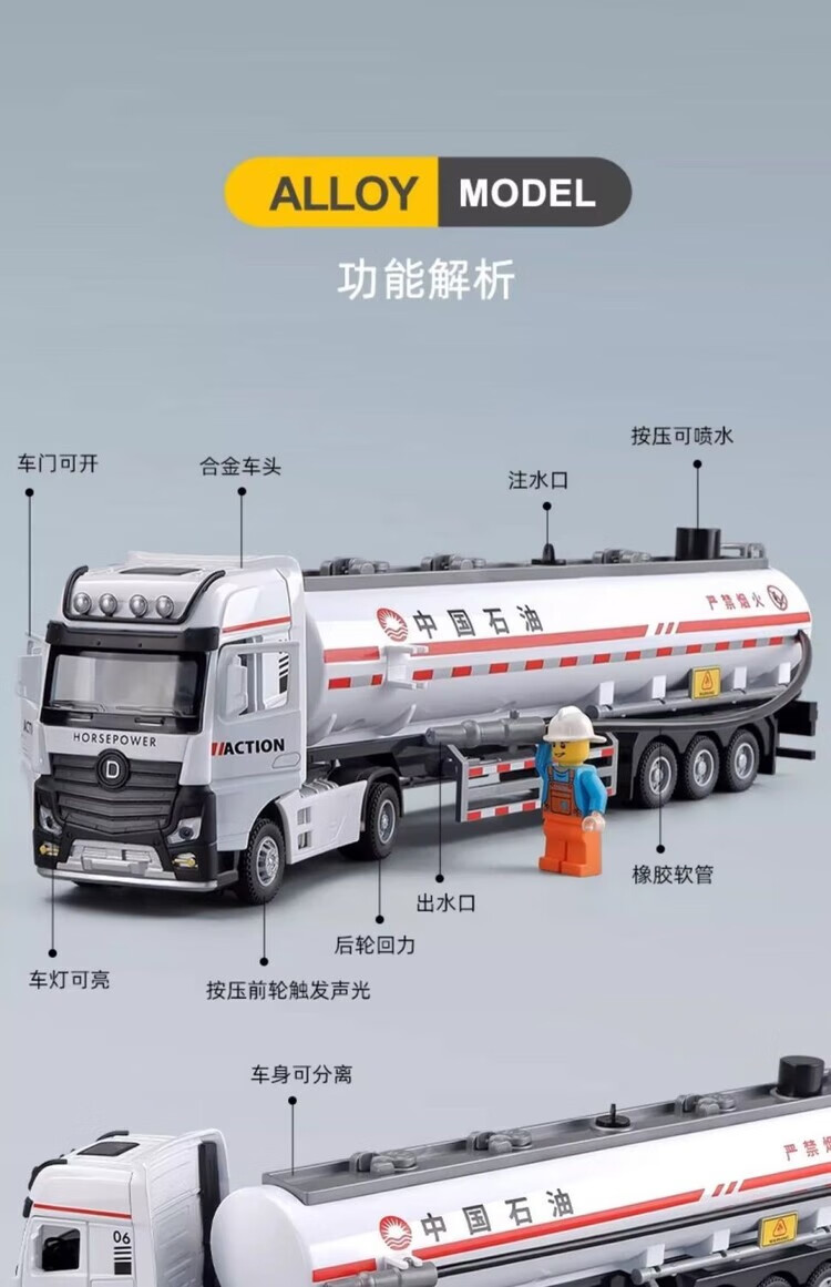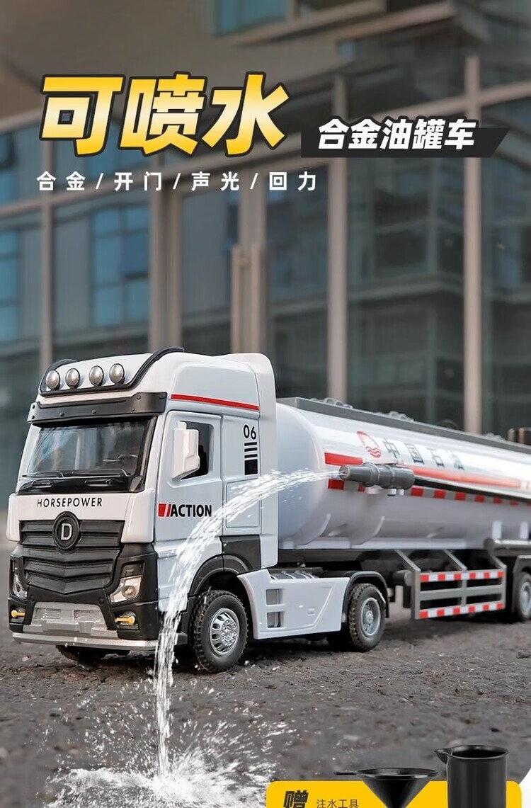 Remote control car burning oil children's large transport oil tanker toy boy model toy car 2-3-6 years old large plastic model-white extended version of the oil tanker exquisite simulation-inertial driving-body detachable
