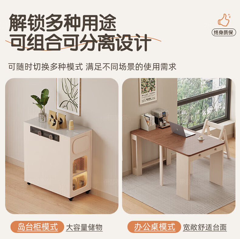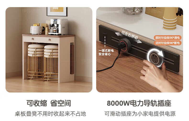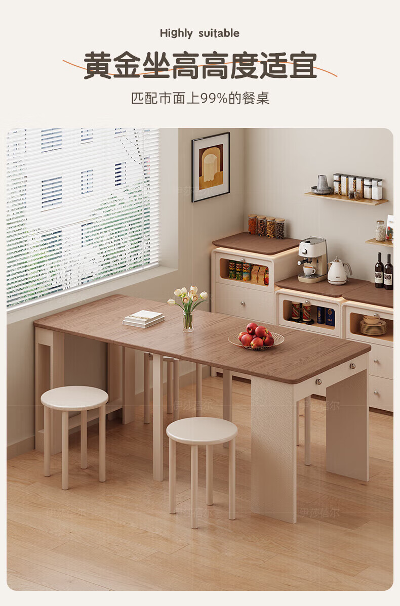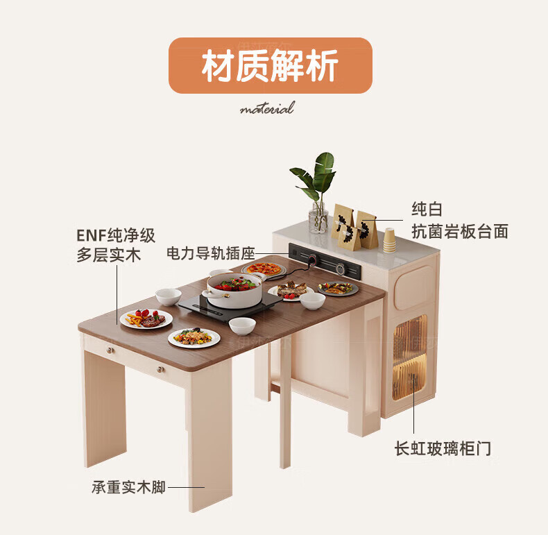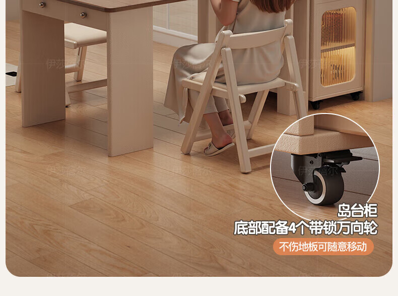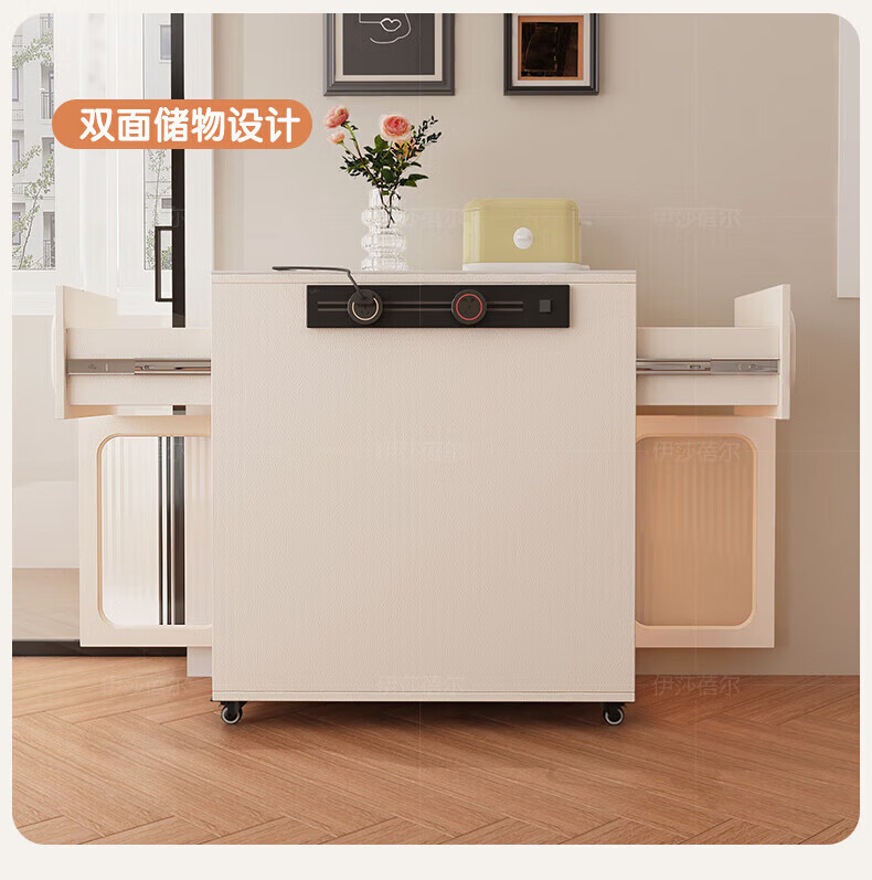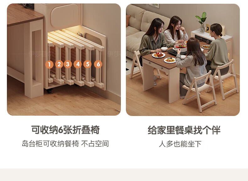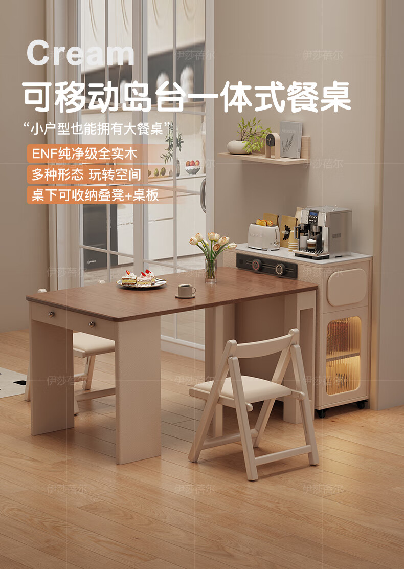 Isabel movable island integrated dining table small apartment home simple restaurant retractable storage with socket folding dining table one table and two chairs丨1.8cm thick solid wood countertop ENF pure grade solid wood-nearly 0 formaldehyde