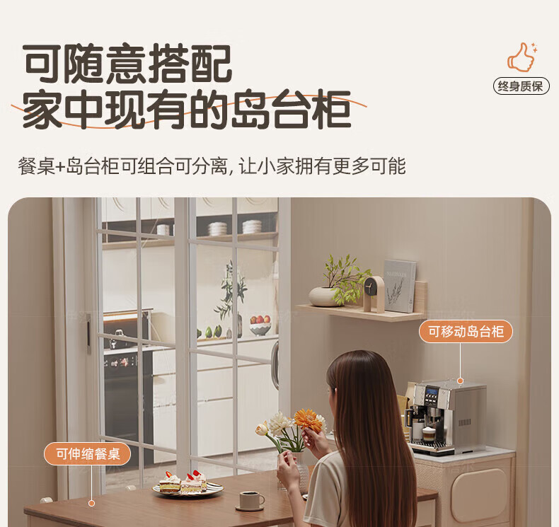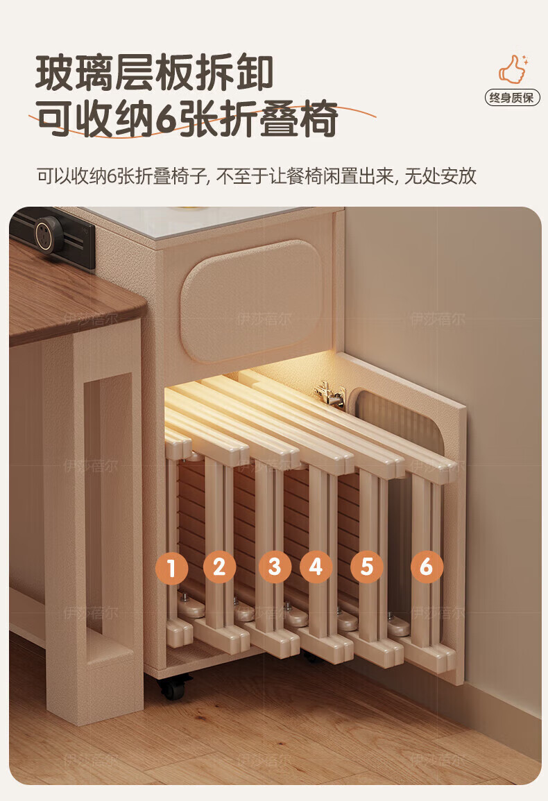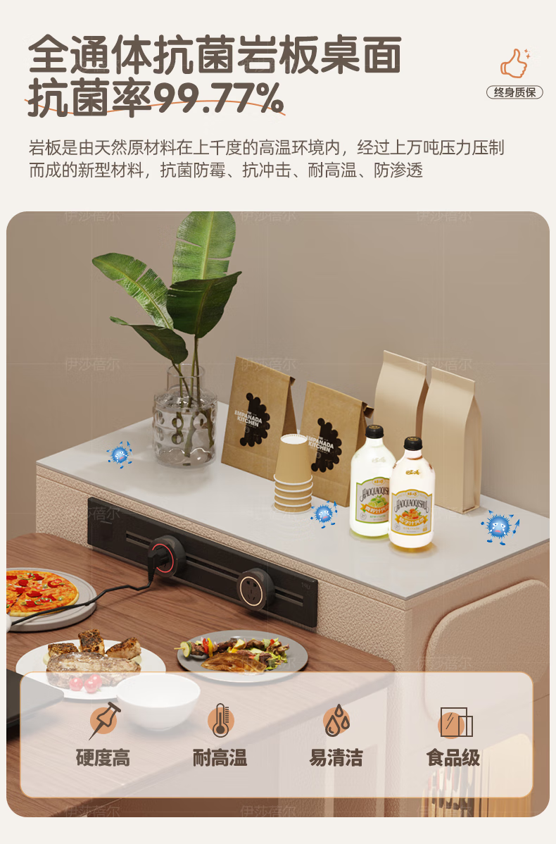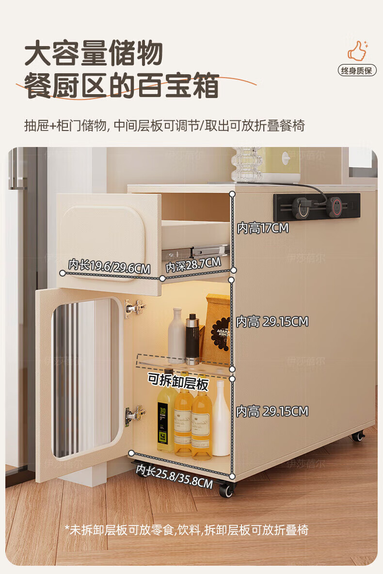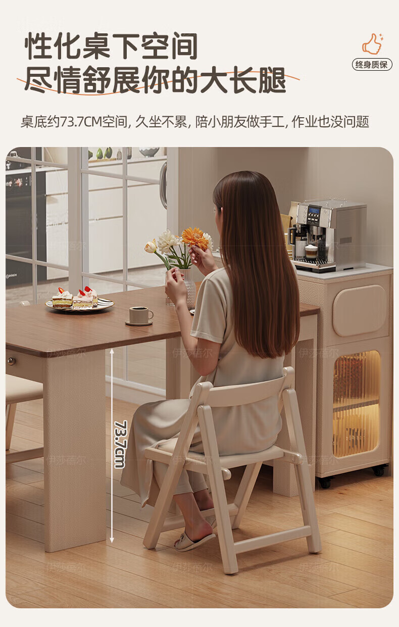 Isabel movable island integrated dining table small apartment home simple restaurant retractable storage with socket folding dining table one table and two chairs丨1.8cm thick solid wood countertop ENF pure grade solid wood-nearly 0 formaldehyde