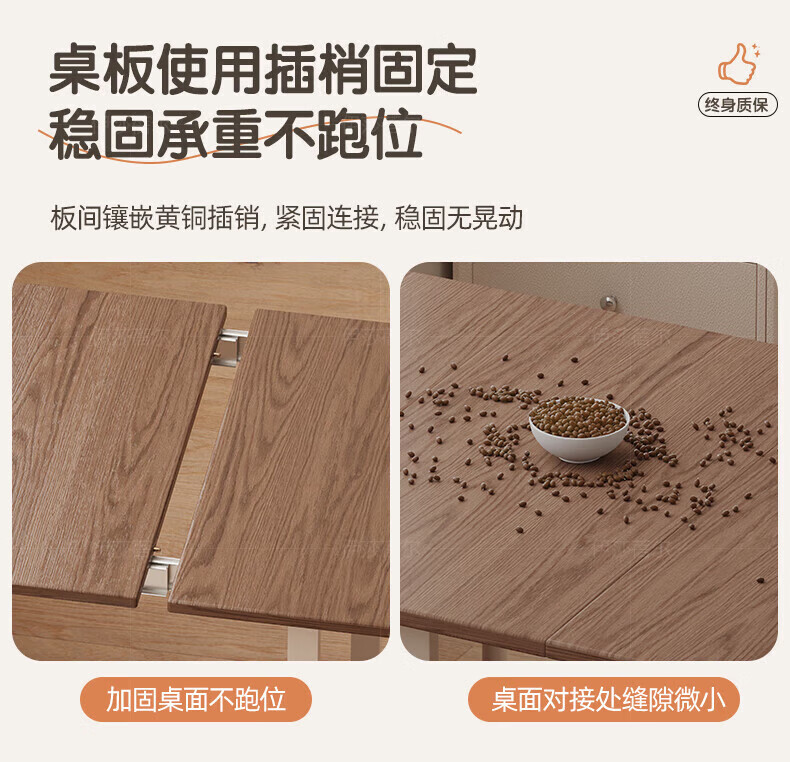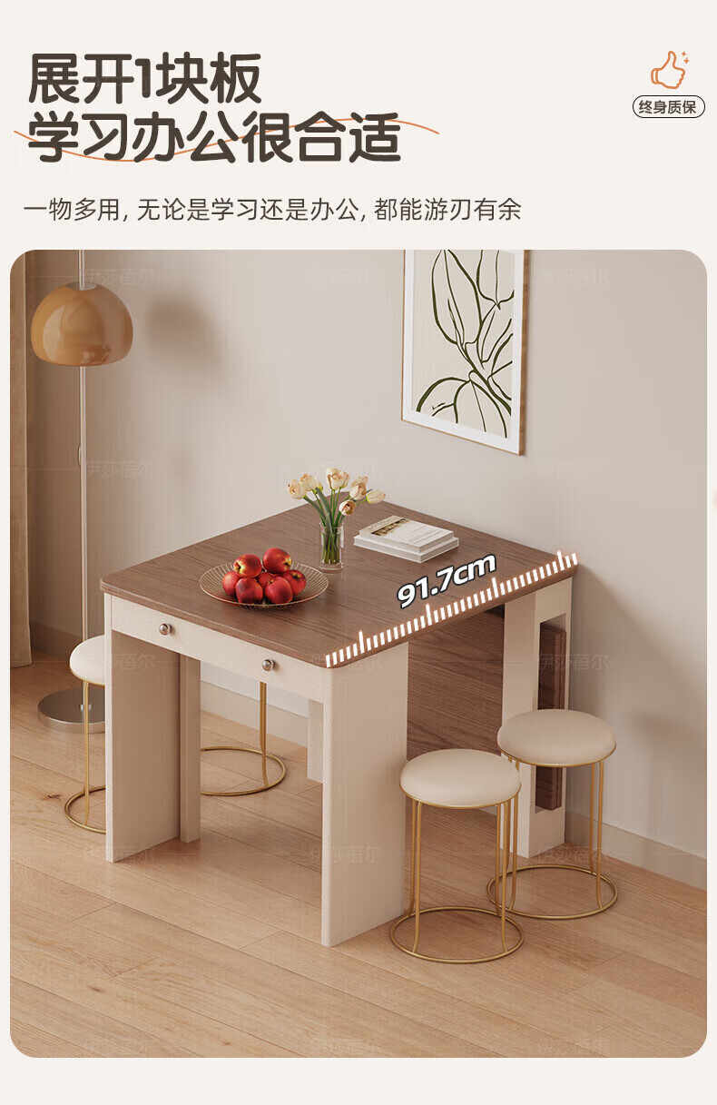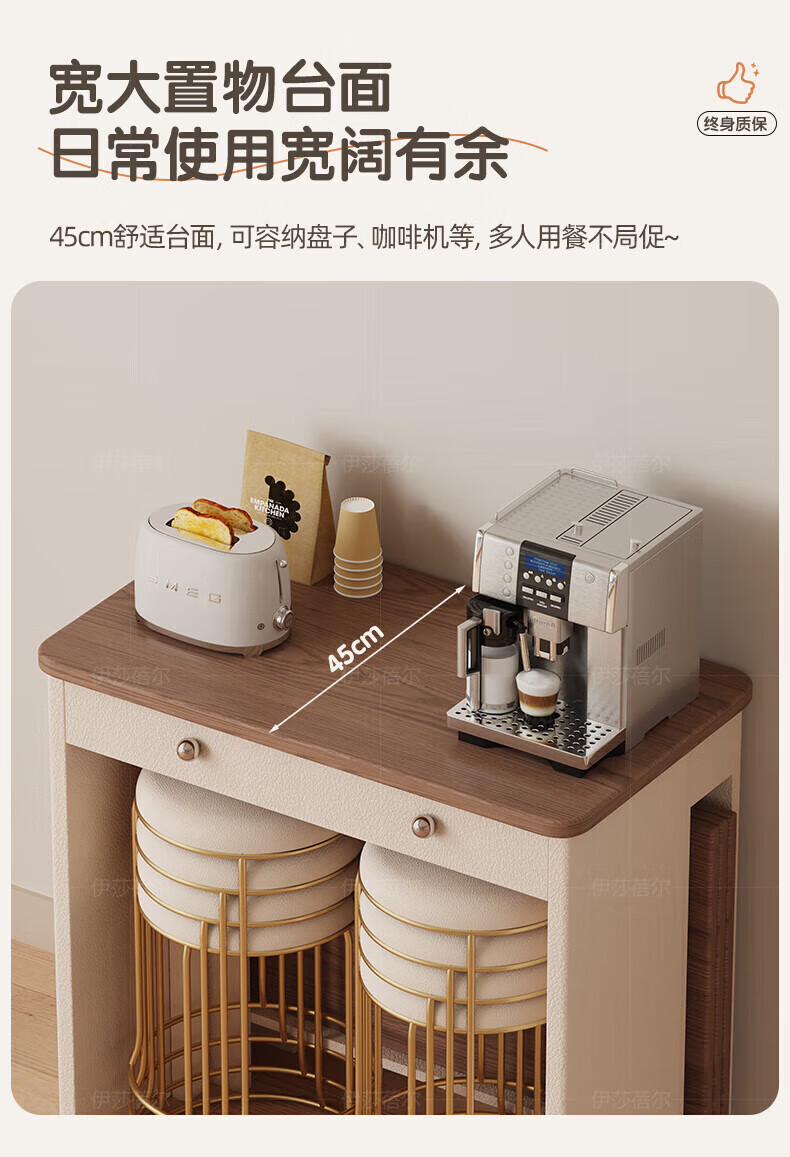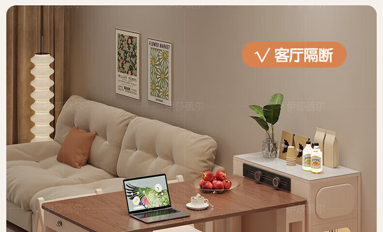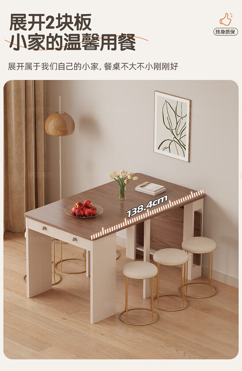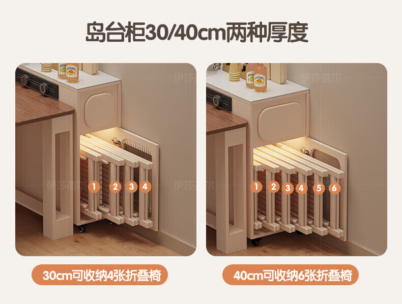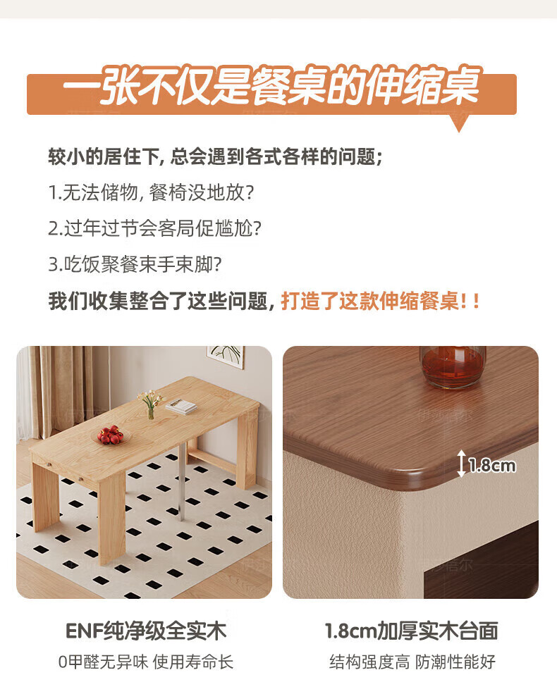 Isabel movable island integrated dining table small apartment home simple restaurant retractable storage with socket folding dining table one table and two chairs丨1.8cm thick solid wood countertop ENF pure grade solid wood-nearly 0 formaldehyde