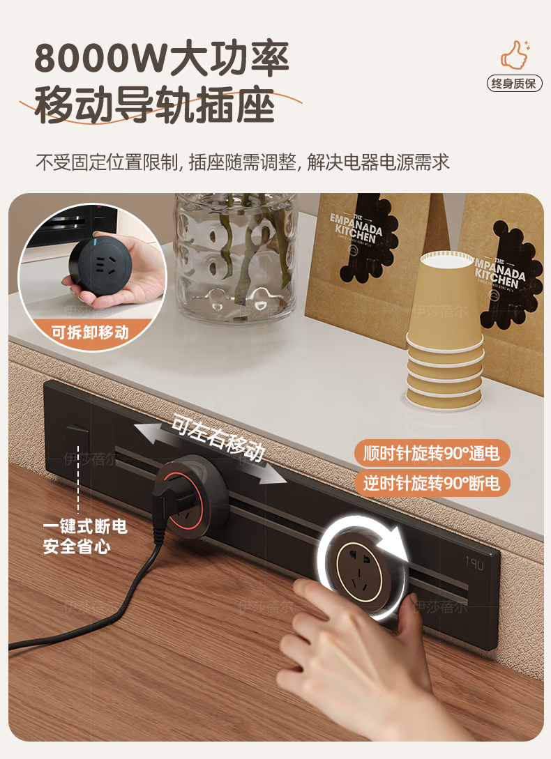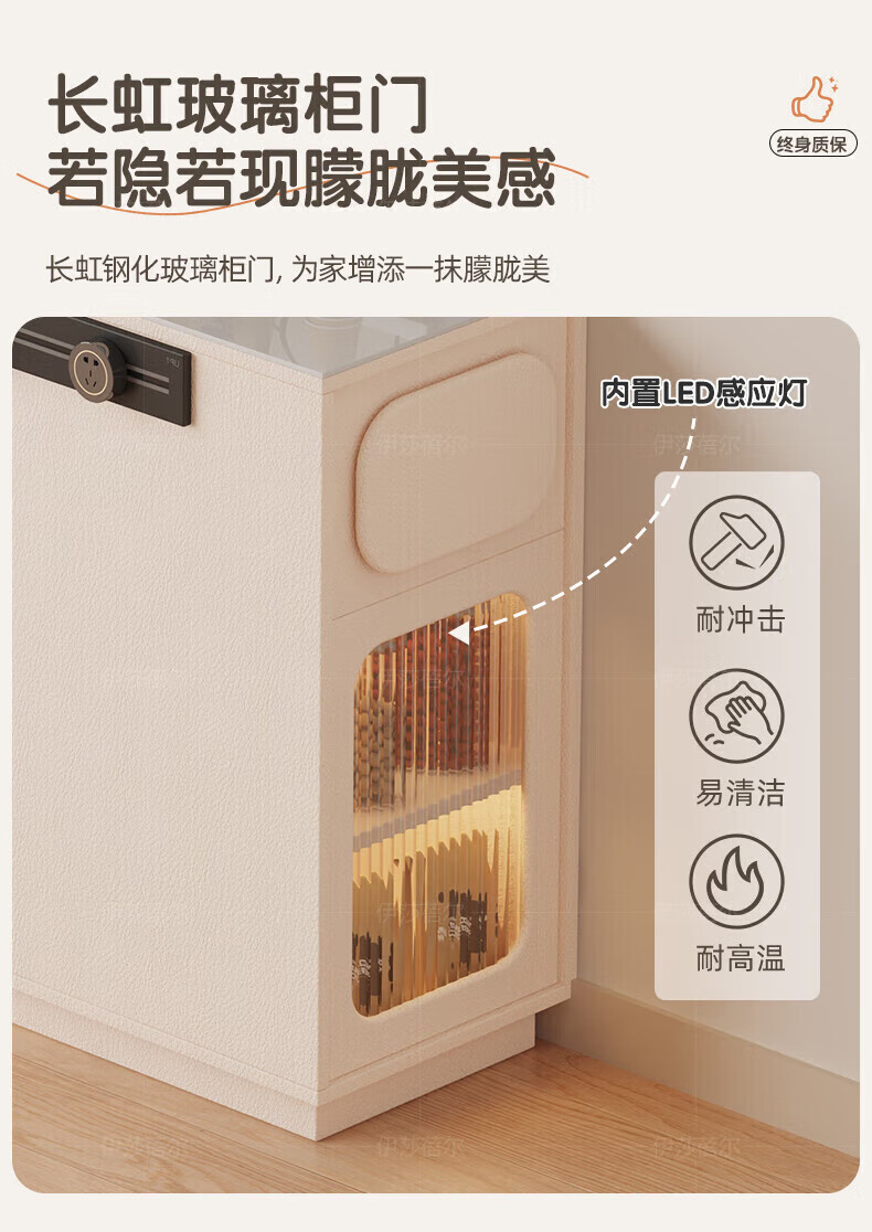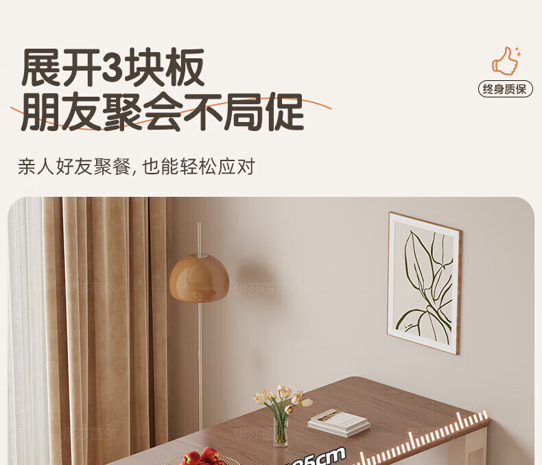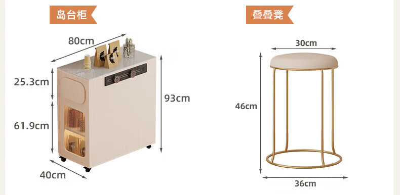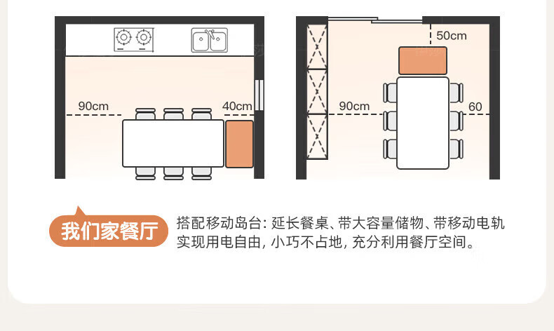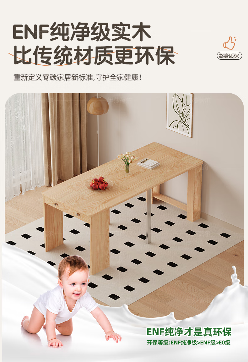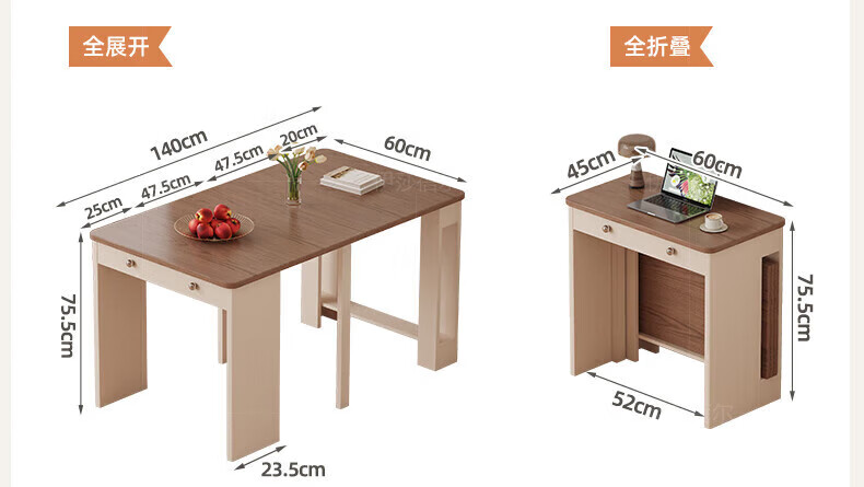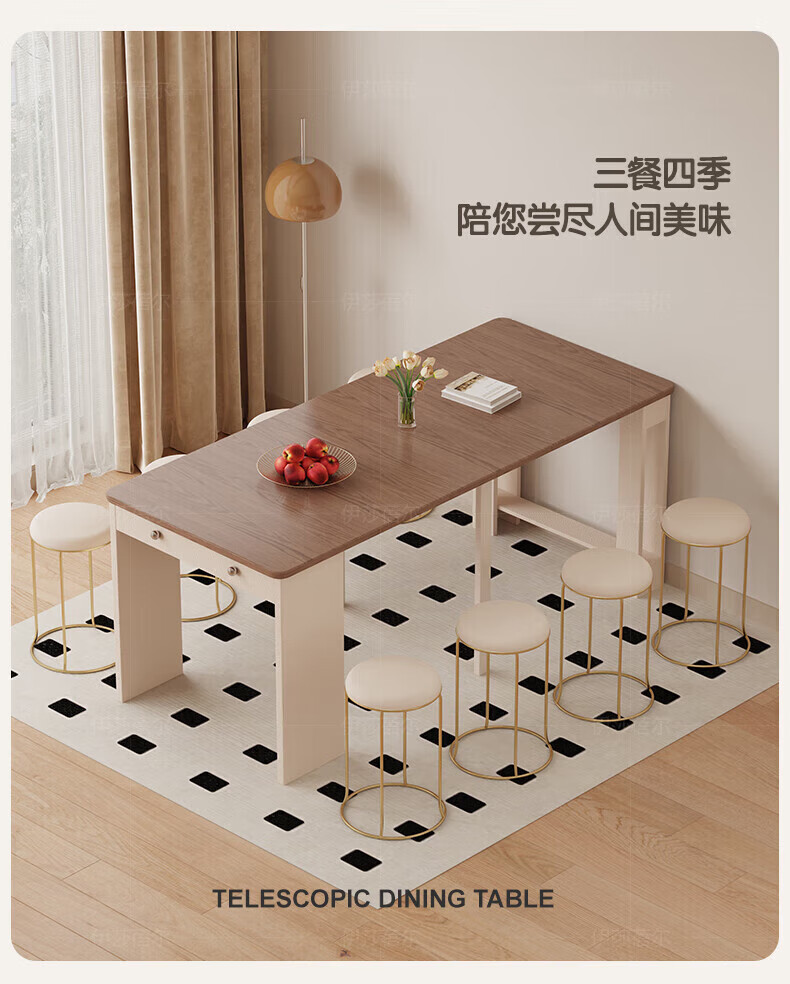 Isabel movable island integrated dining table small apartment home simple restaurant retractable storage with socket folding dining table one table and two chairs丨1.8cm thick solid wood countertop ENF pure grade solid wood-nearly 0 formaldehyde