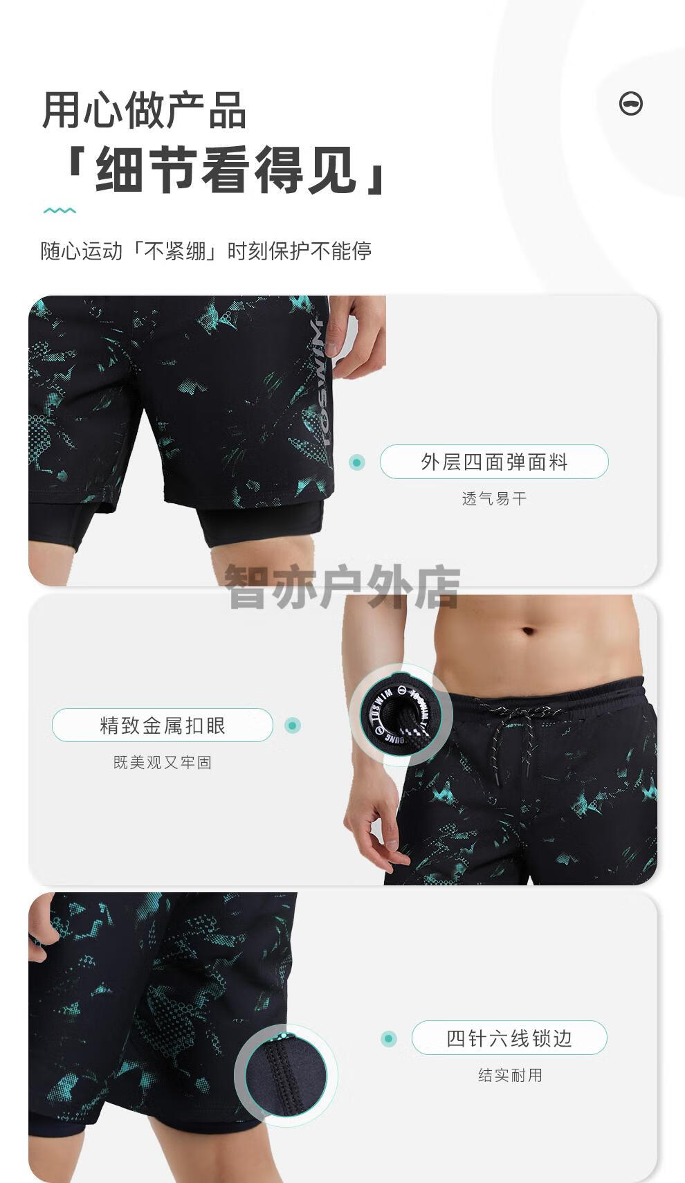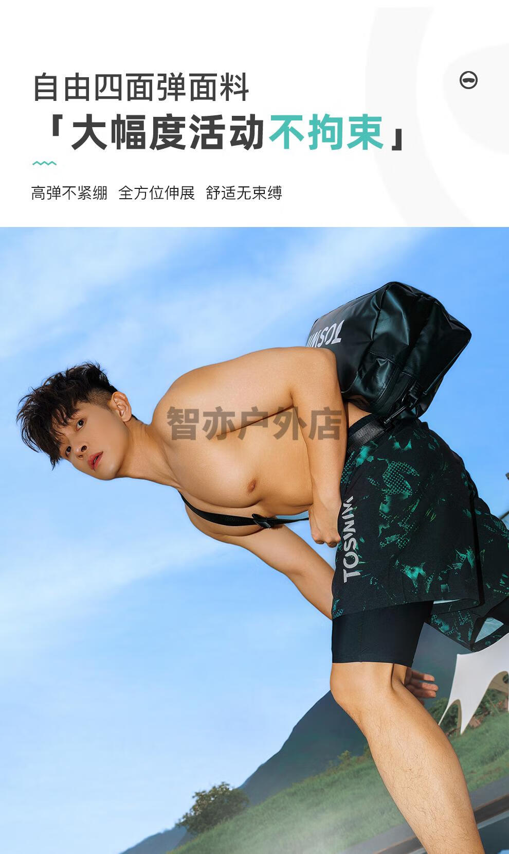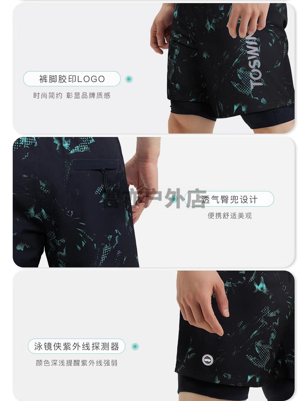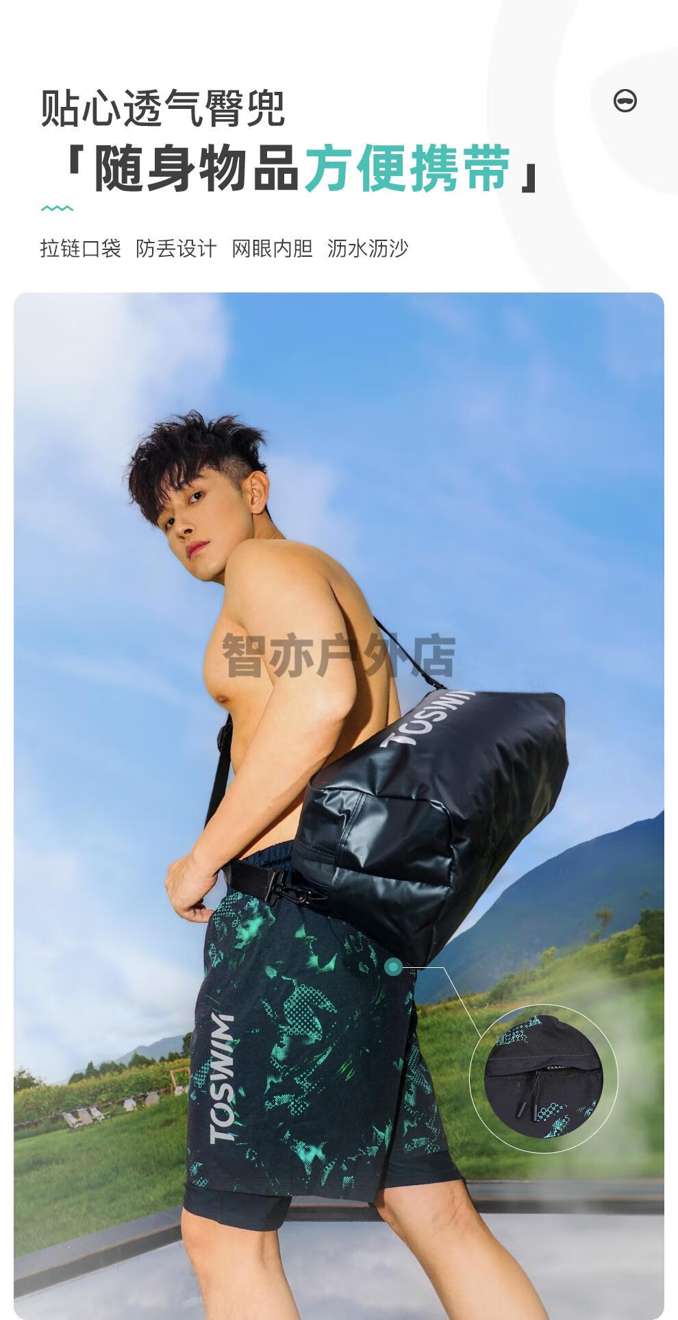 TOSWIM Beach Swimming Pants Men's Double-Layered Beach Pants Can Be Entered into the Water, Loose, Anti-Embarrassing, Quick-Drying Surfing Swimming Pants Set, Ten-piece Men's Suit + Swimming Goggles + Swimming Cap + Bath Towel + Bag + Earplugs + Nose Clip + Washing Care + M