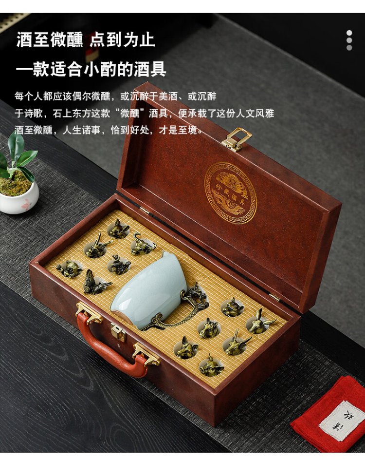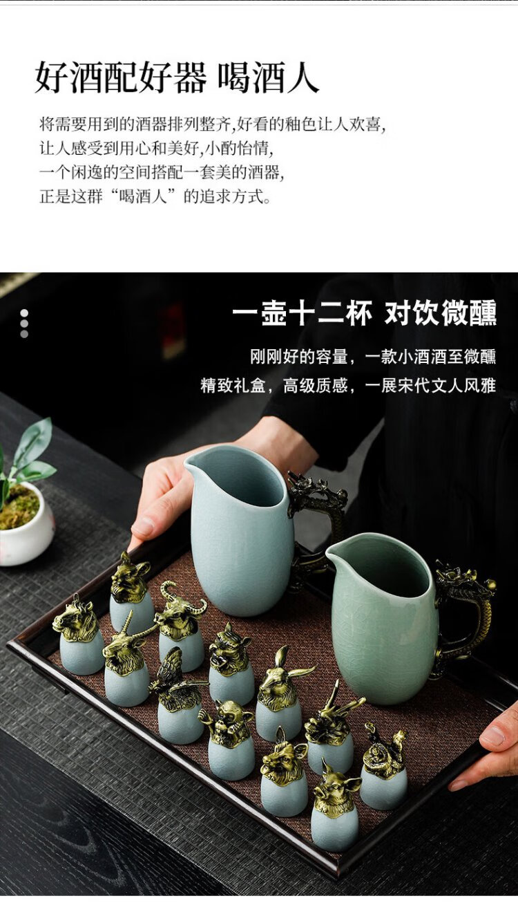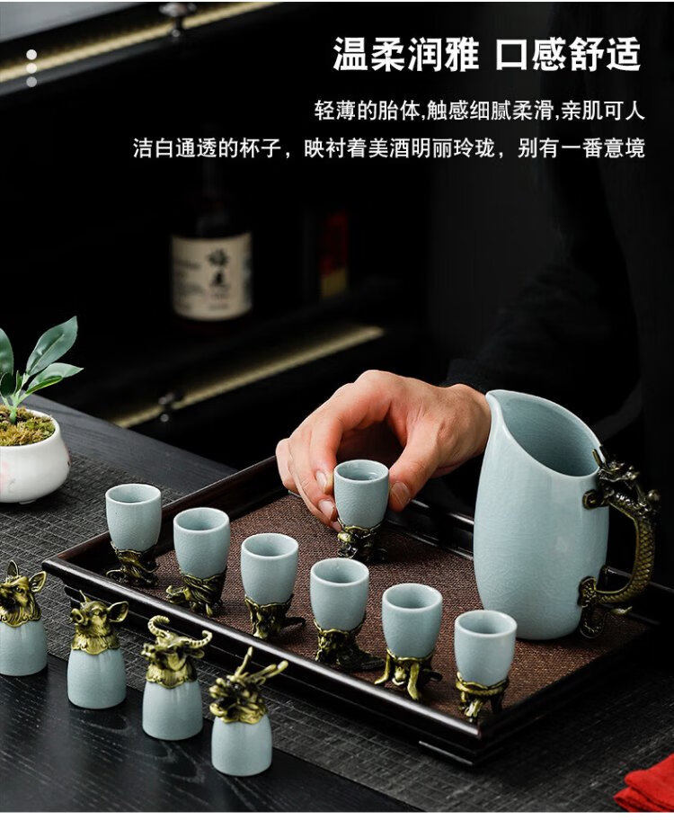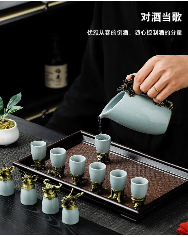 Shimmer Li Bai Wine Glass Set High-end Chinese Ceramic Wine Set Twelve Zodiac Wine Dividers Wine Glasses and Wine Sets Geyao 12 Zodiac Wine Sets/Tianqing