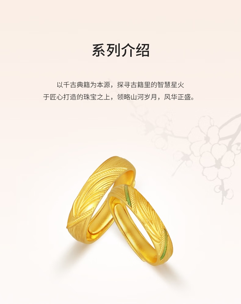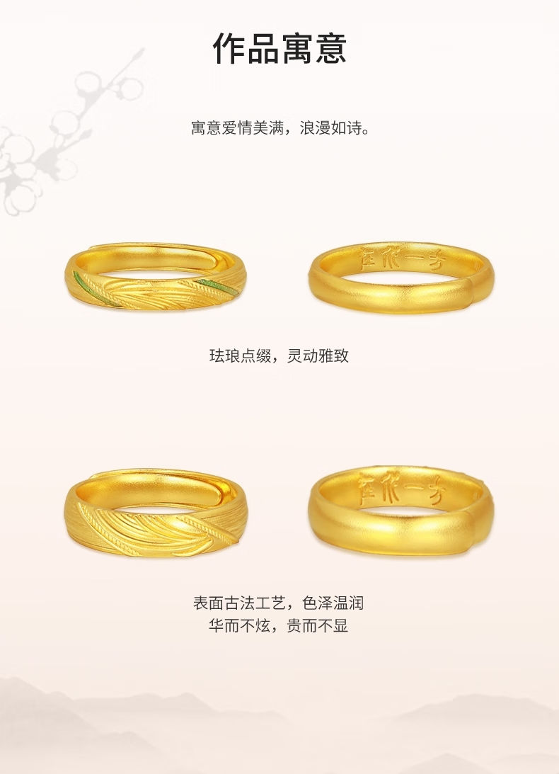 Chow Tai Sang Classic Collection Feng Hua Series Ancient Gold Ring Jian Jia Gold Couple Ring Wedding Gift In the Water Pair Ring Men's Labor Cost 70 Yuan 8.17