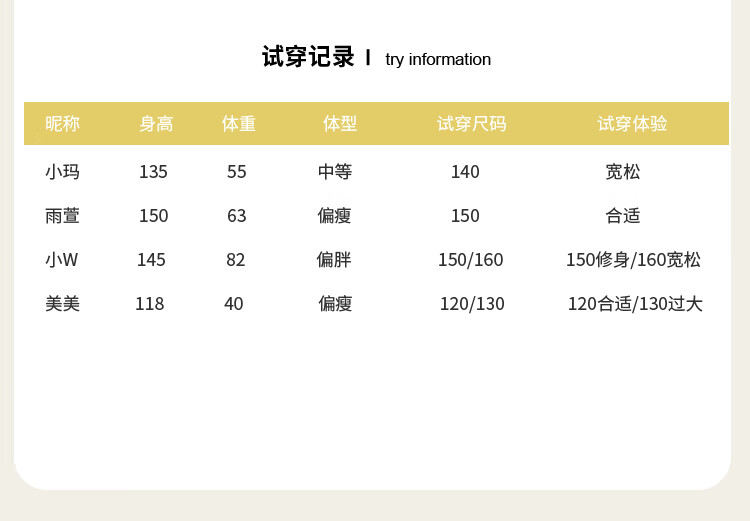 China (cm) 160-165/84-86 165-170 / 88-90 167-172 / 92-96 168-173 / 98-102 170-176 / 106-110