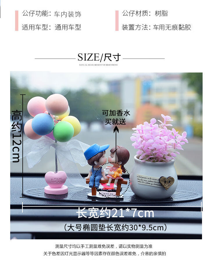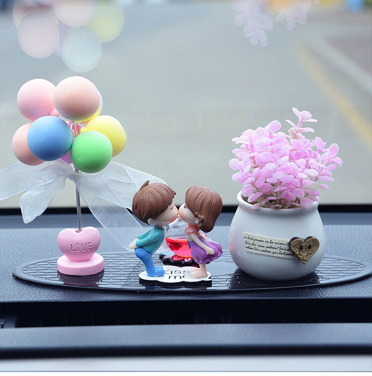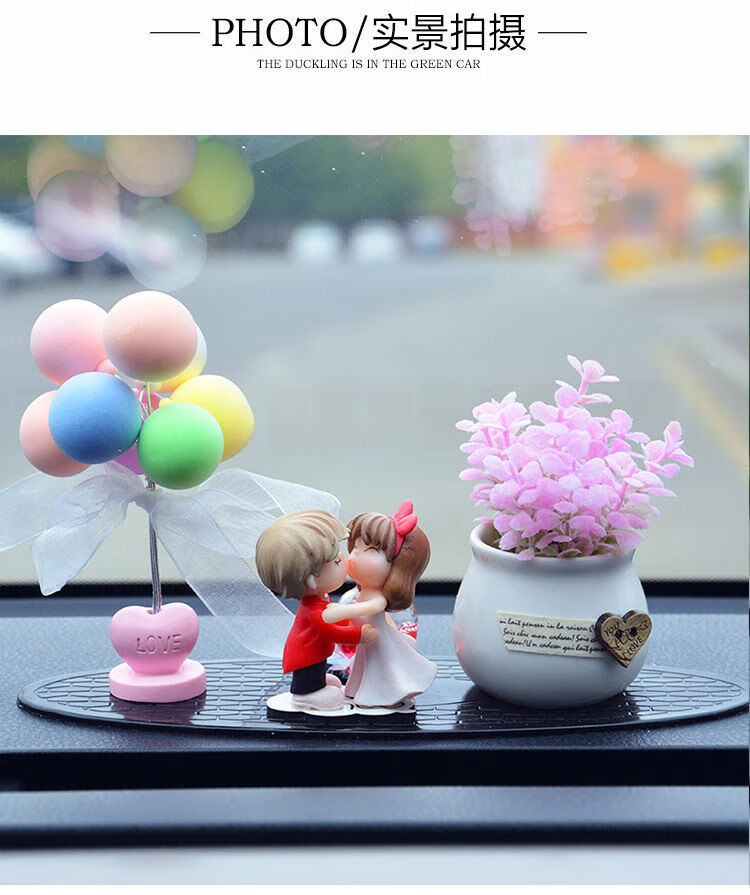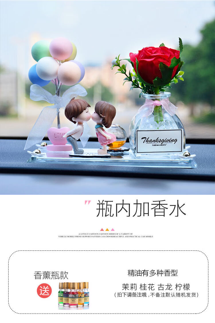 Litian car interior accessories, perfume ornaments, couple creative car decoration supplies, car, beautiful goddess style car decorations, pink rose + wedding dress white + pink car + balloon cushion