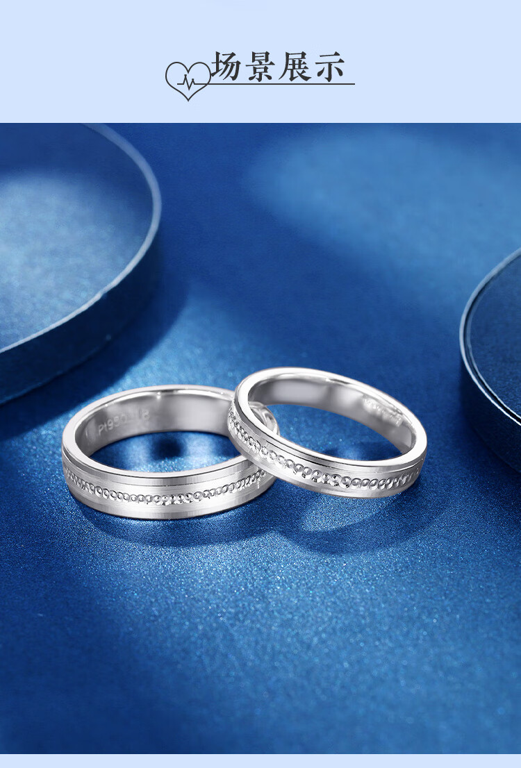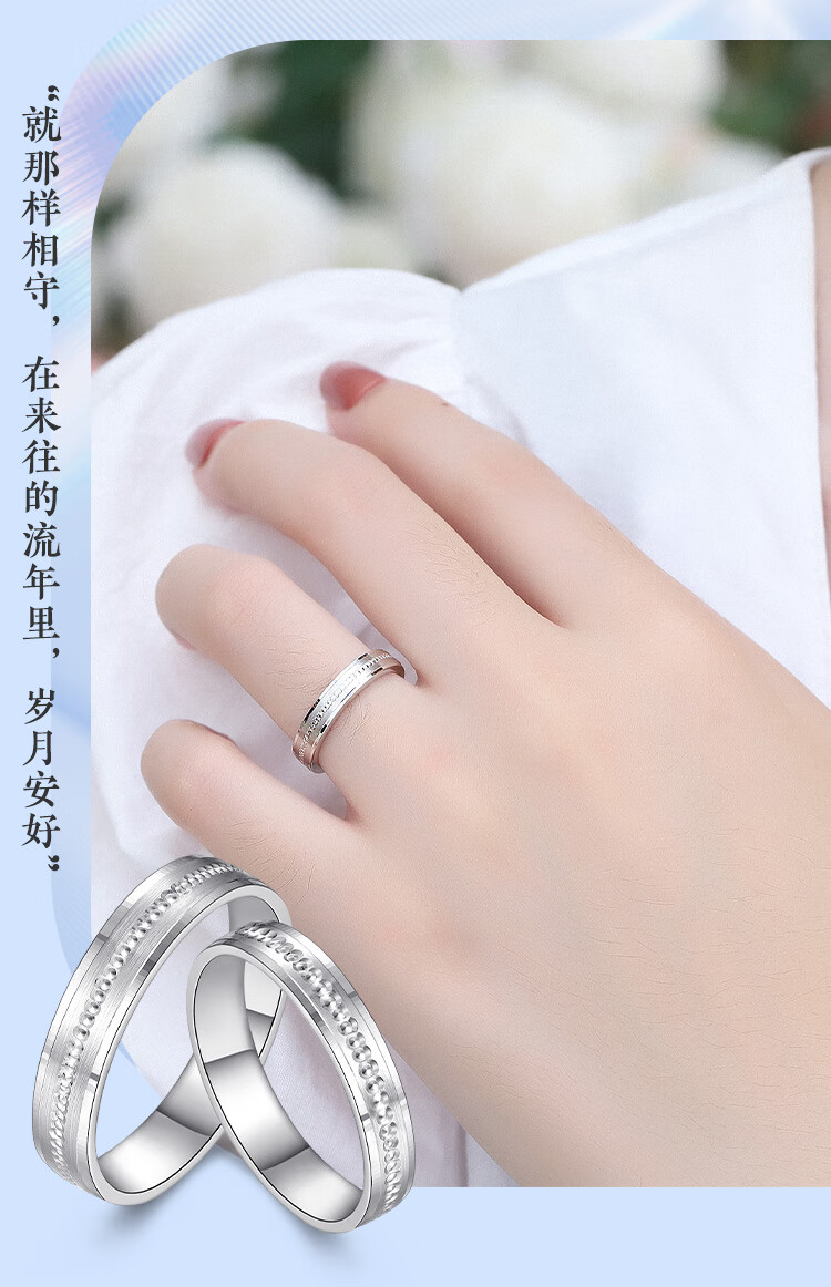 Wanfu Long Yuan Man Sheng pt950 couple ring genuine platinum engagement ring for men and women birthday gift 2025 new model No. 20-3.88g