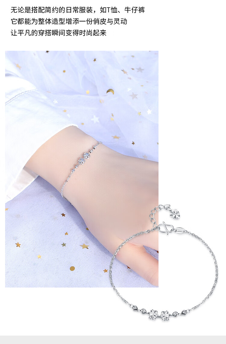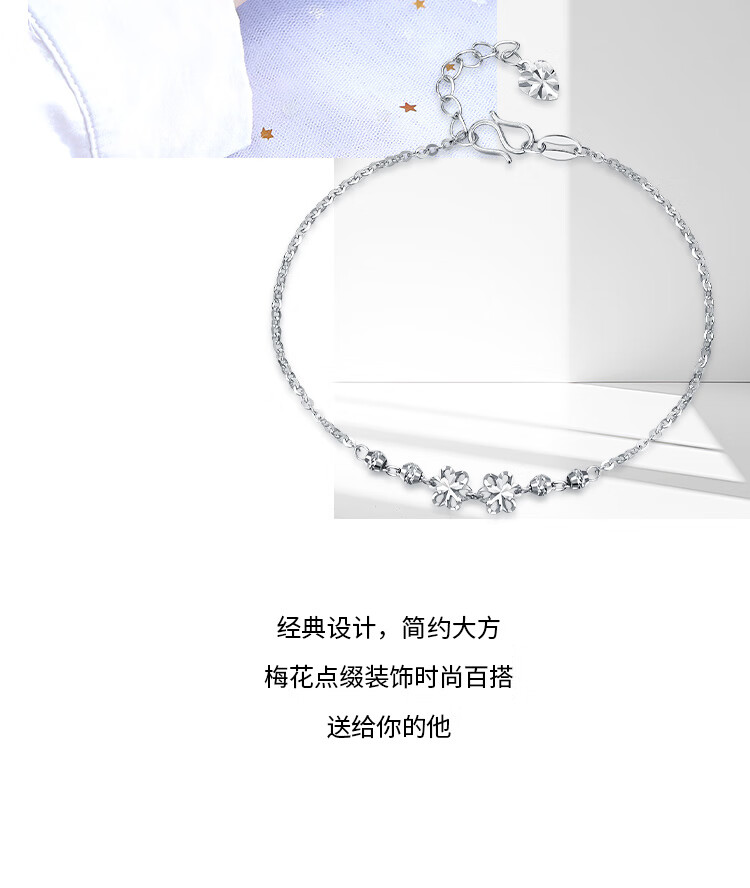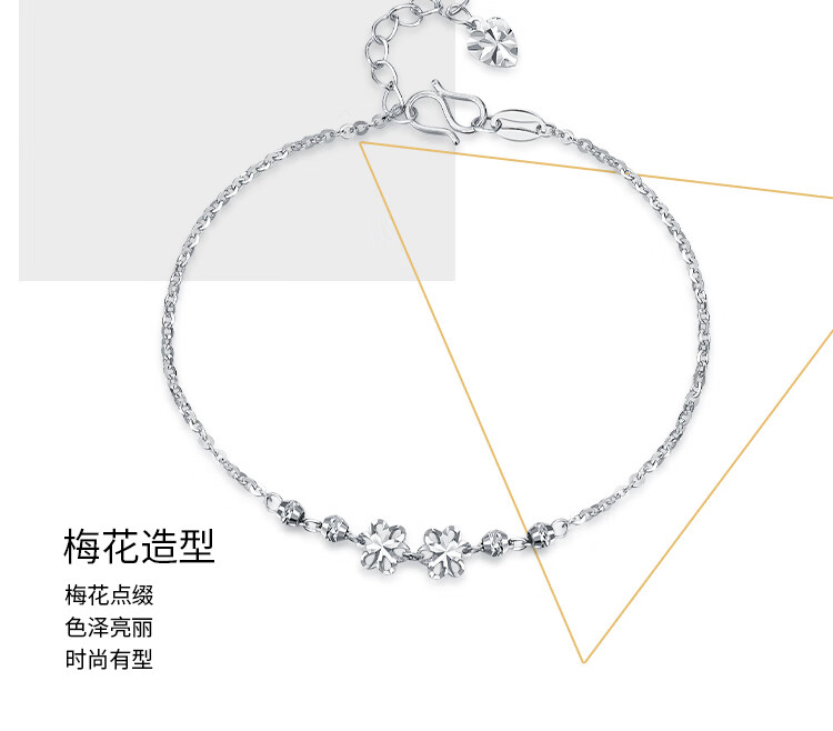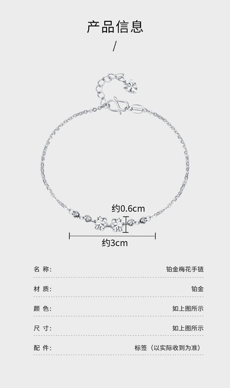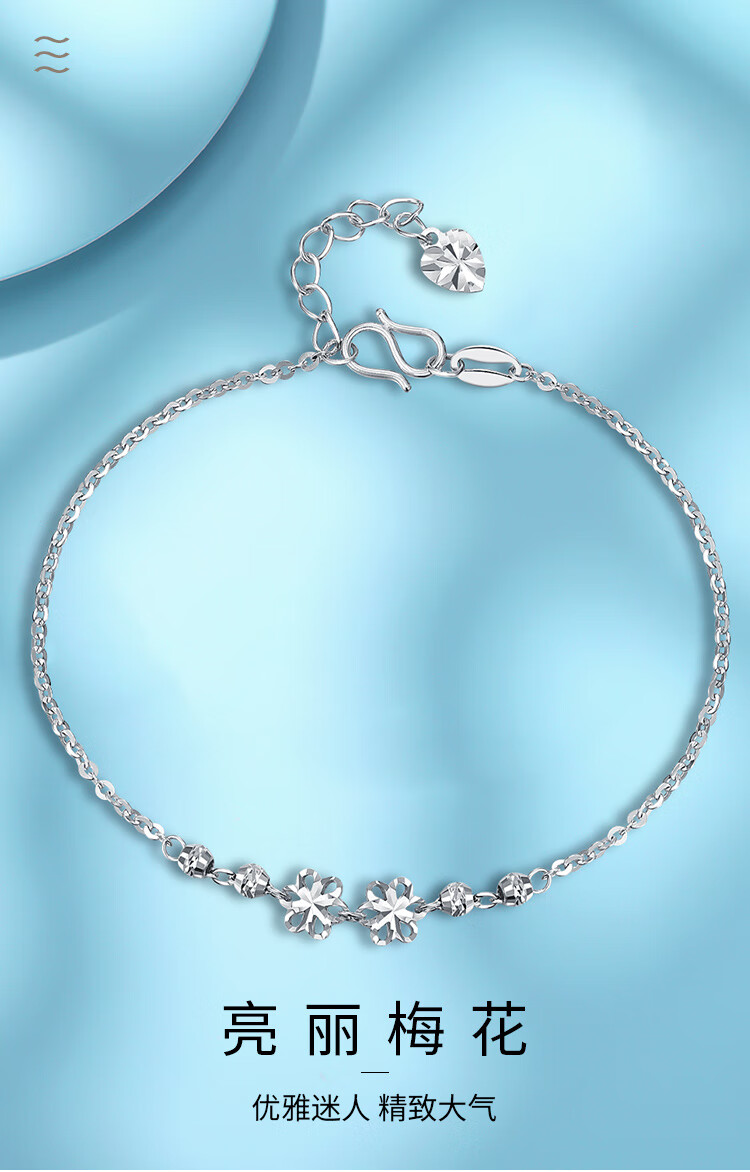 Wanfulong Light Luxury, High-end and Exquisite Platinum Carved Plum Blossom Bracelet for Women as a Birthday Gift for Girlfriend 2.44g, PT950 Platinum Plum Blossom Bracelet for Women 19cm