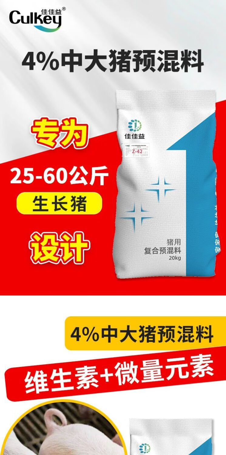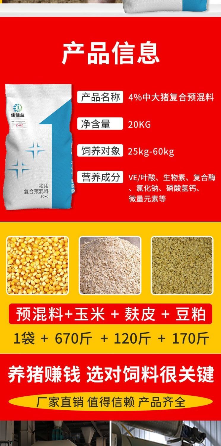 Jiajiayi (CULKEY) 4% medium and large pig premix medium and large pig weight gain, fattening and skeleton special pig feed to grow meat fast factory price Ingredients 1000Jin Jin equals 0.5kg 11 packs