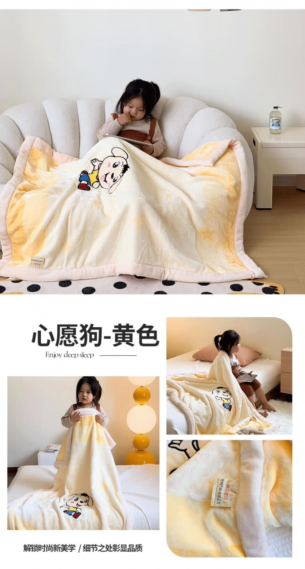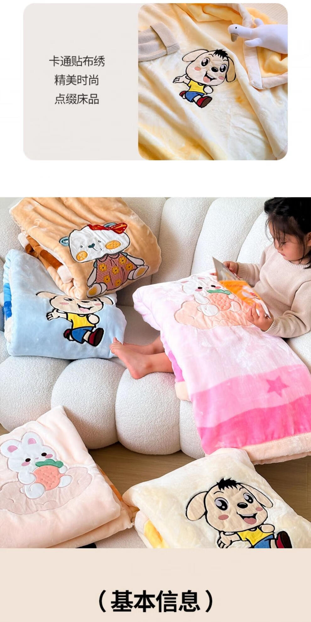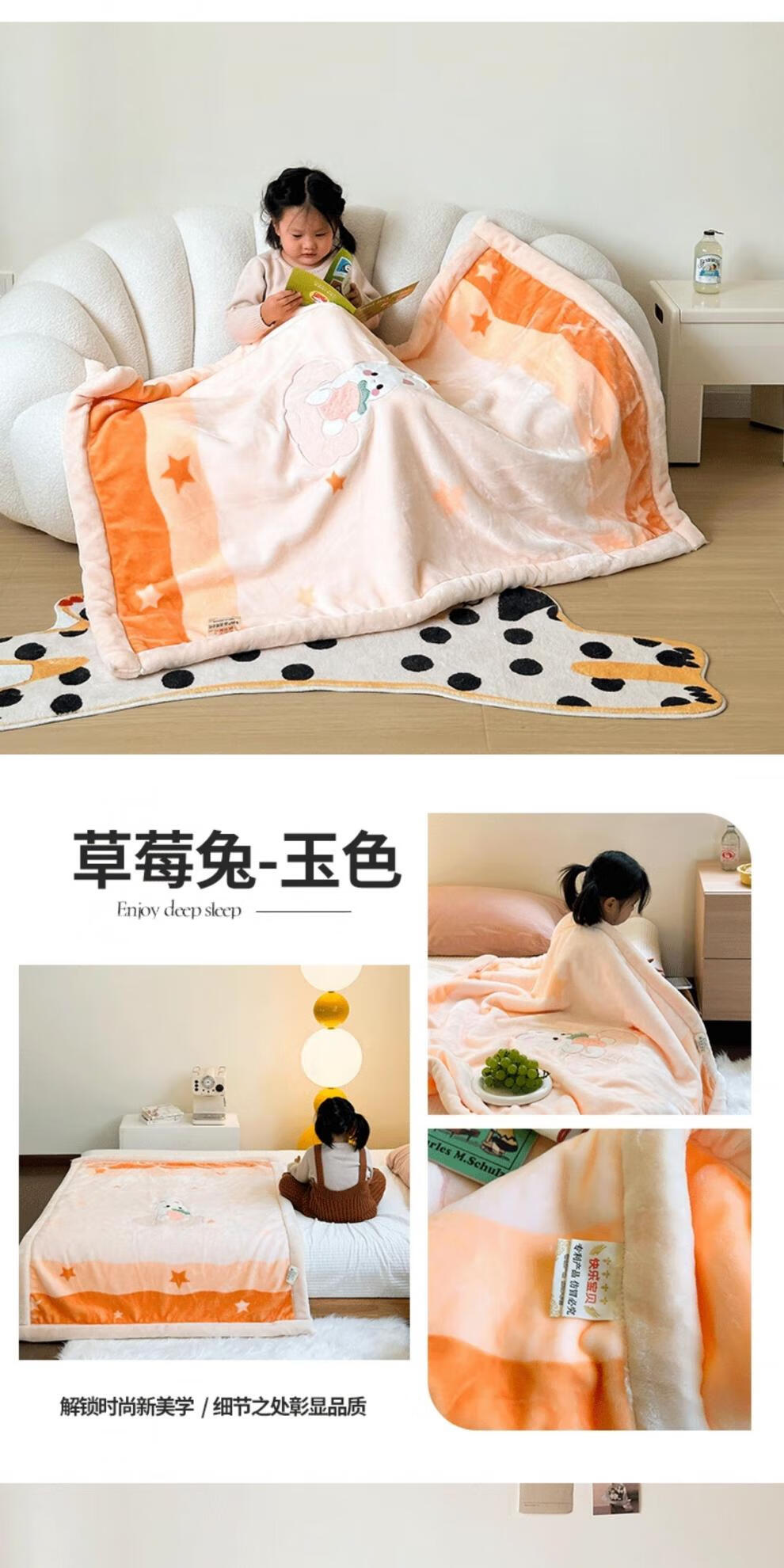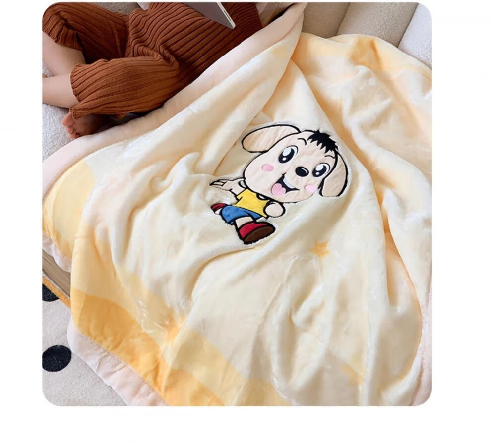 Guhe Children's Blanket Kindergarten Nap Winter Thickened Baby Double-layer Baby Cover Blanket Small Coral Velvet Cloud Blanket Premium Doll Bear-Coffee Color Appliqué 110cm*140cm Double-layer Thickened Cloud 2.8Jin Jin equals 0.5kg